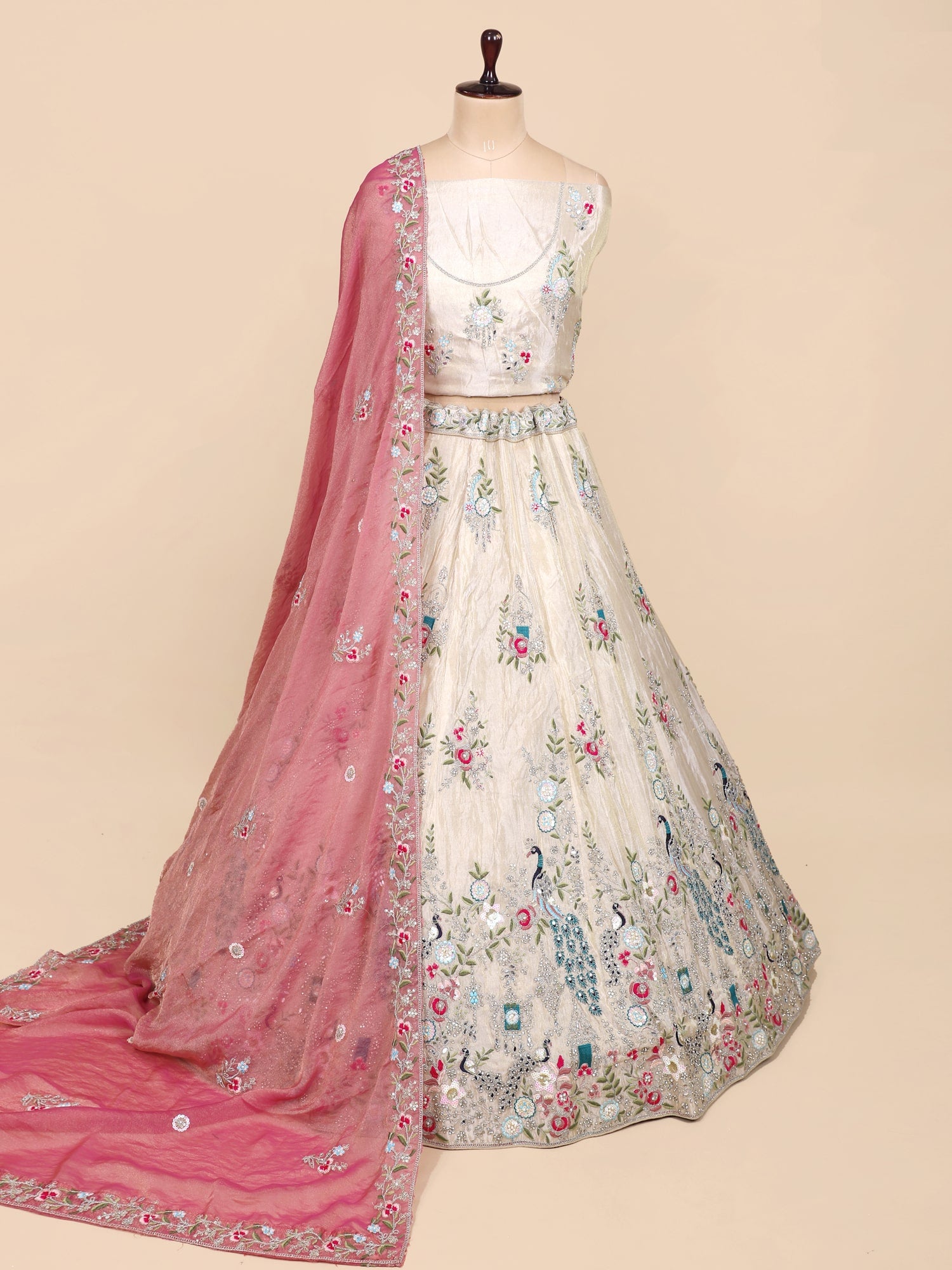 Rose Glitter Lehenga With Luxurious Thread & Stone Work