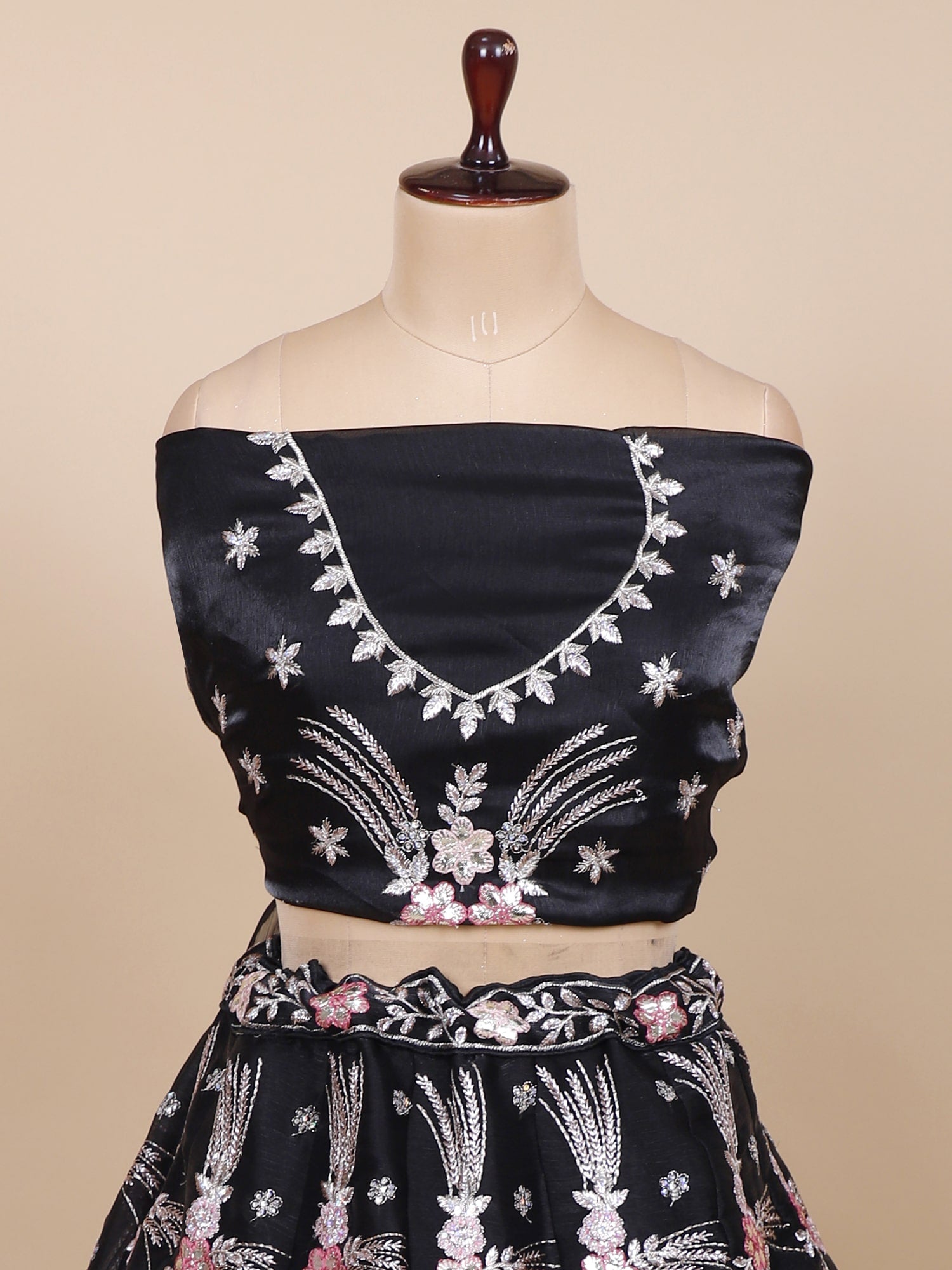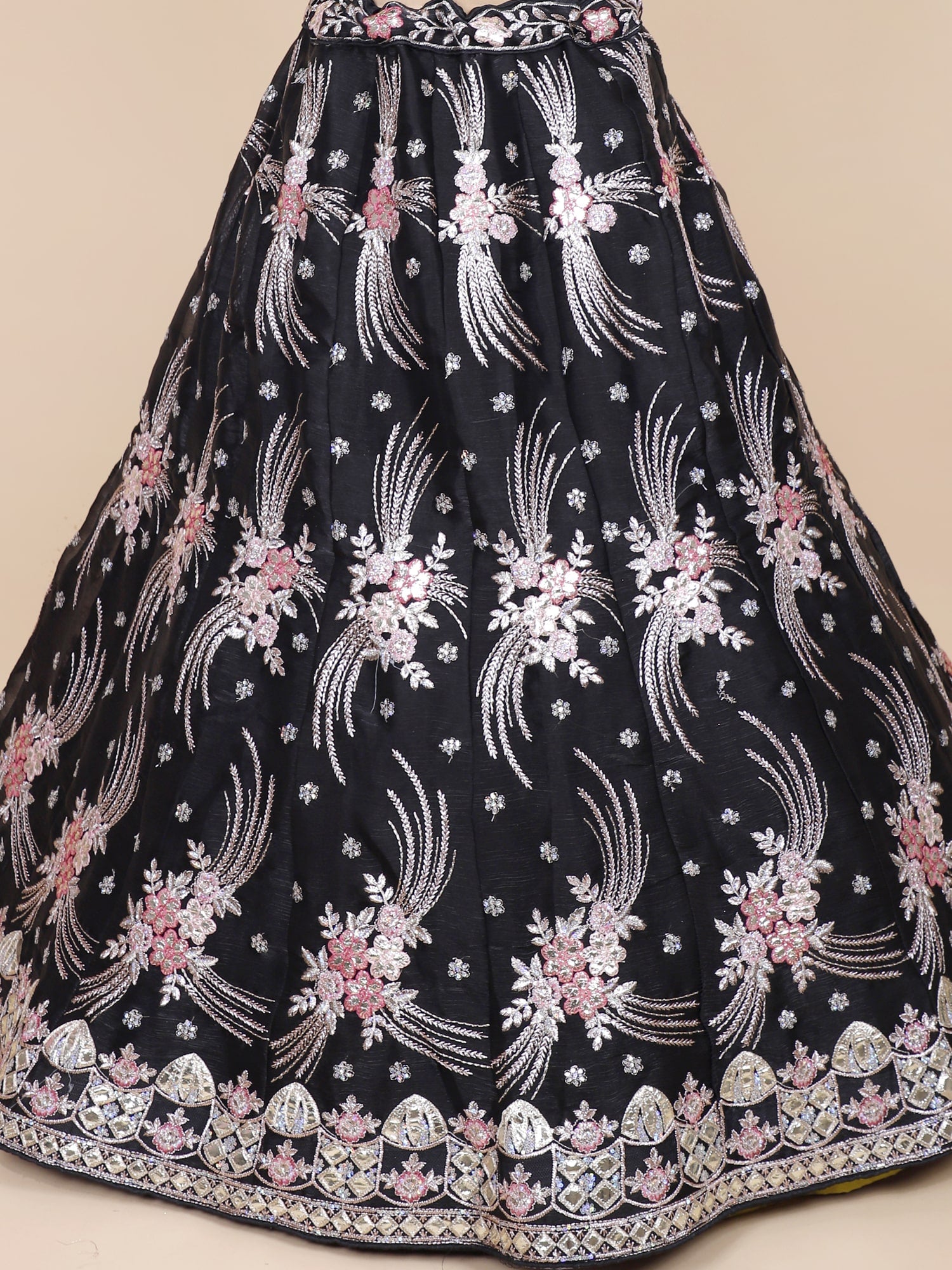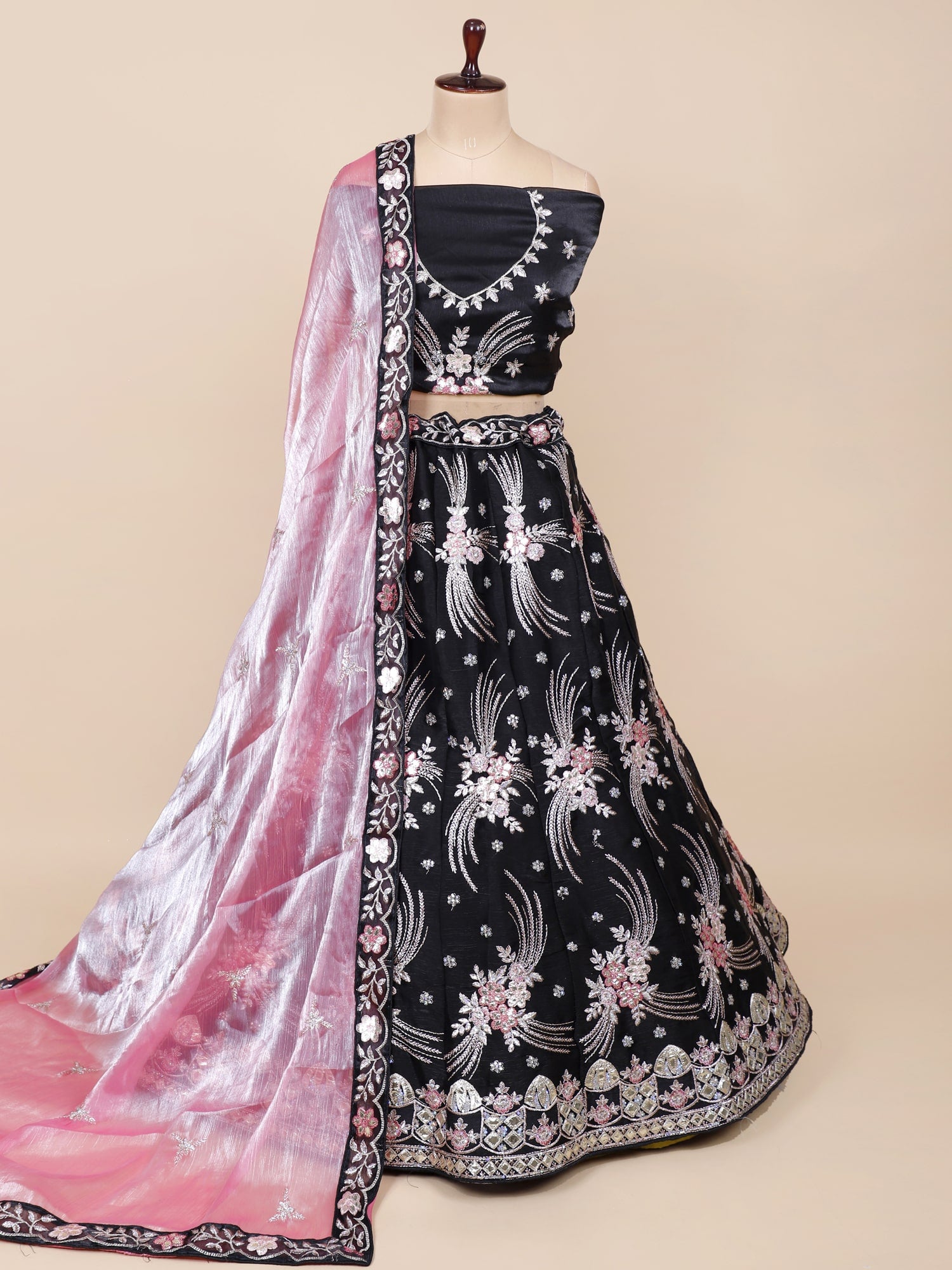 Black-Pink Bridal Silk Lehenga With Jarkan Stone Work