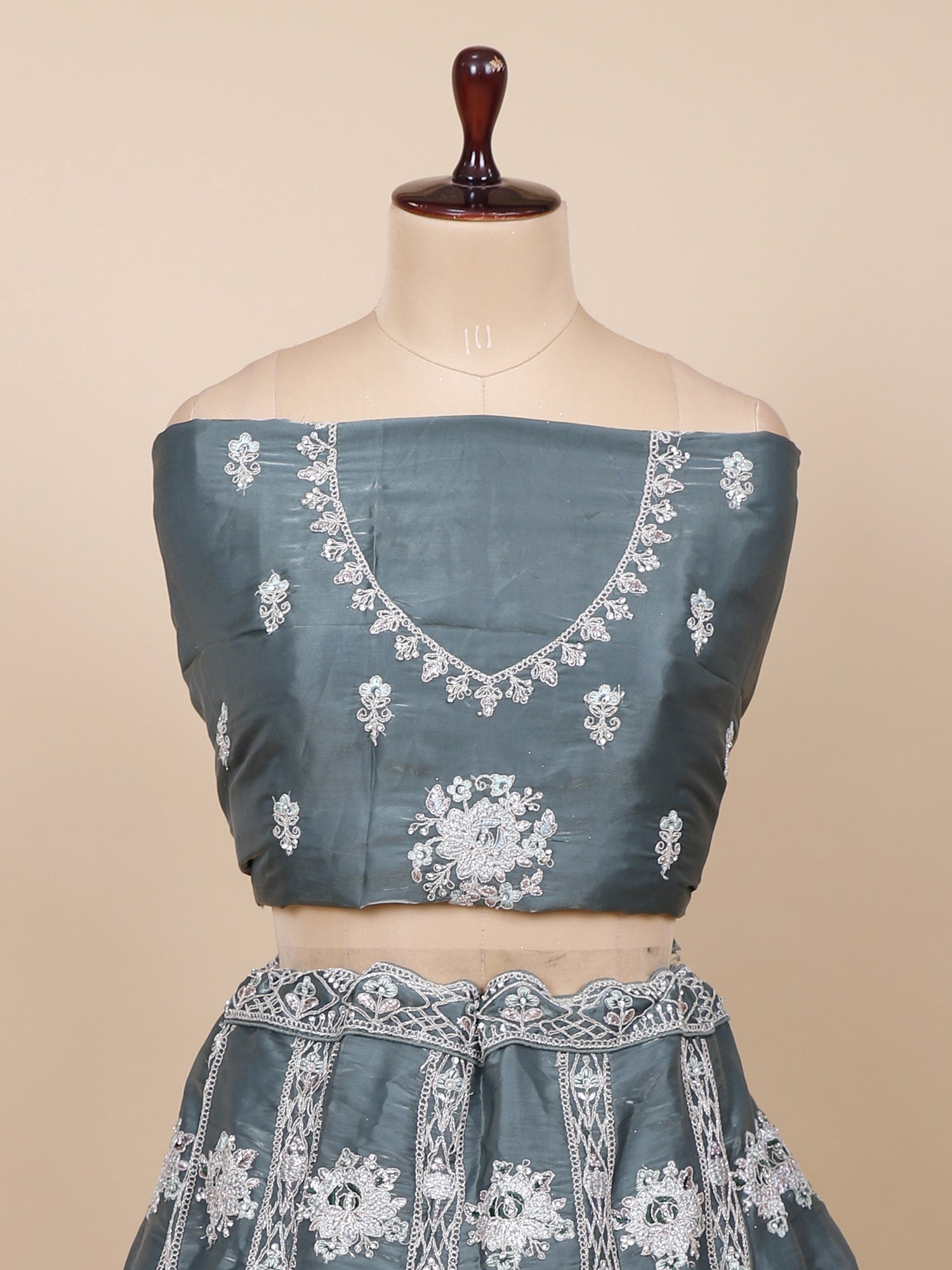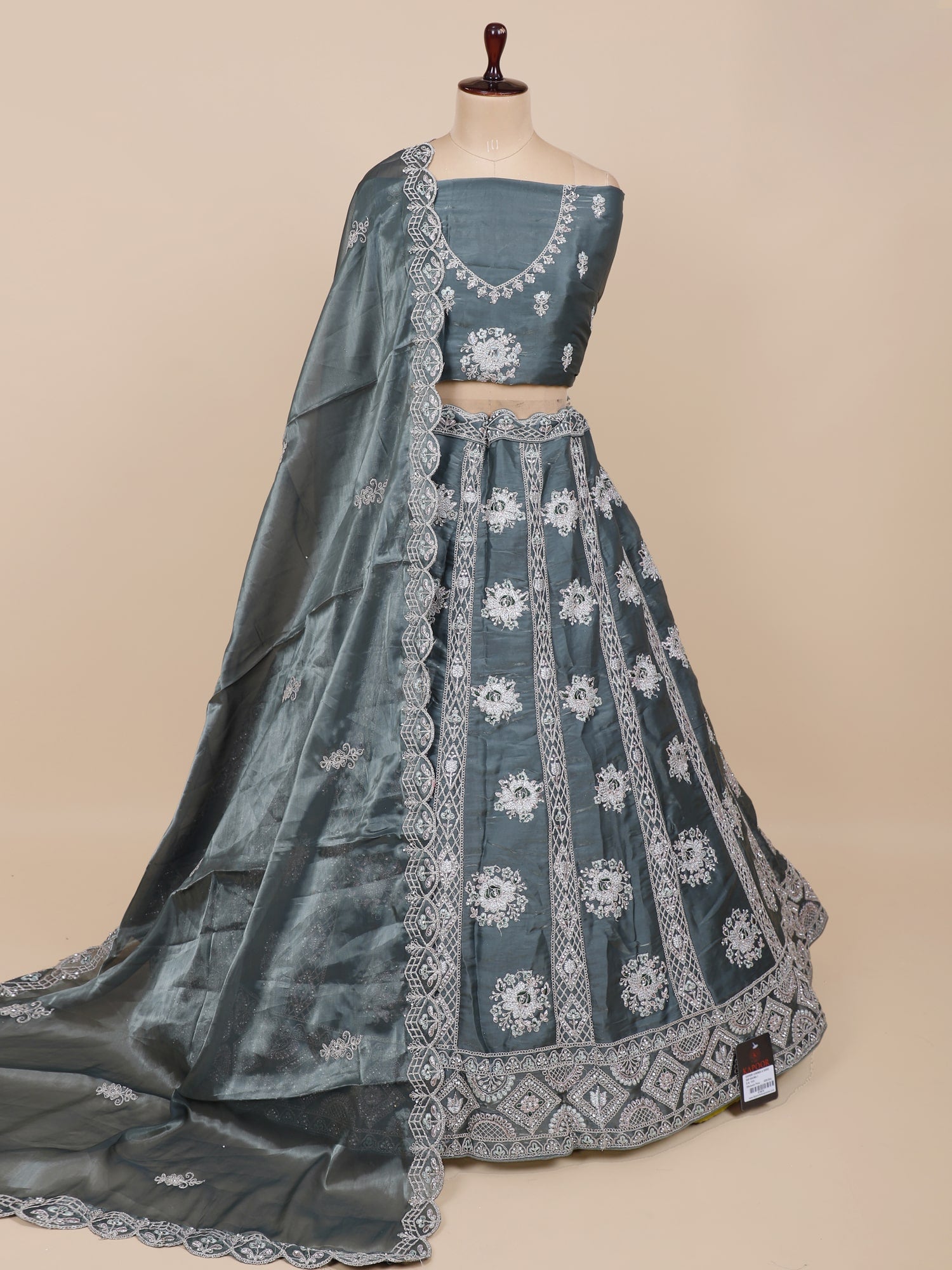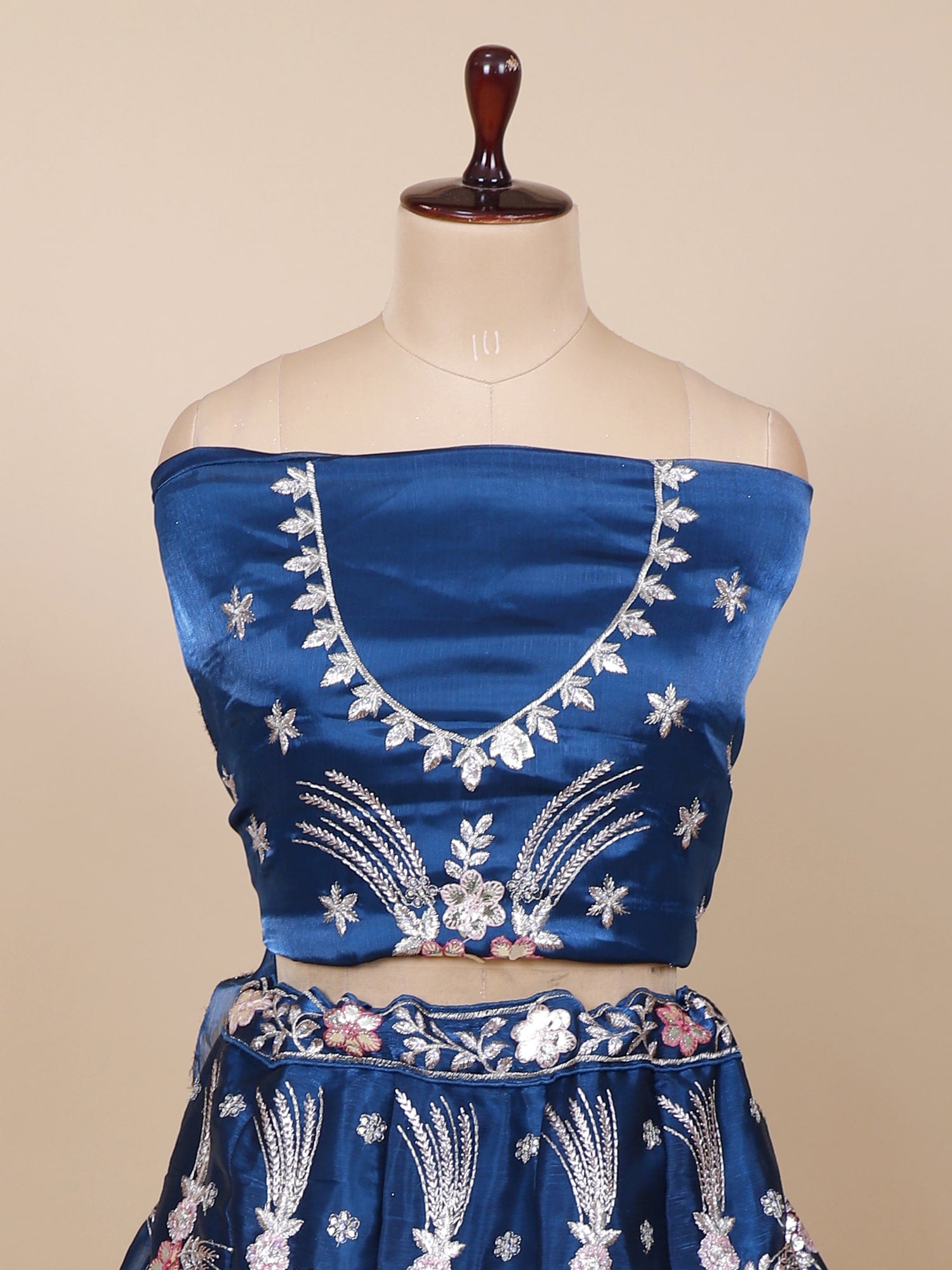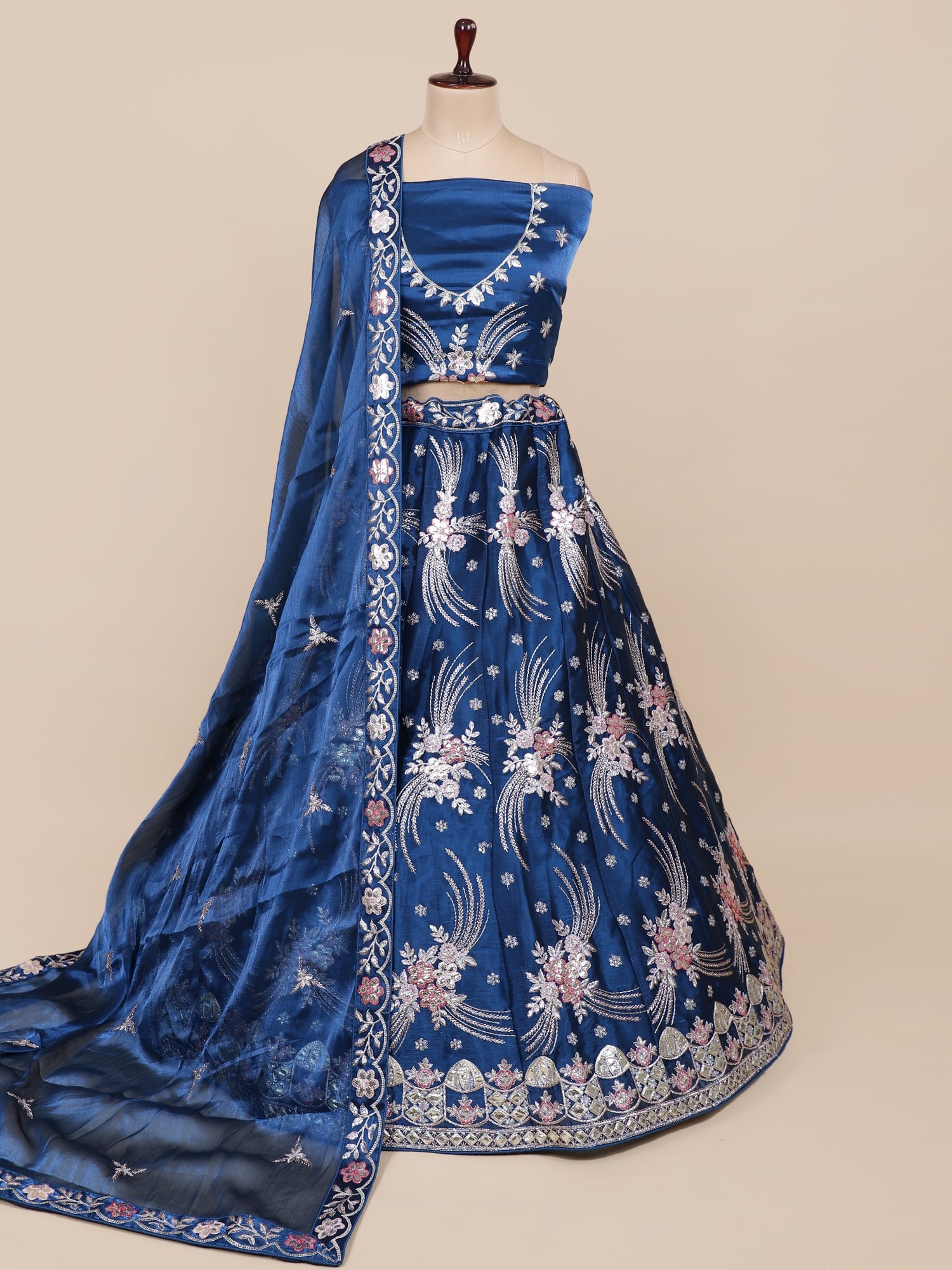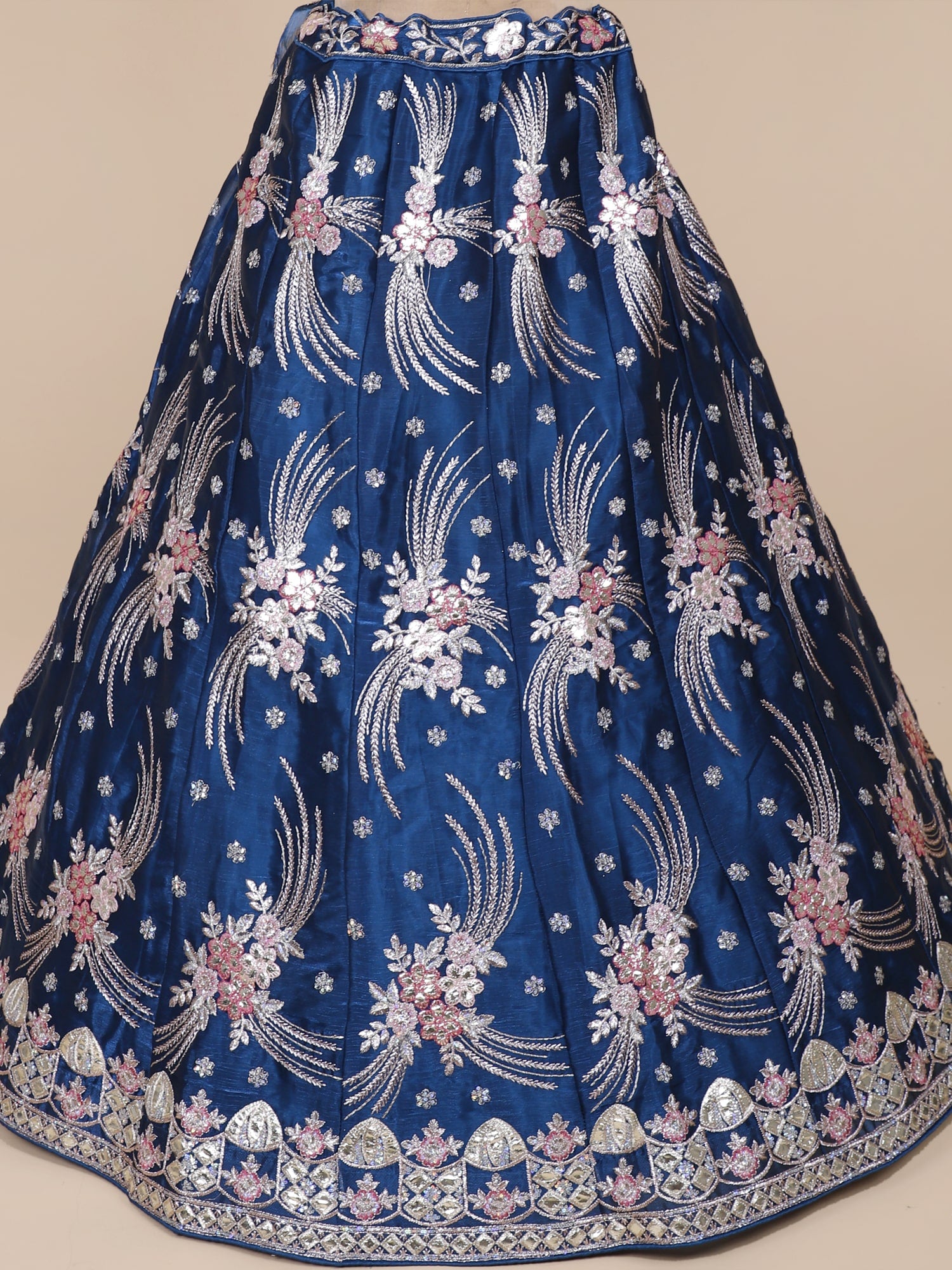 Blue Designer Silk Lehenga With Jarkan Embroidery