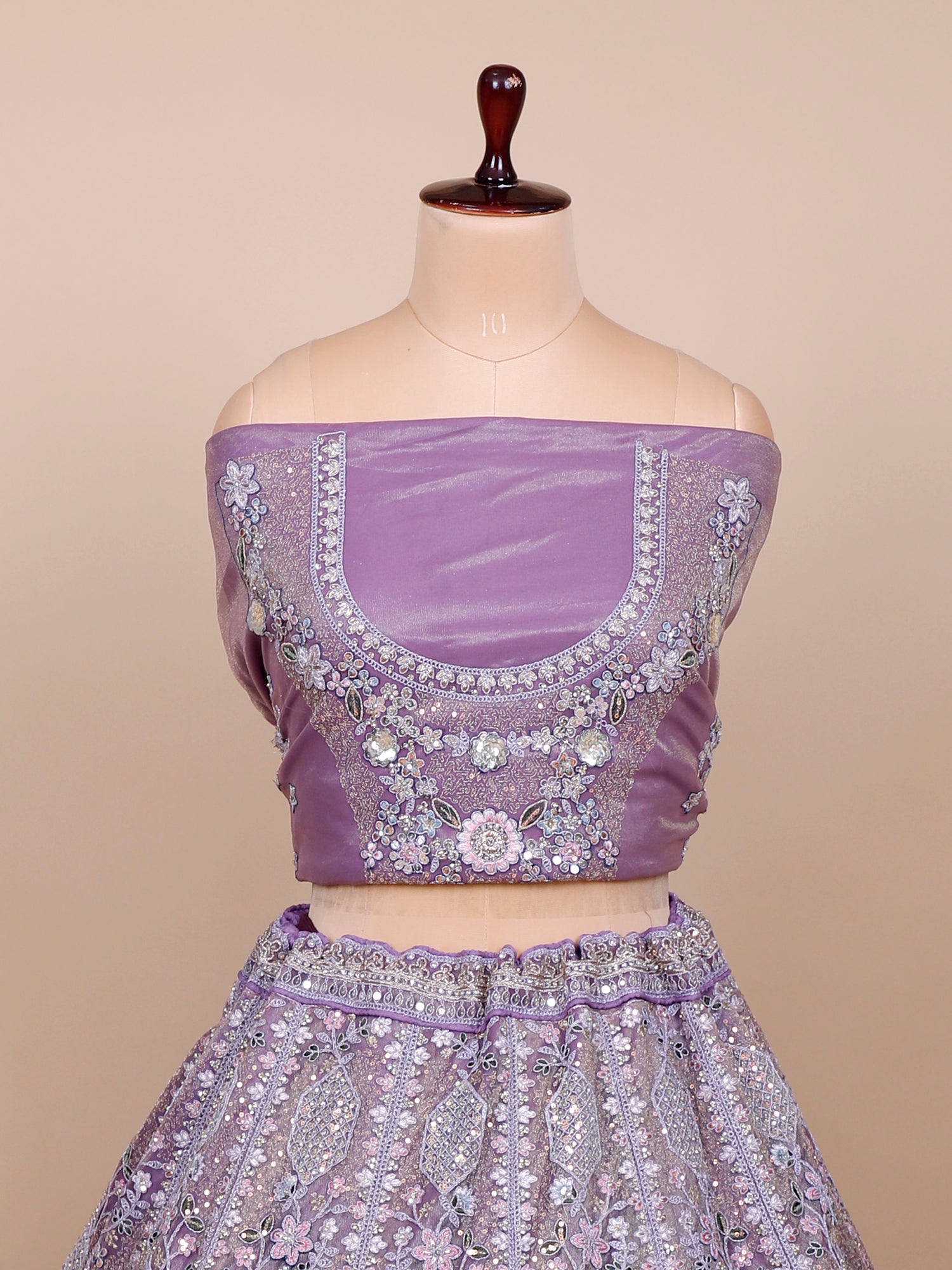 Lilac Organza Lehenga with Thread Embroidery