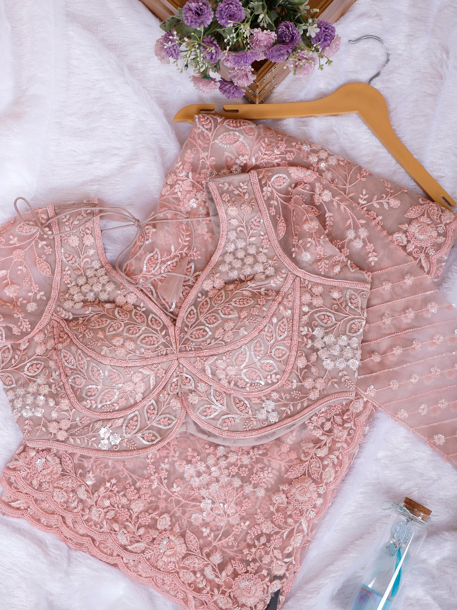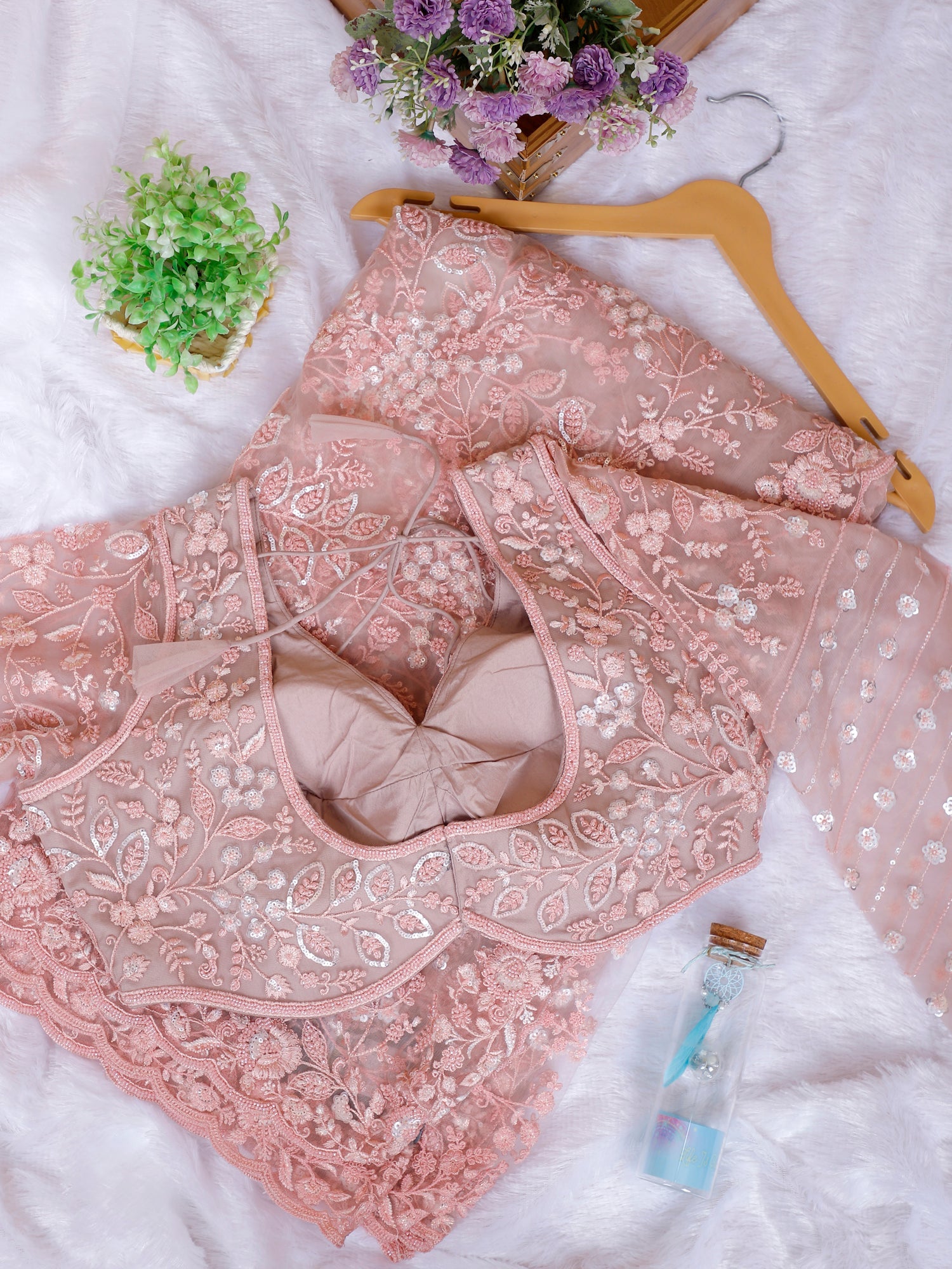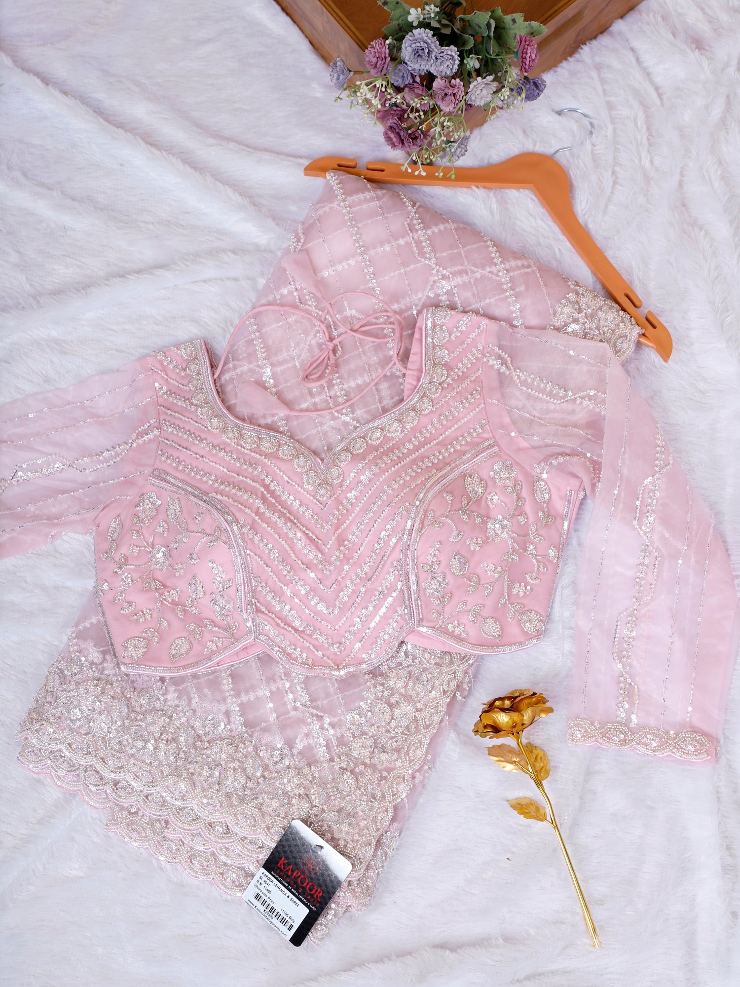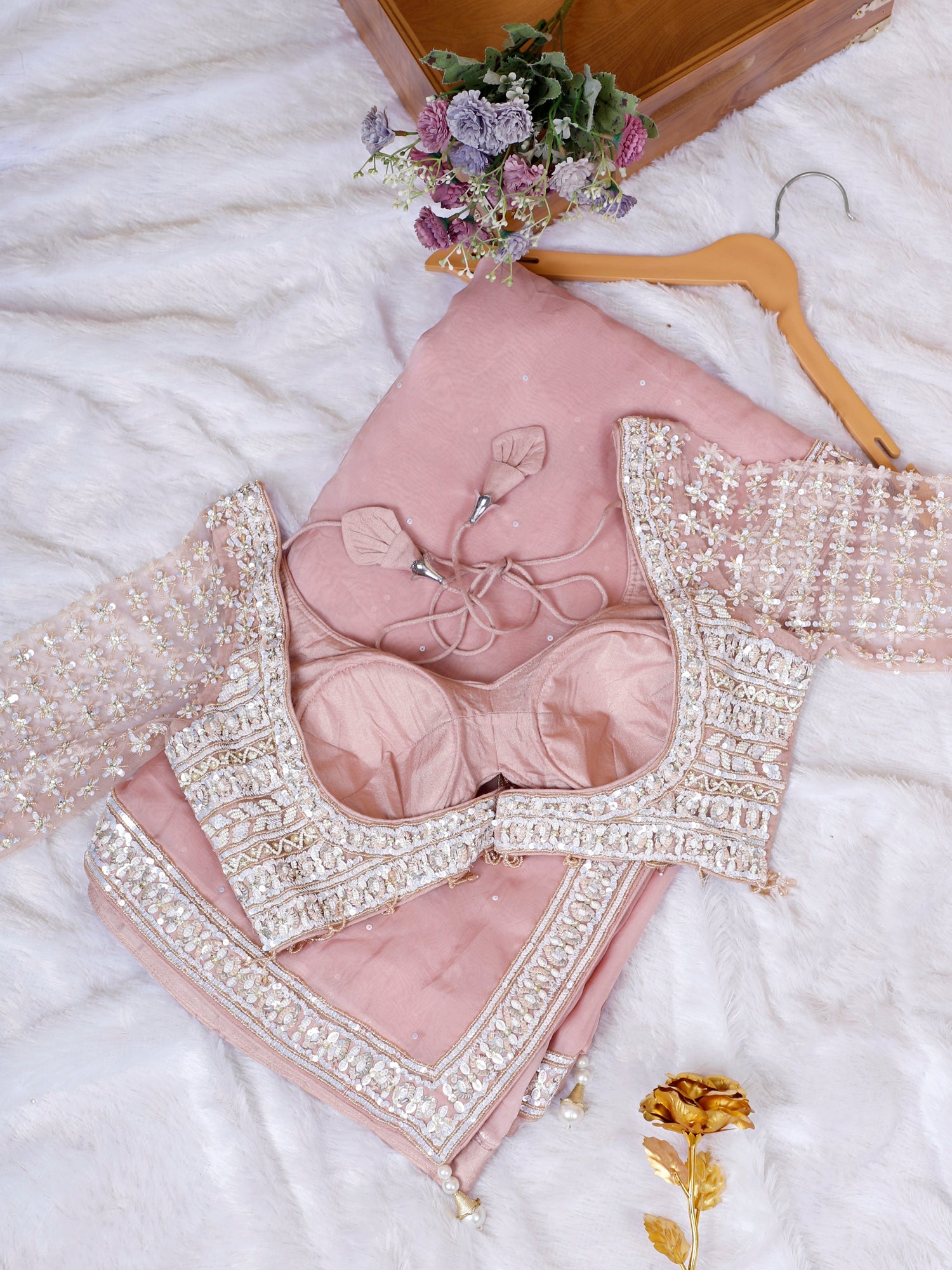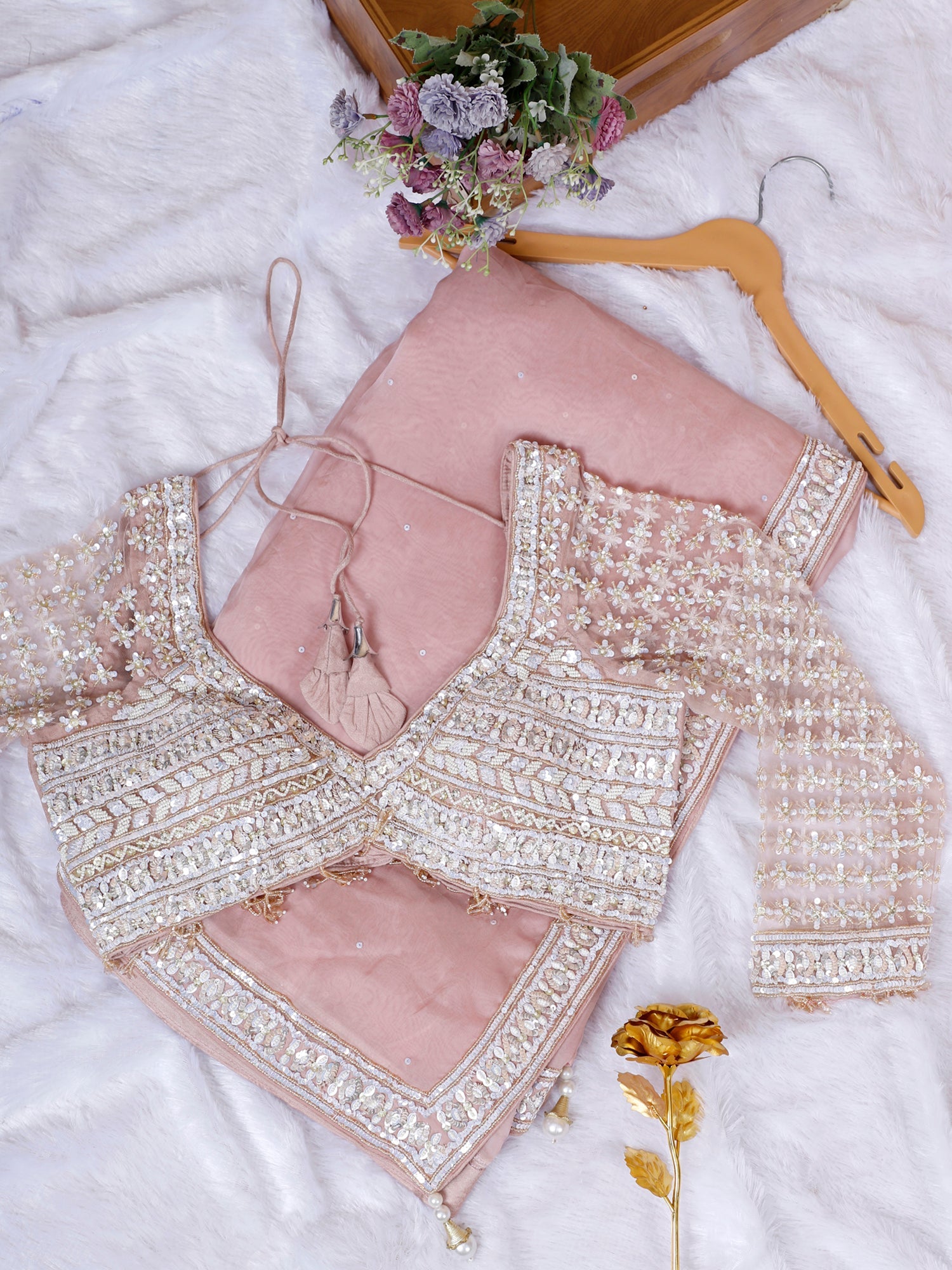 Light Pink Net Sequin Handwork Saree For Wedding & Party Wear