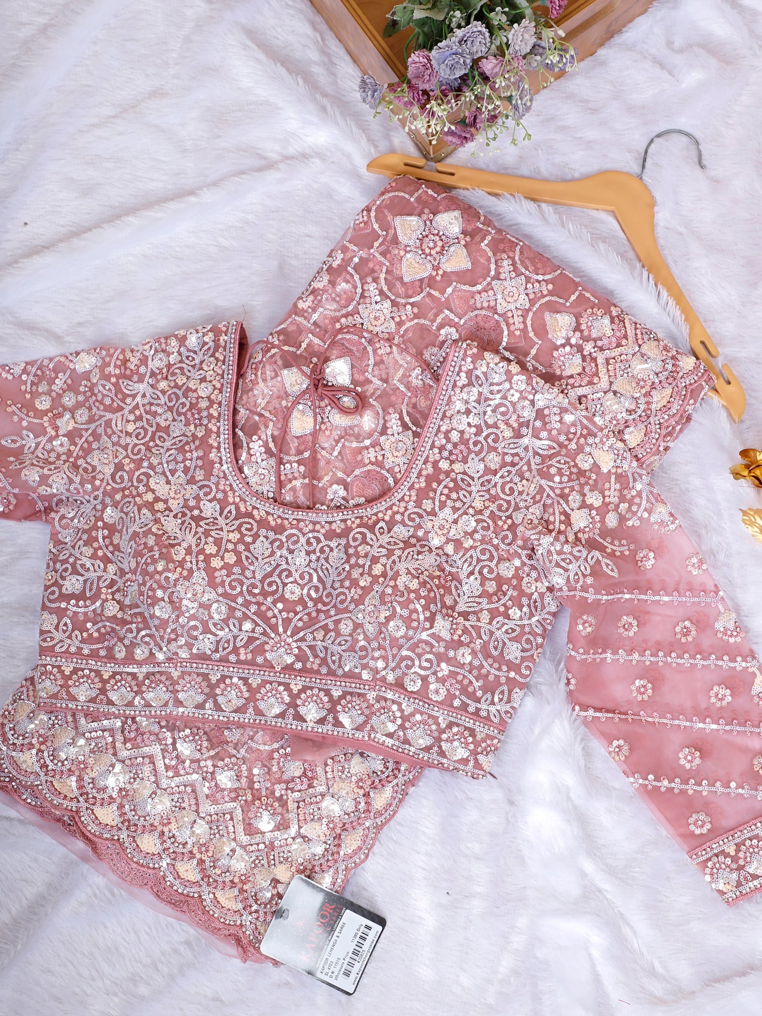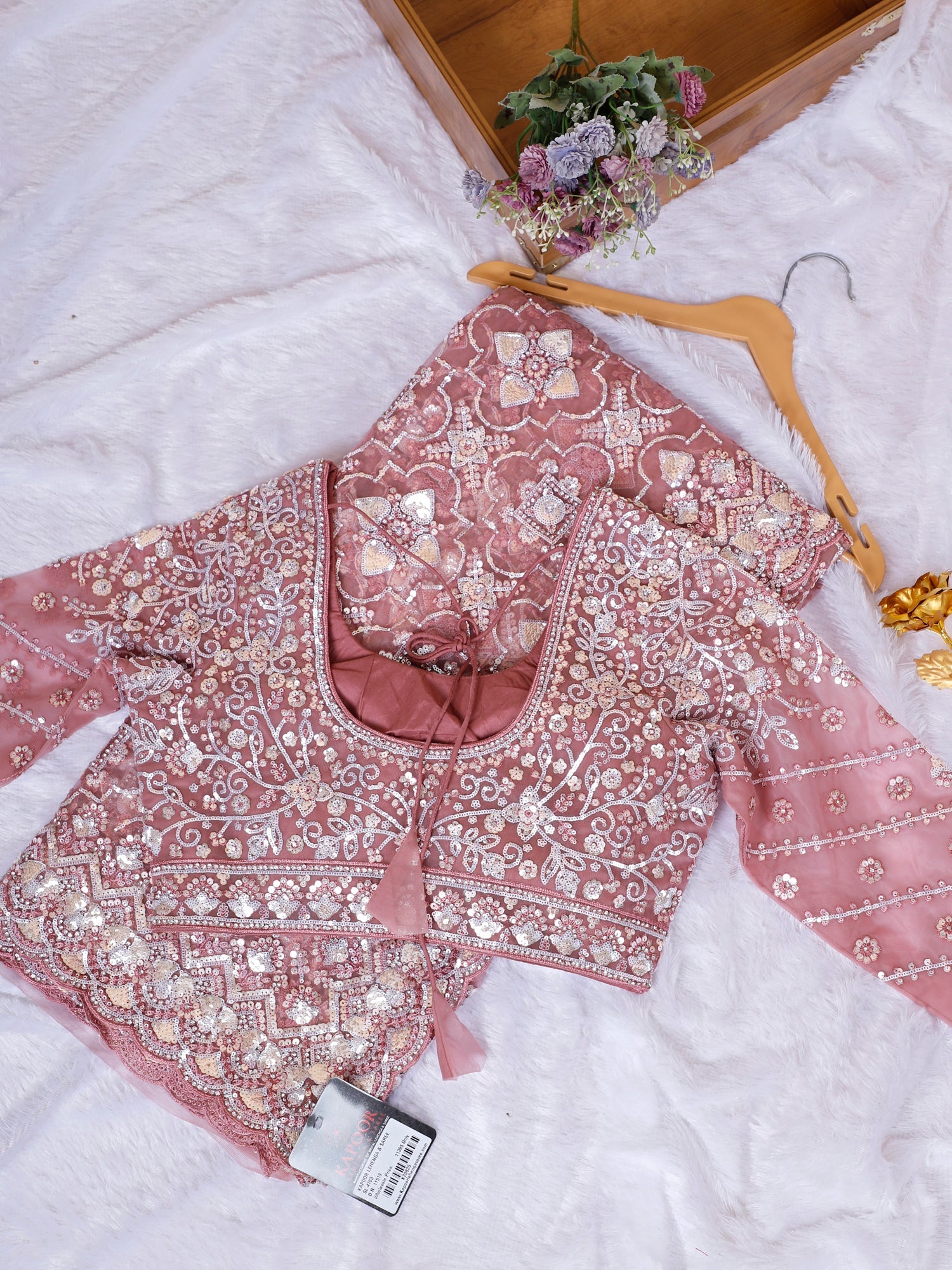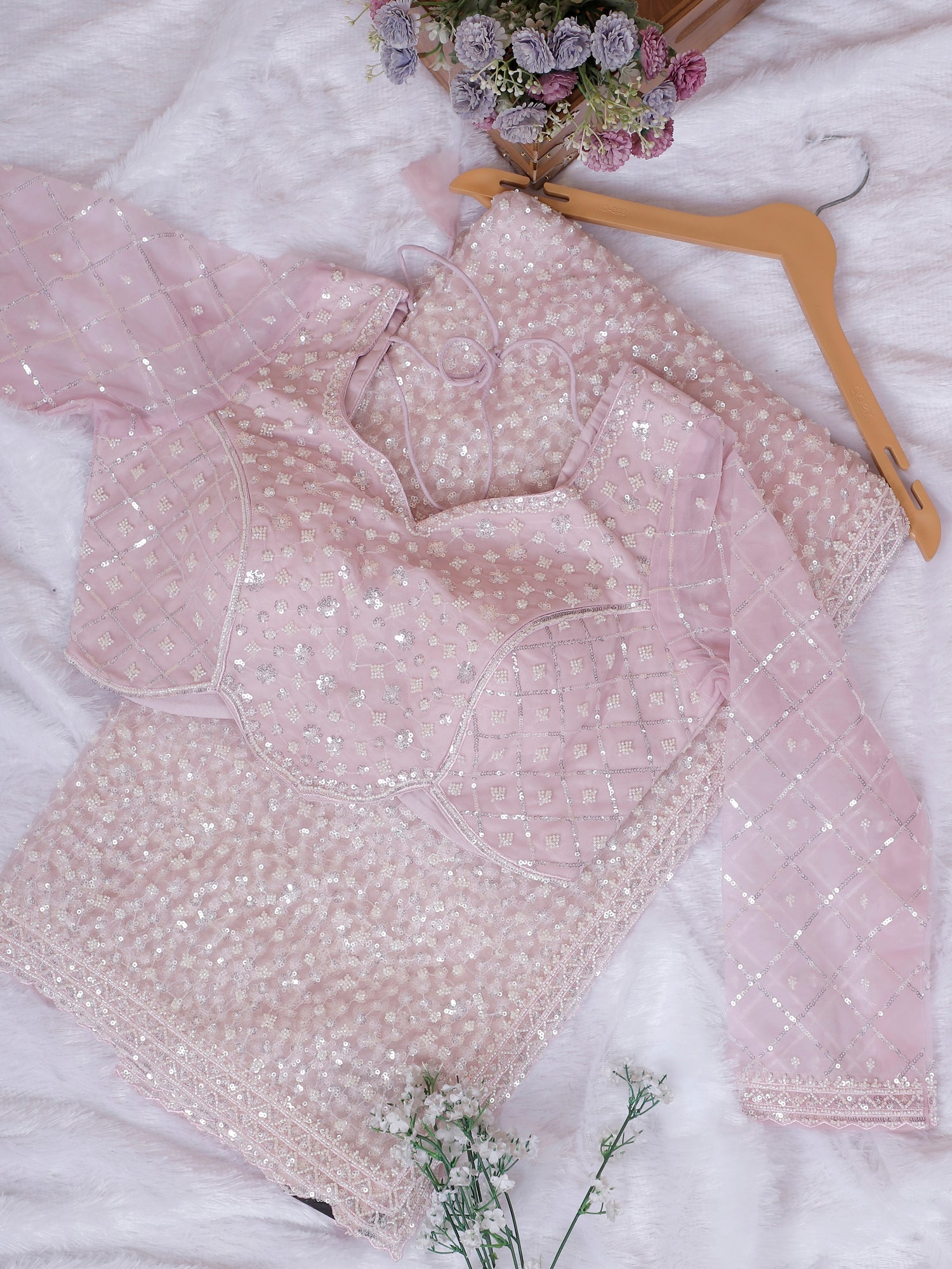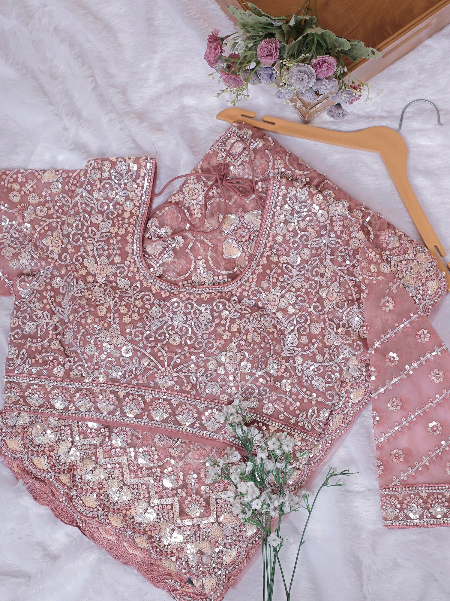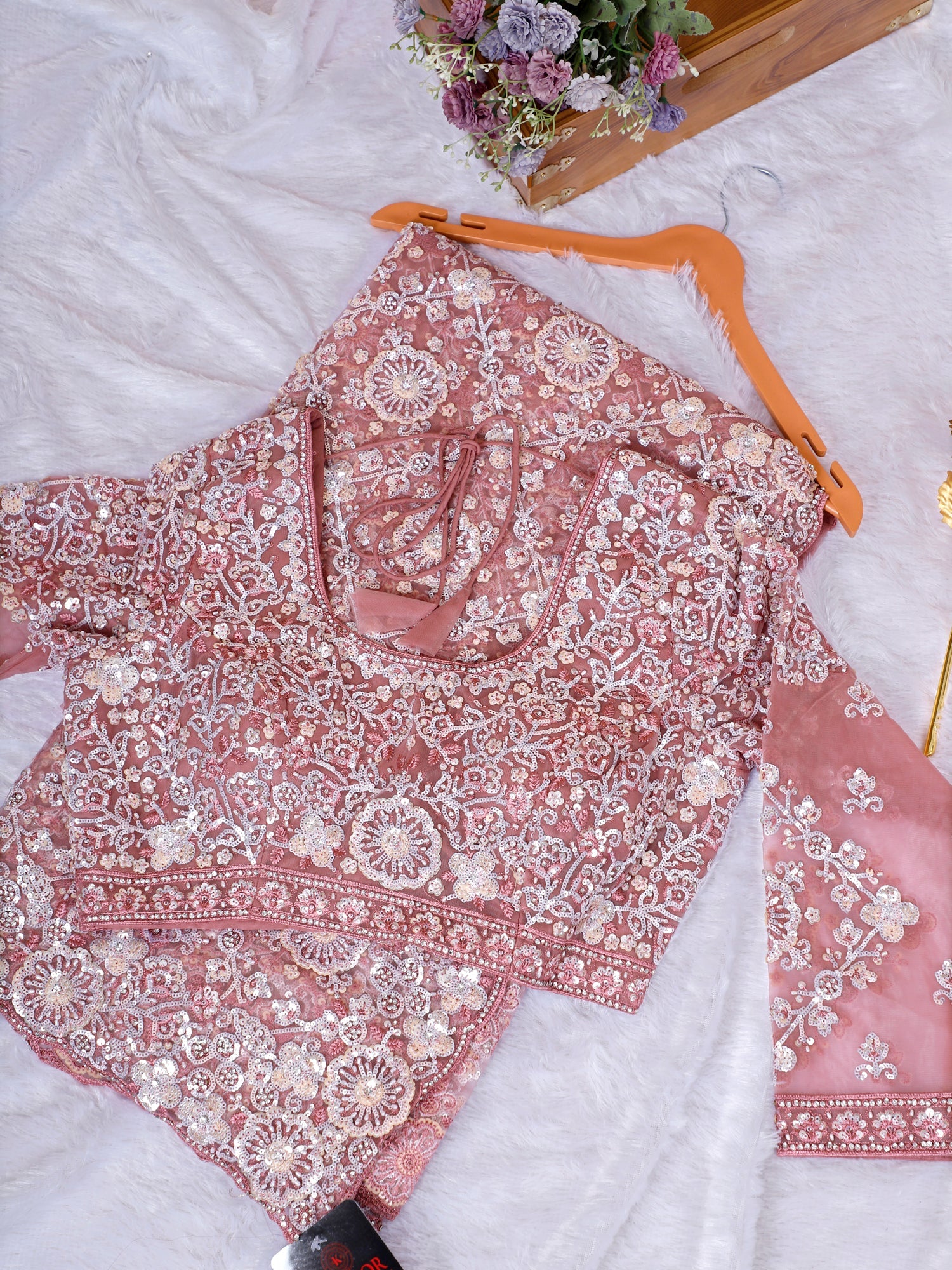 Light Pink Net Sequin Handwork Saree For Wedding & Party Wear