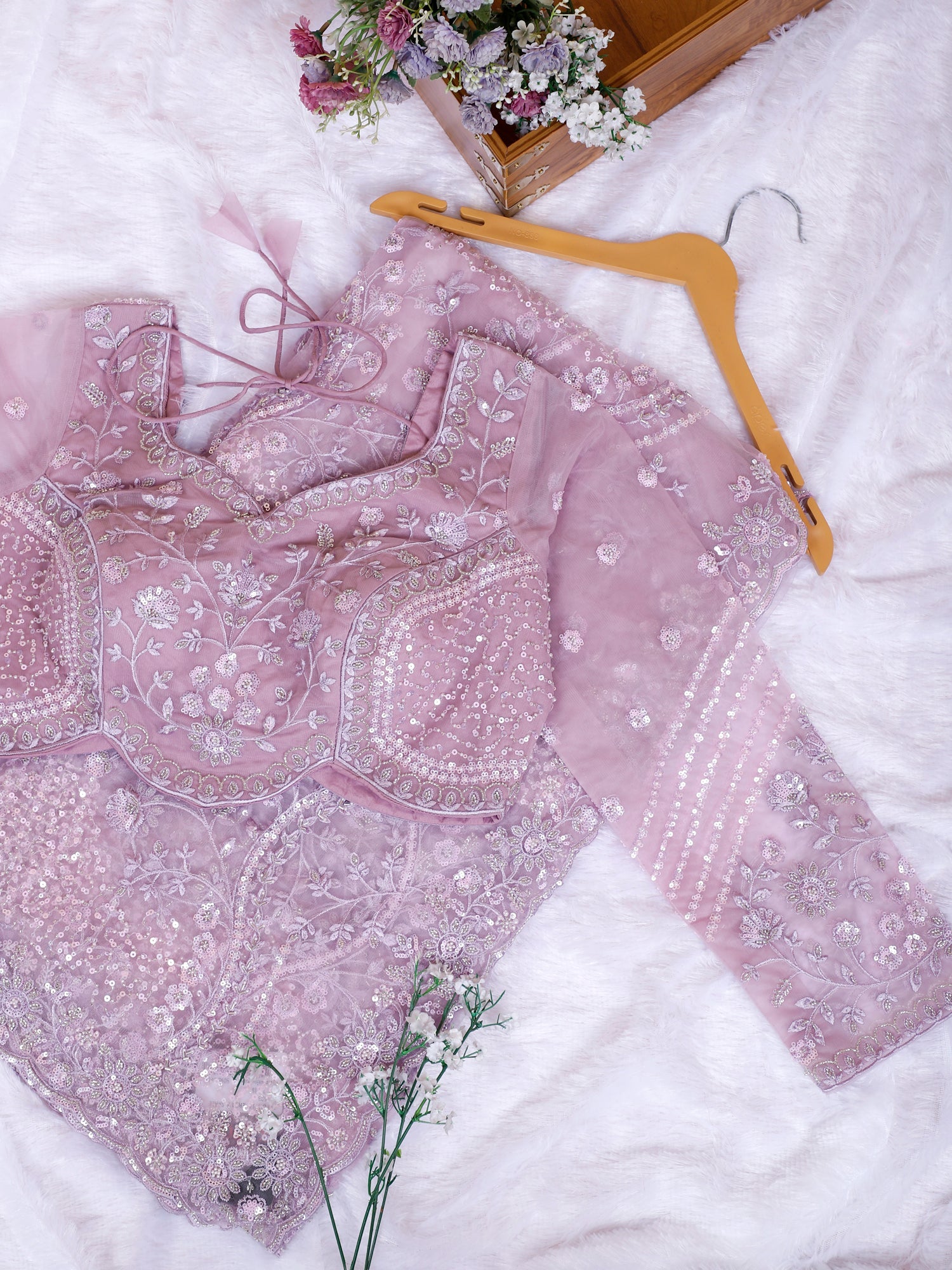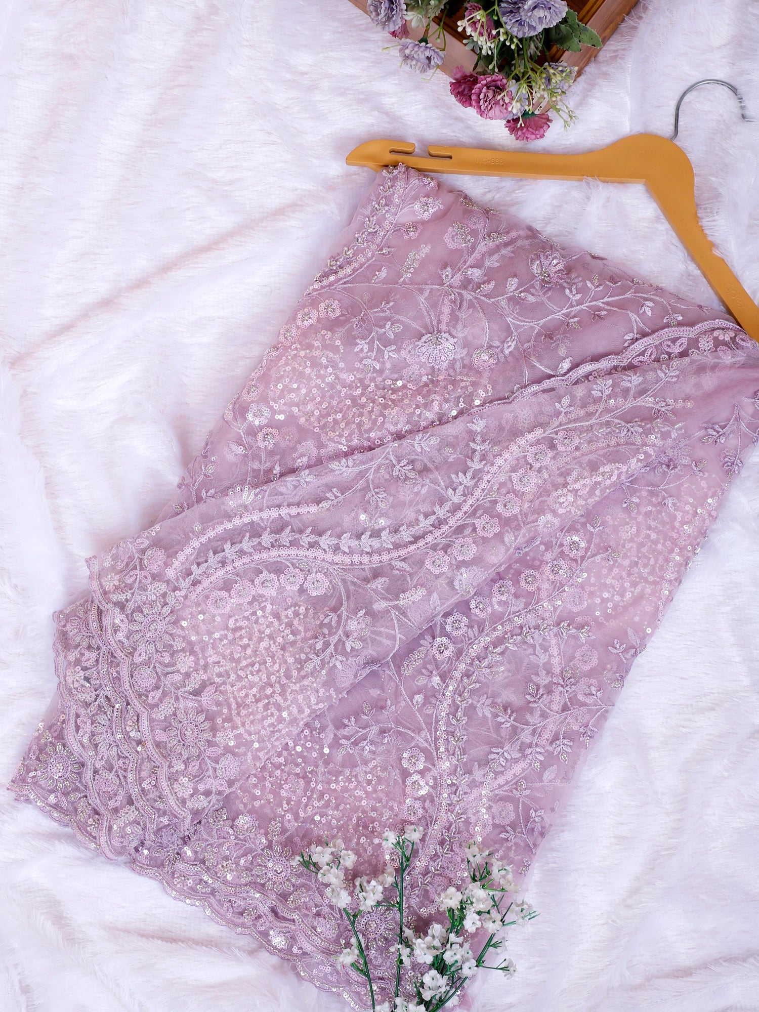 Orchid Mist Organza Saree With Designer Moti Sequence Work