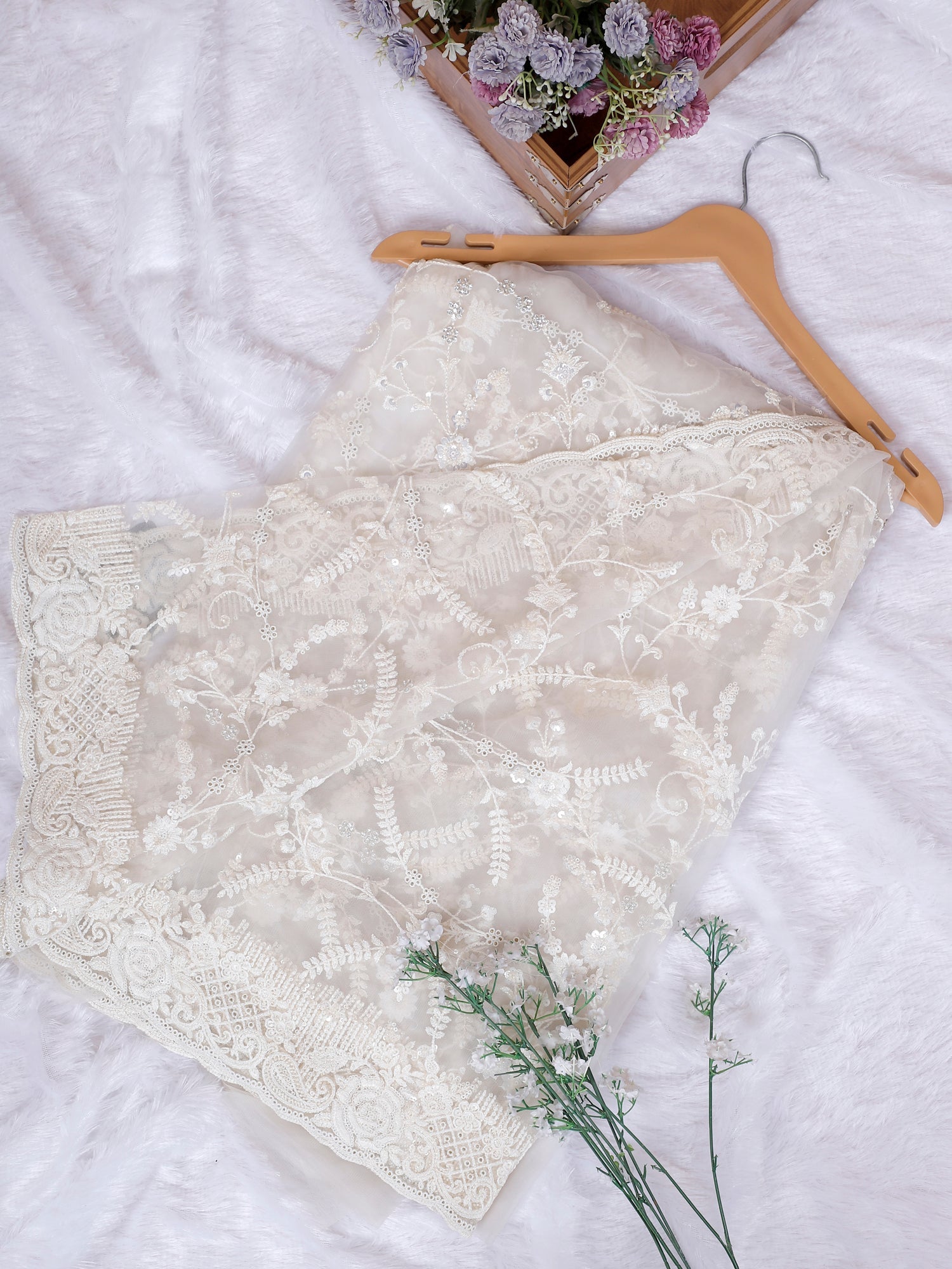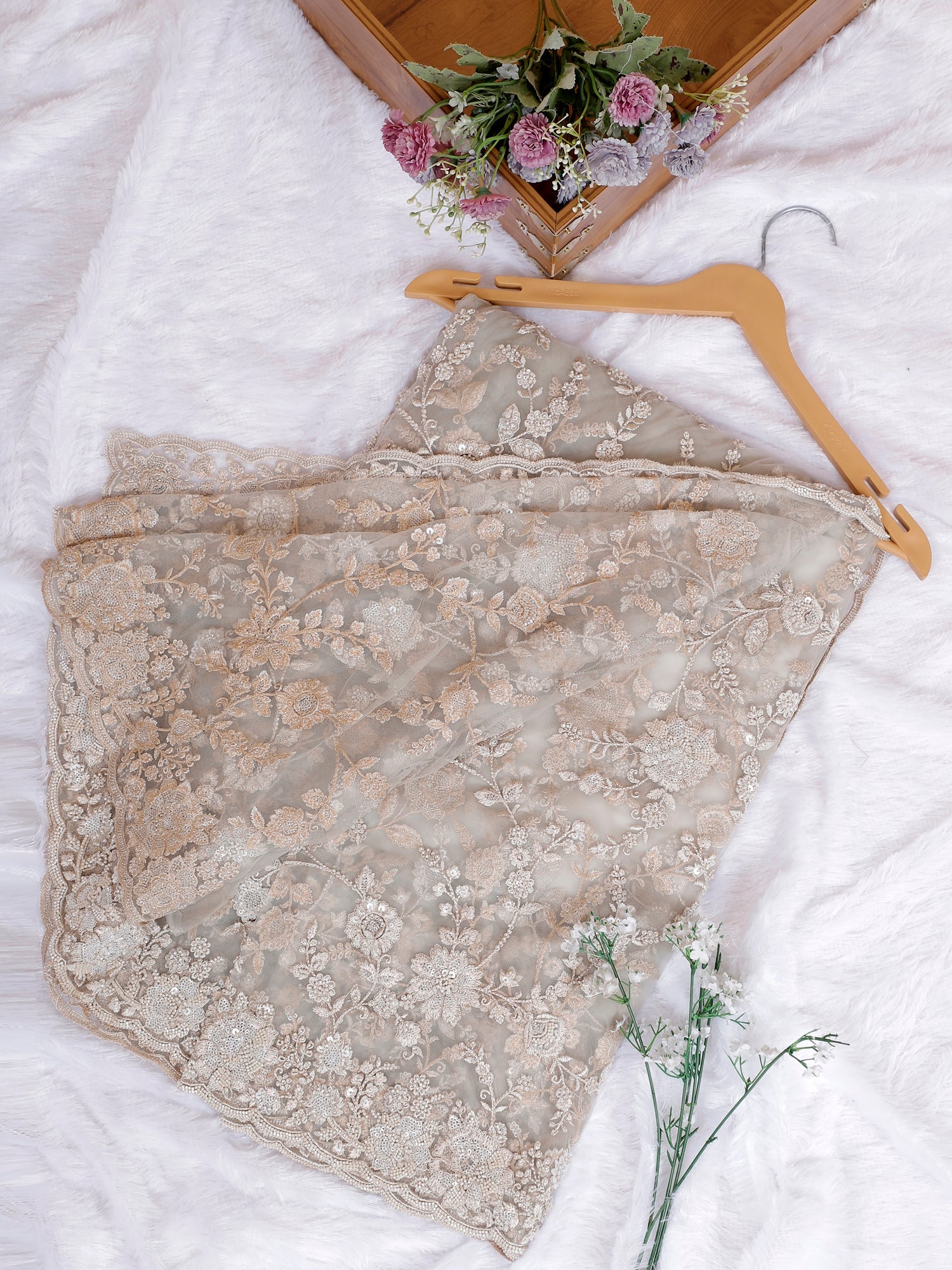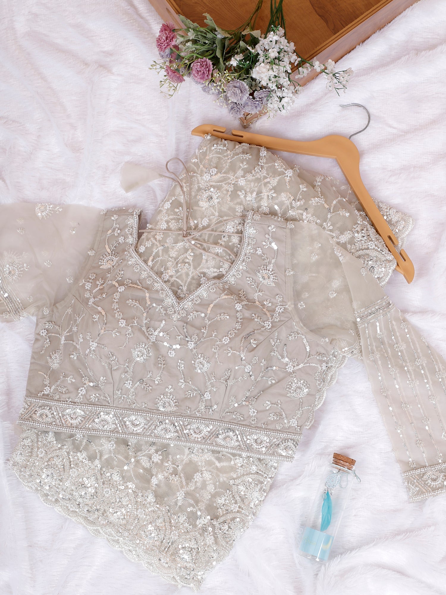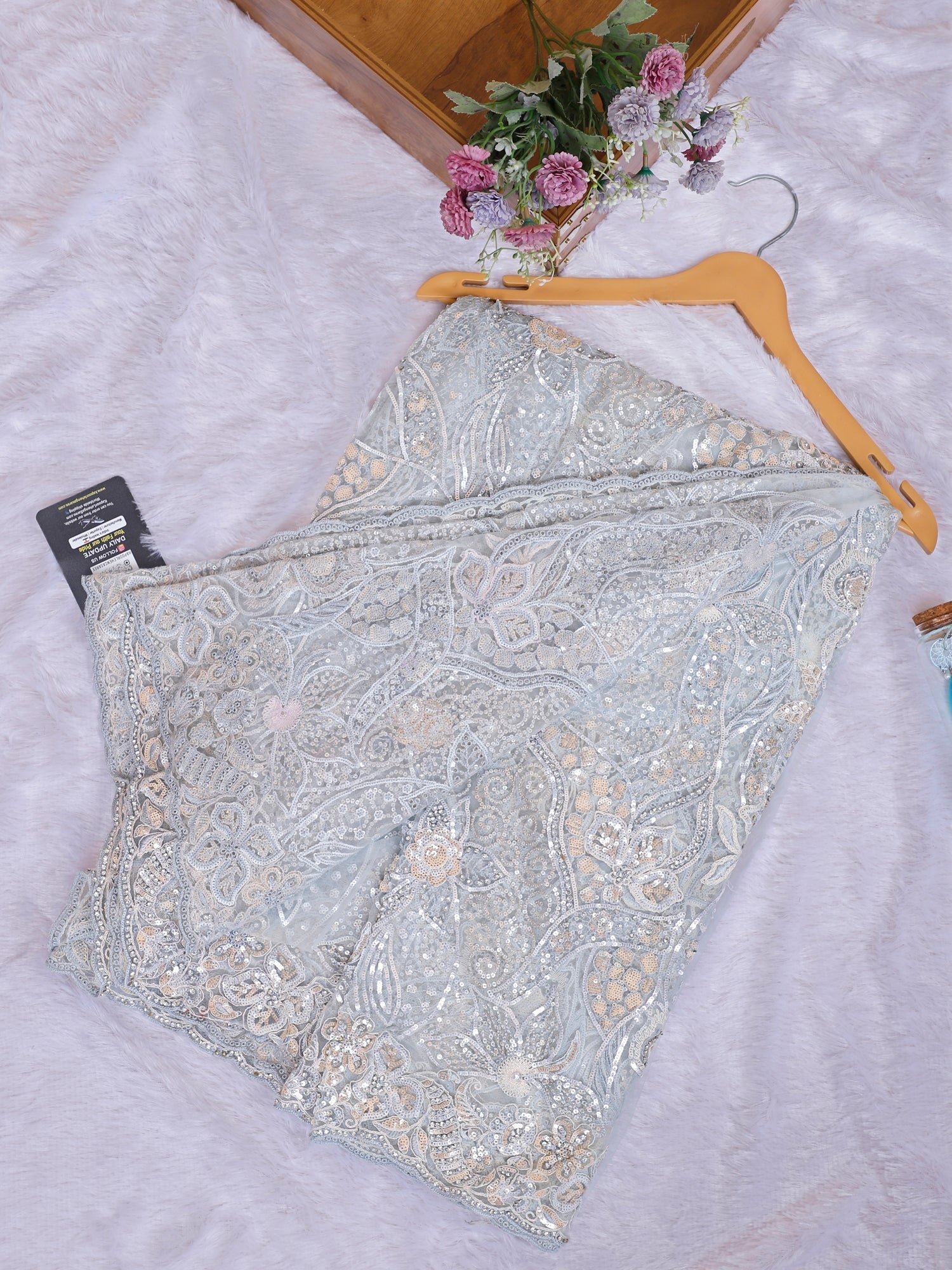 Light Grey Misty Glow Net Saree With Premium Handwork