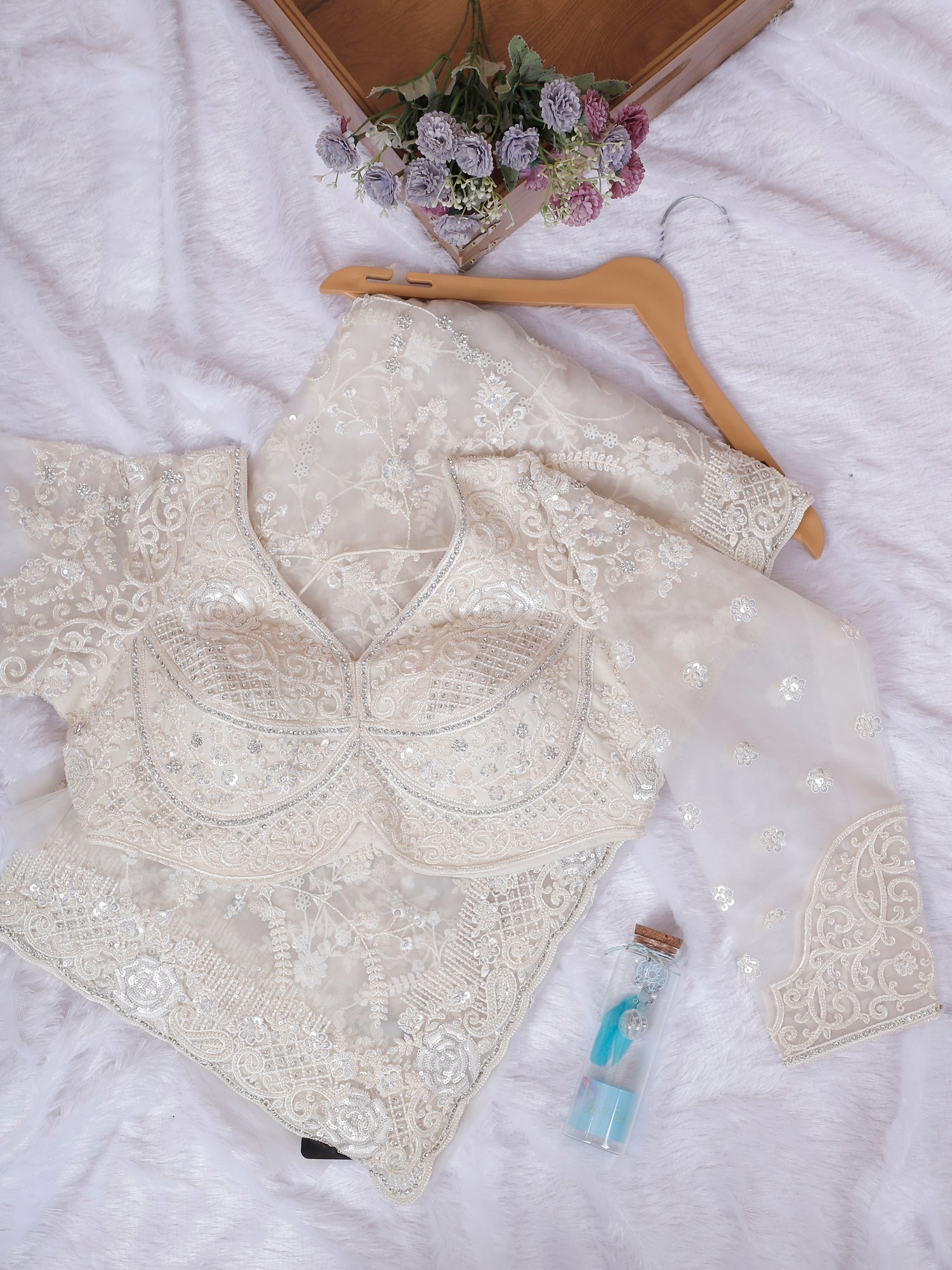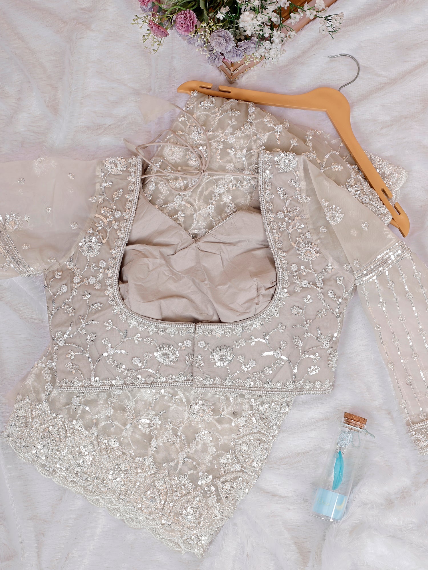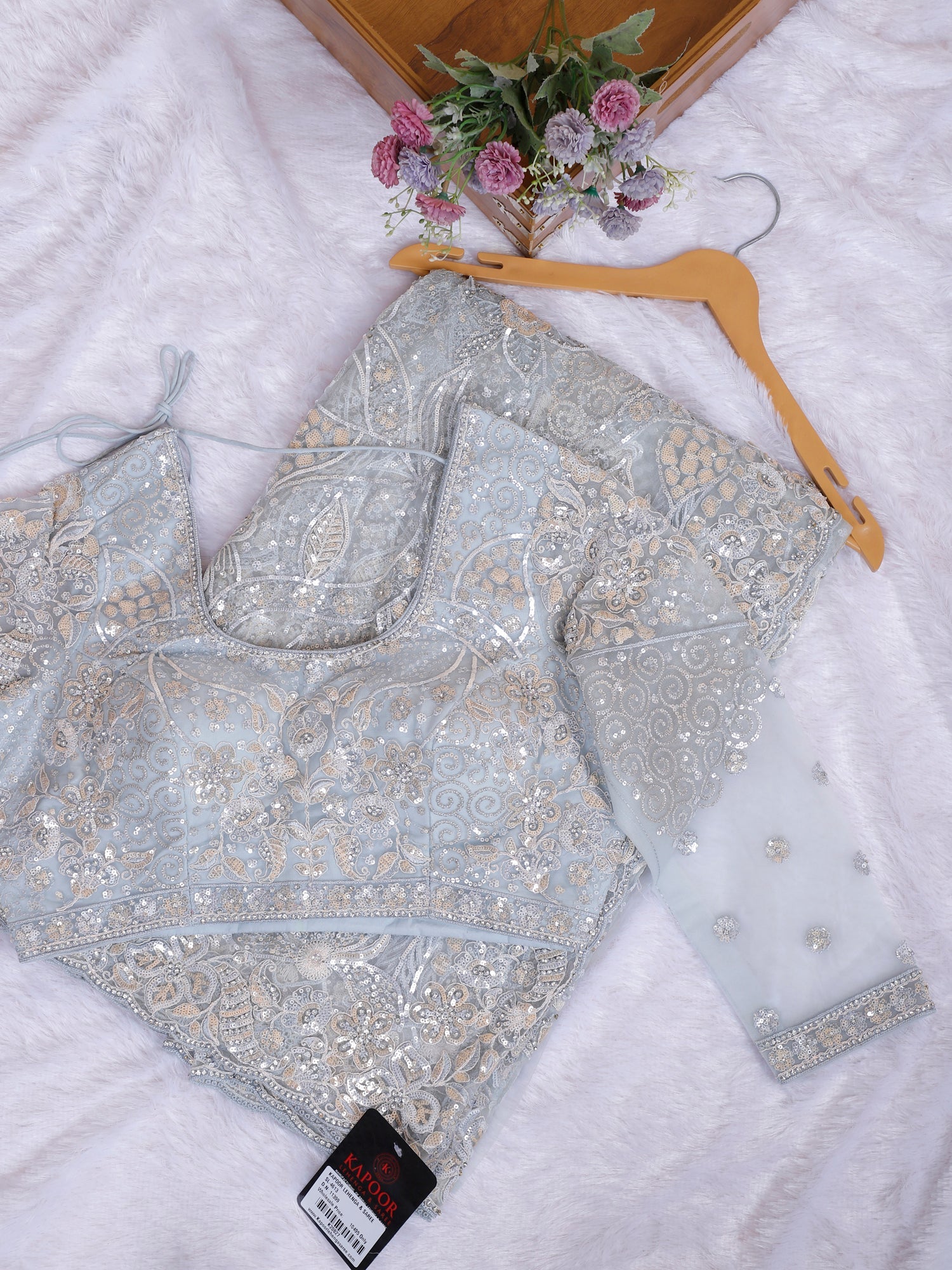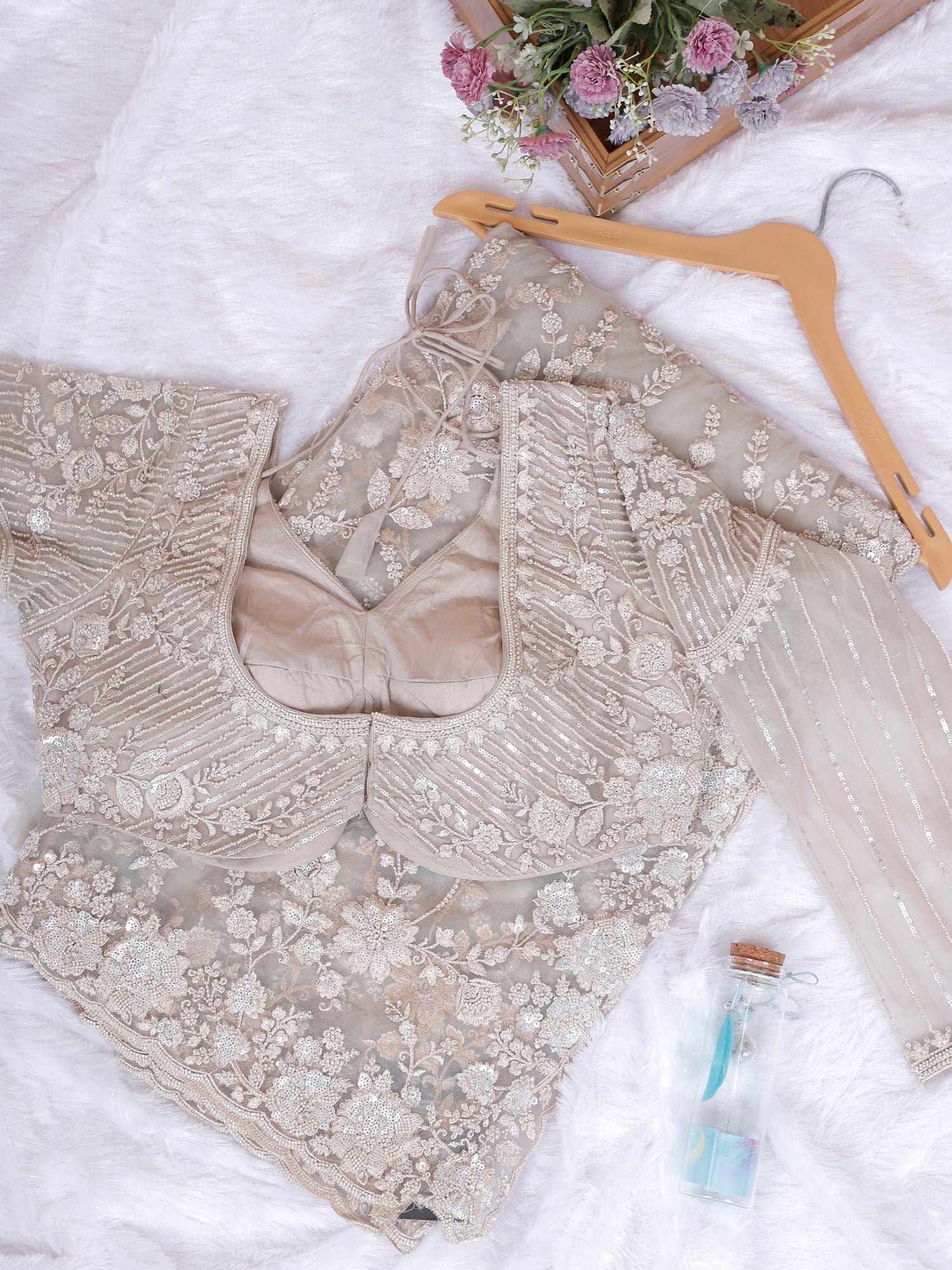 Light Grey Misty Glow Net Saree With Premium Handwork