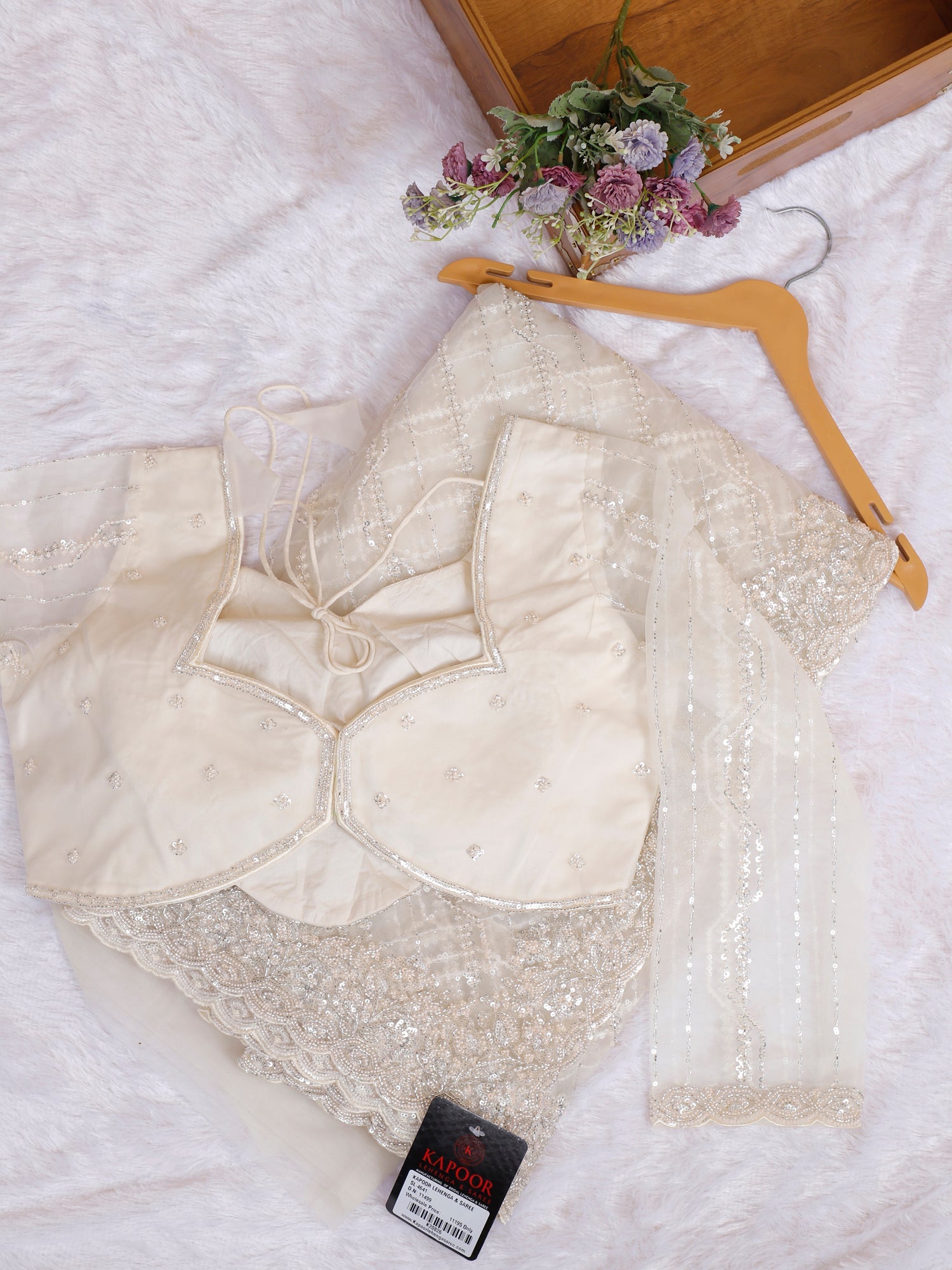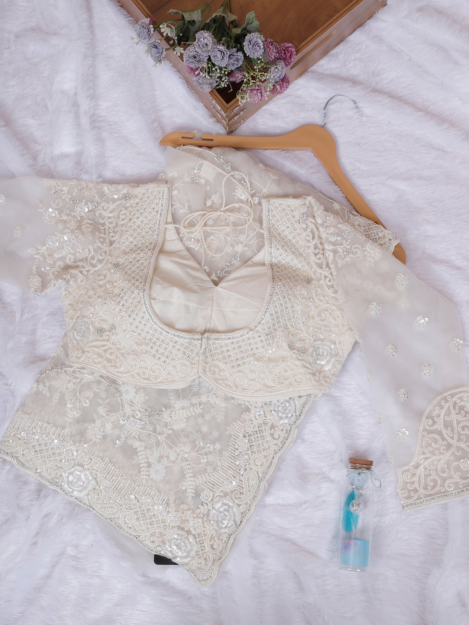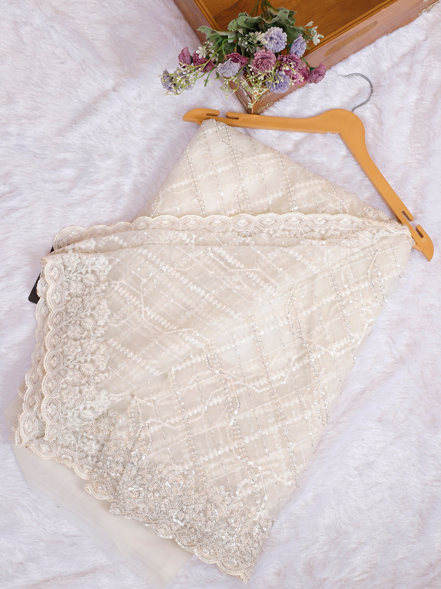 White Starlit Grace Net Sequence Premium Party Look Saree