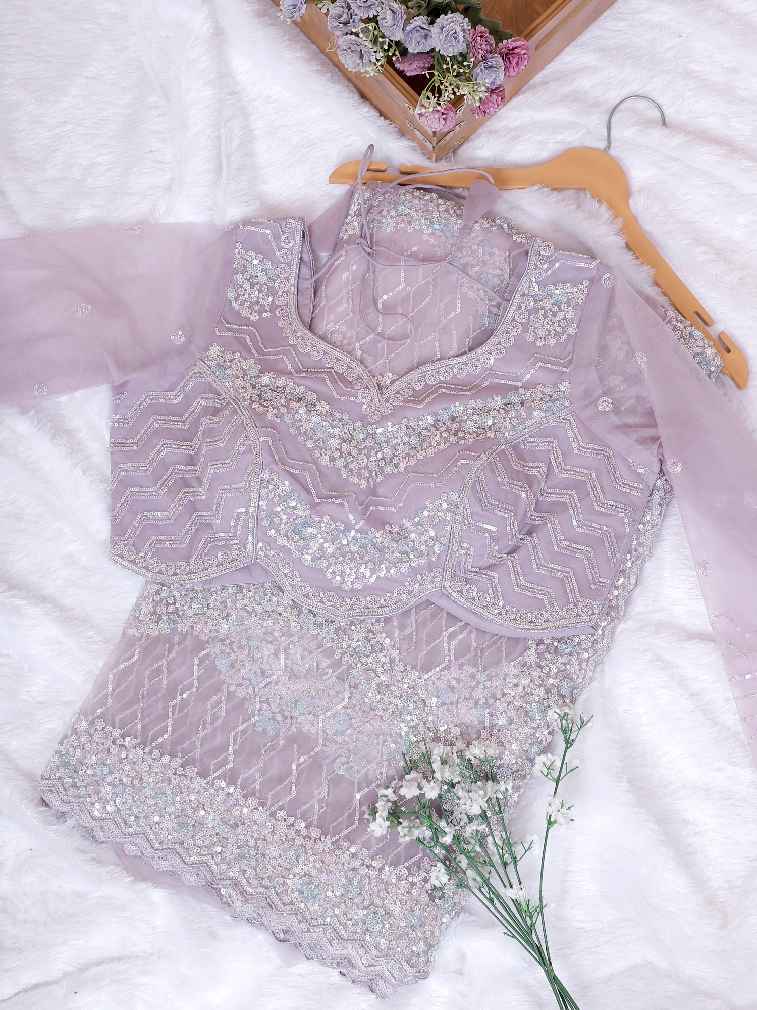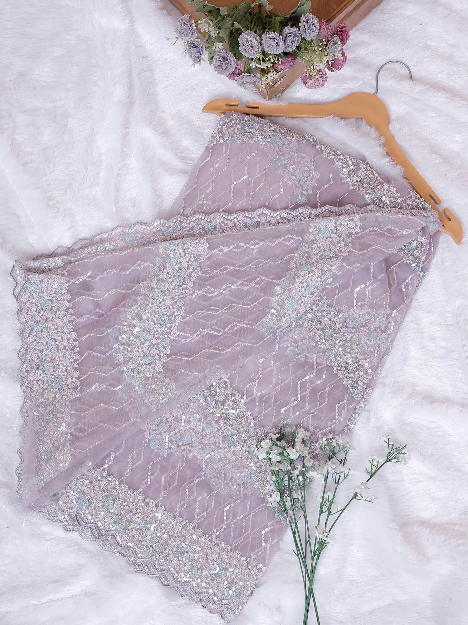 Lavender Mirage Premium Net Saree With Sparkling Sequins