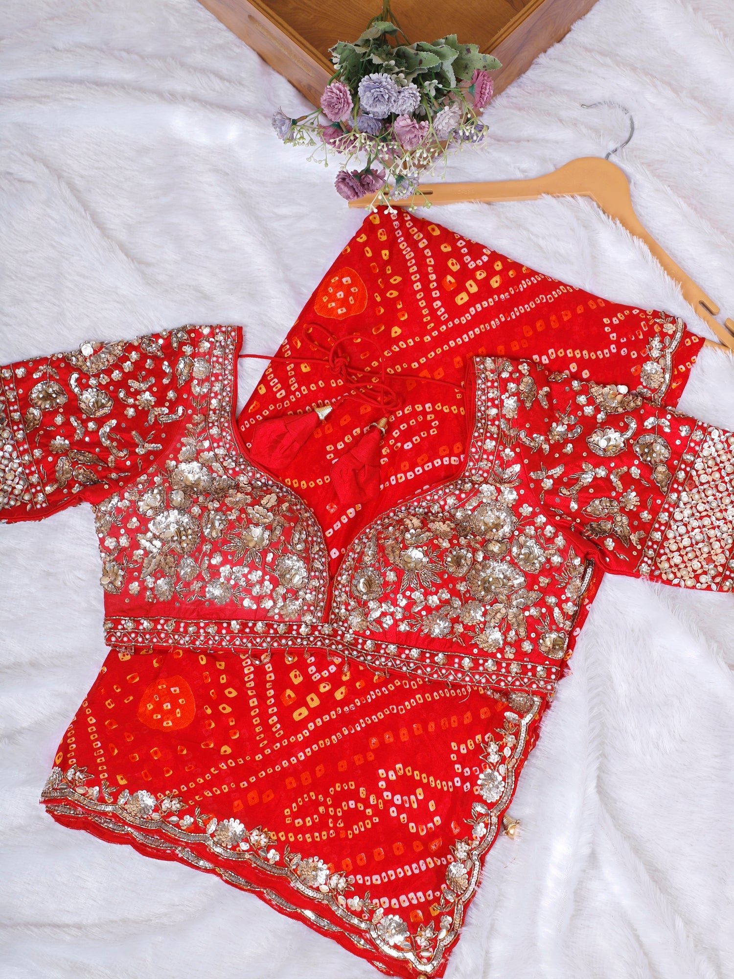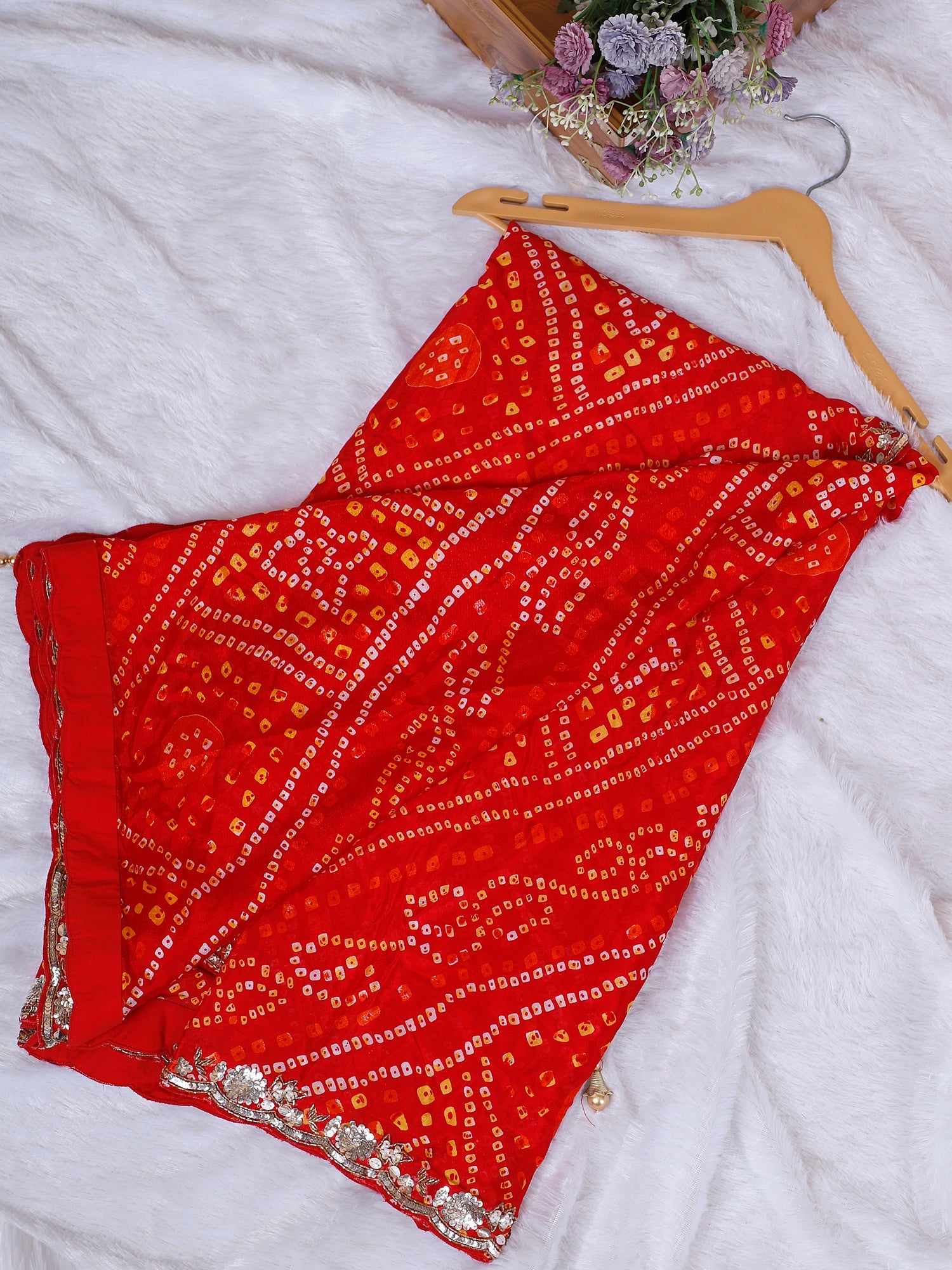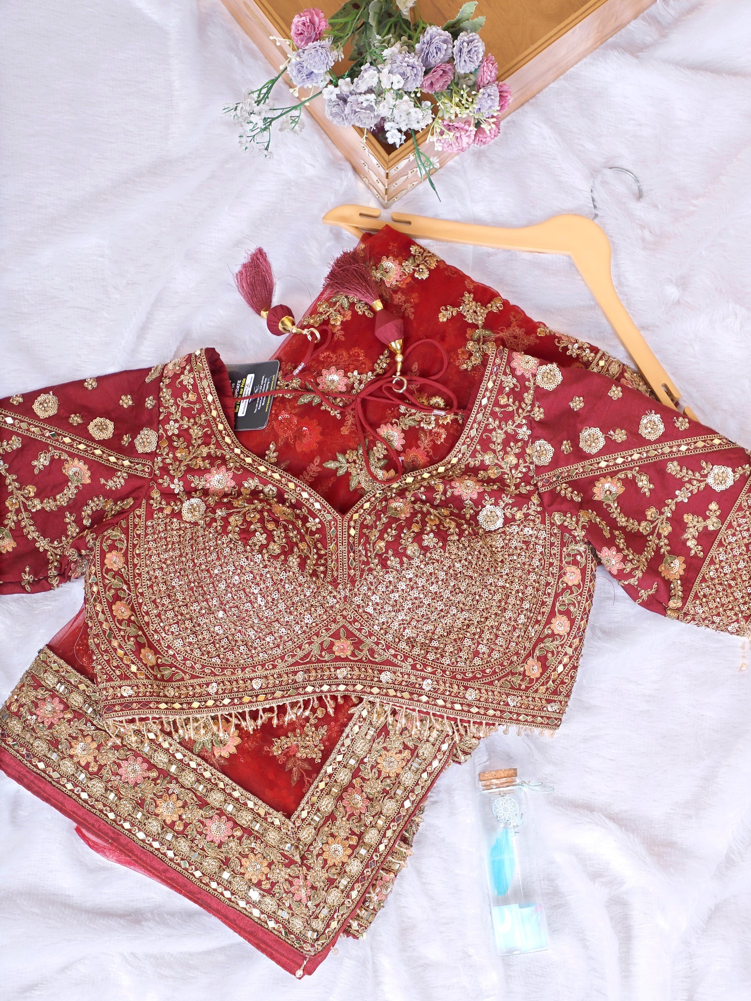 Red Chinon Silk Zardozi Sequence Handwork Saree