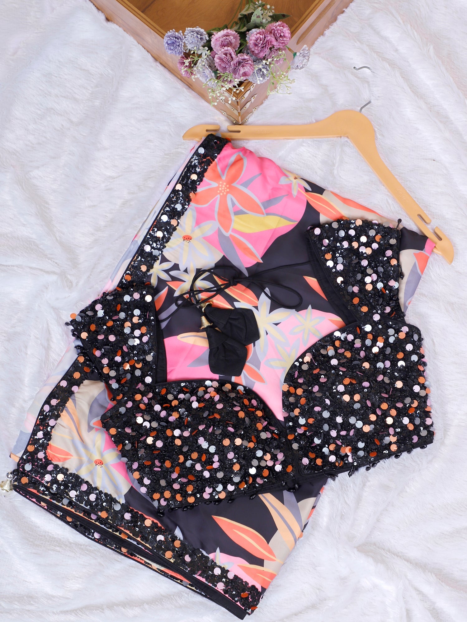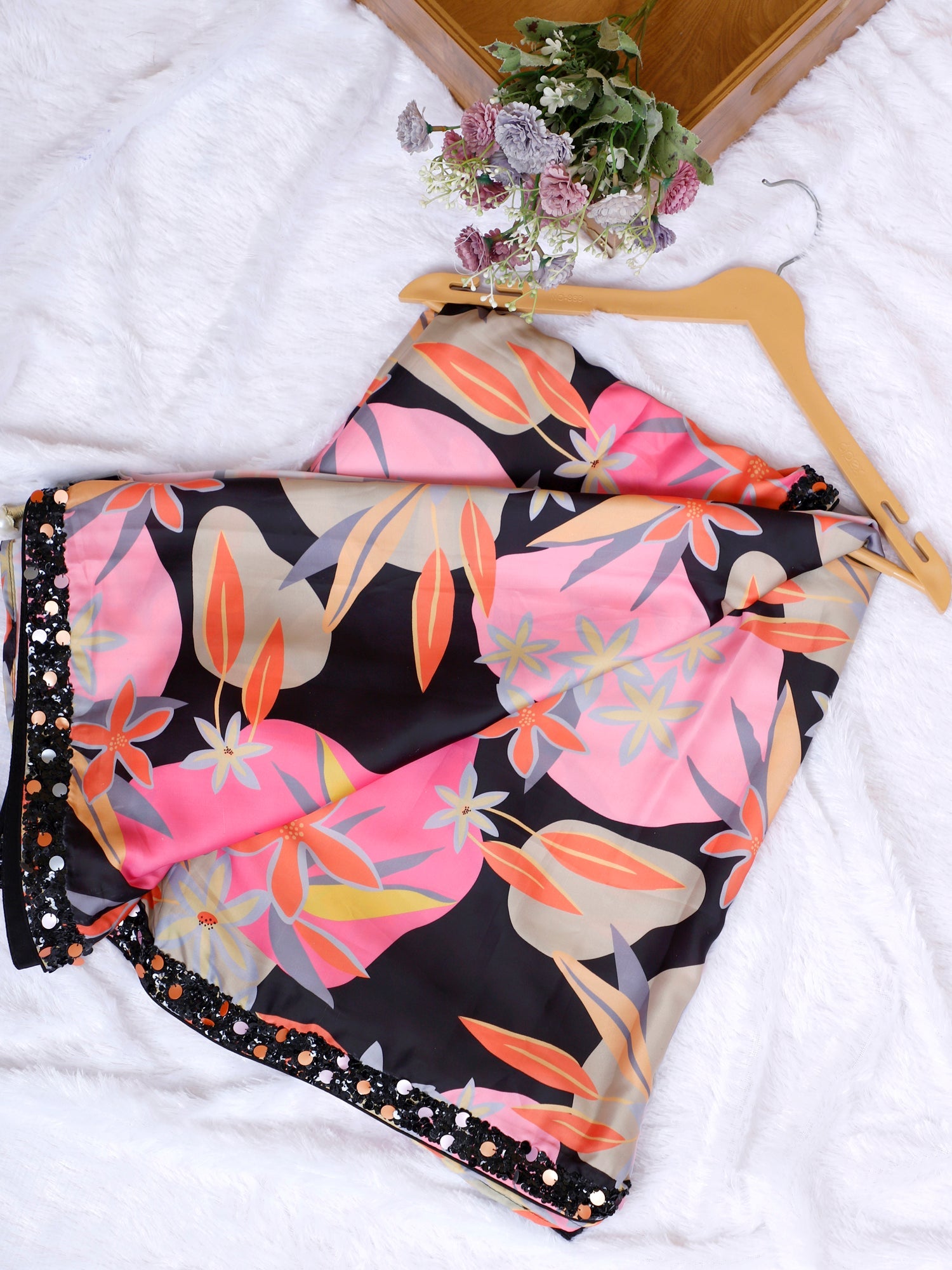 Radiant Multitone Crepe Silk Saree With Luxe Sequence Work