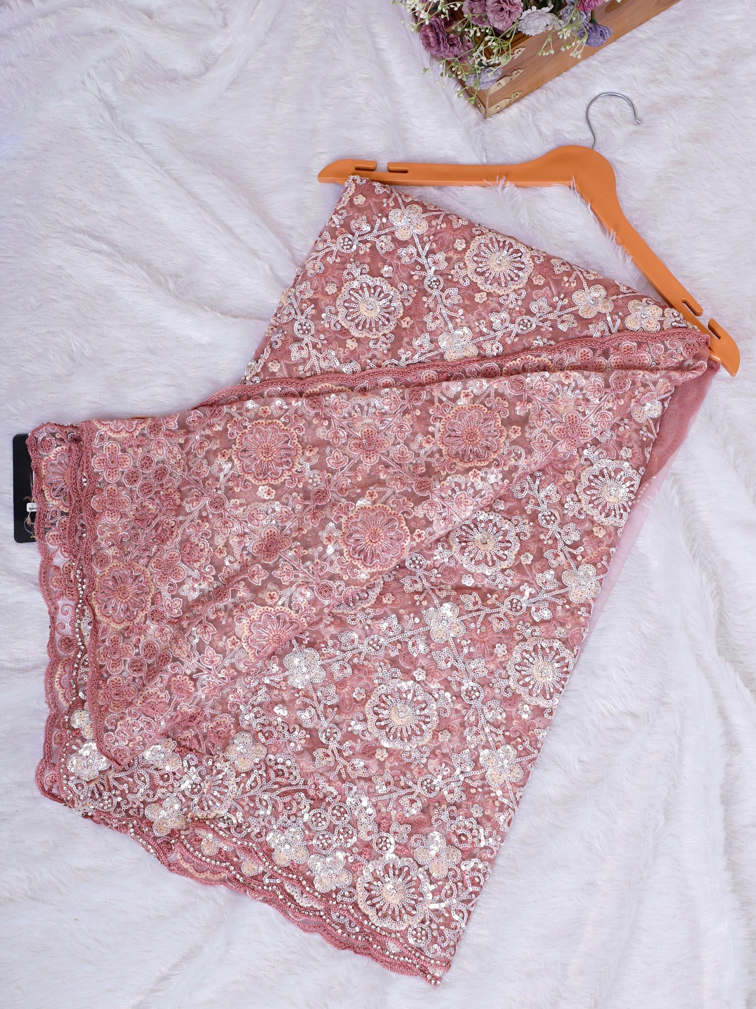 Light Maroon Diamond-Thread Net Saree With Luxe Sequence Work