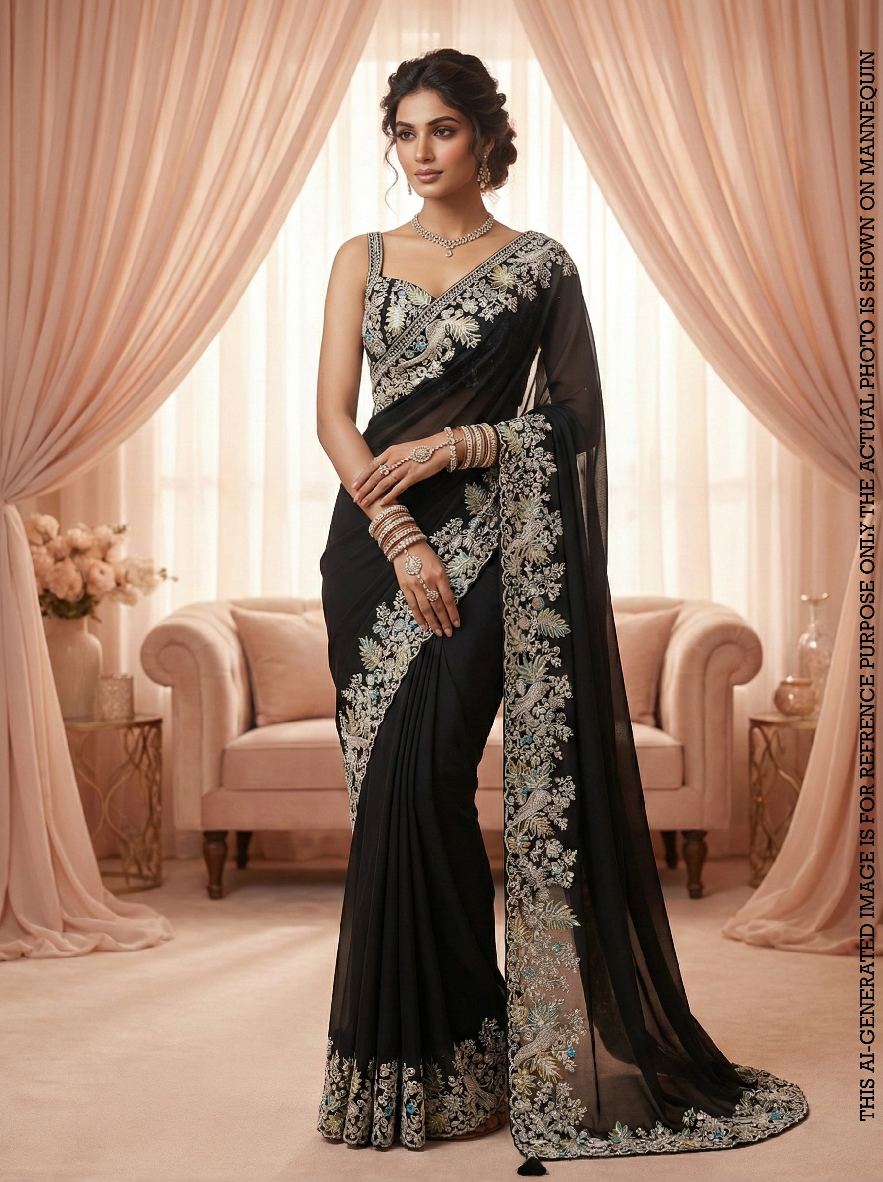 When it comes to styling your party wear saree, different events call for different types of looks. For a more elegant party wear saree suited for formal cocktails, consider traditional fabrics like silk or satin that reflect sophistication. On the other hand, if you’re attending a glamorous party wear saree event, you can experiment with vibrant colors, sequins, or contemporary designer saree designs.