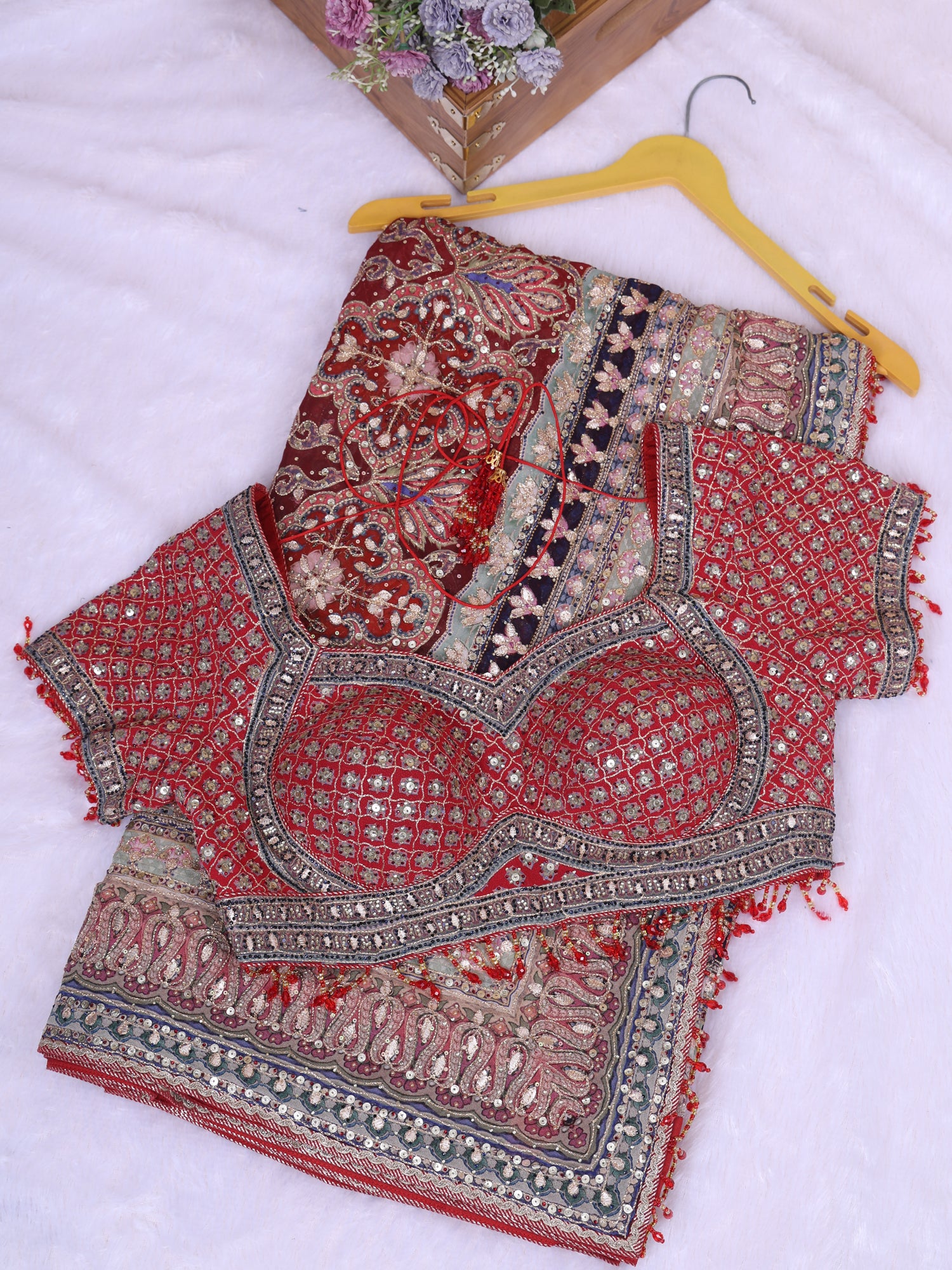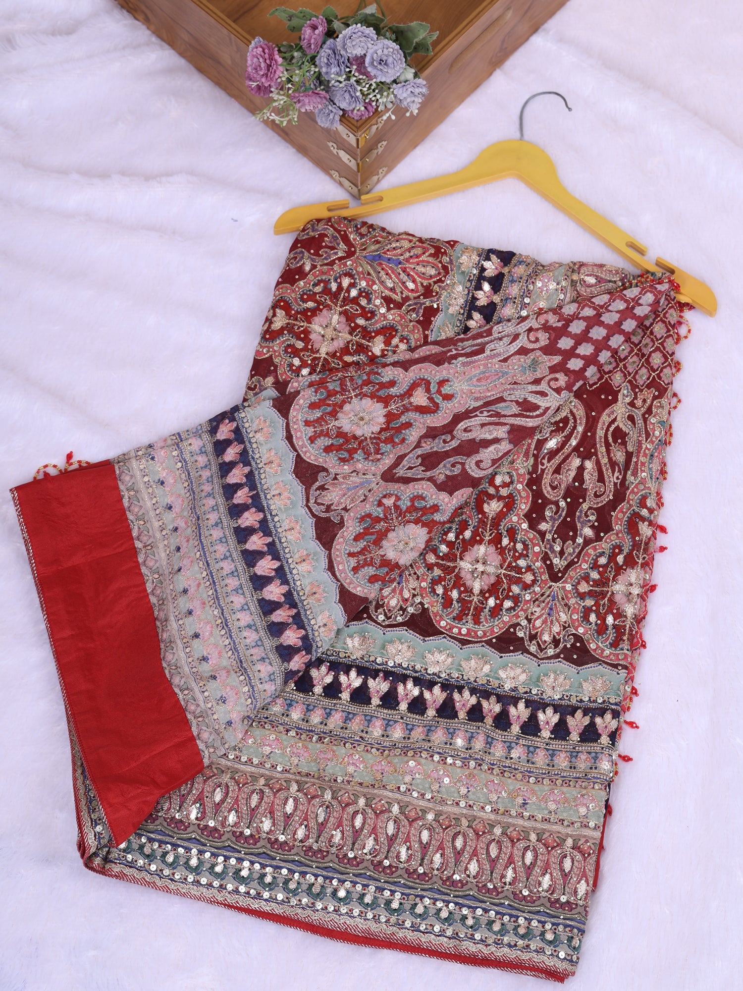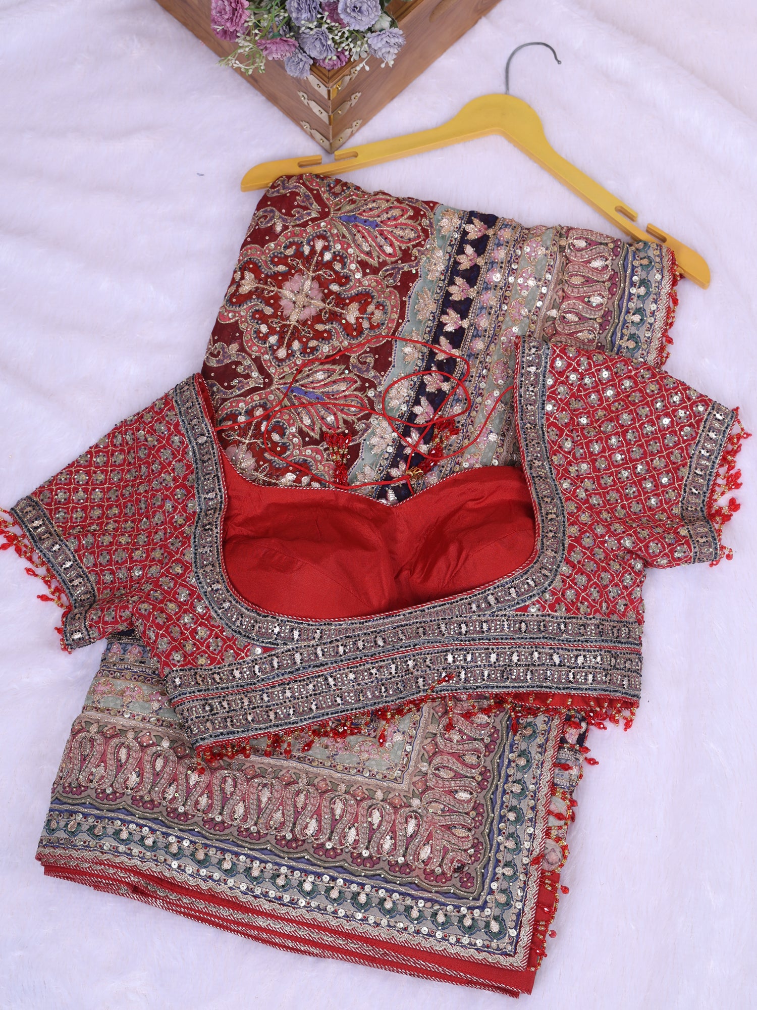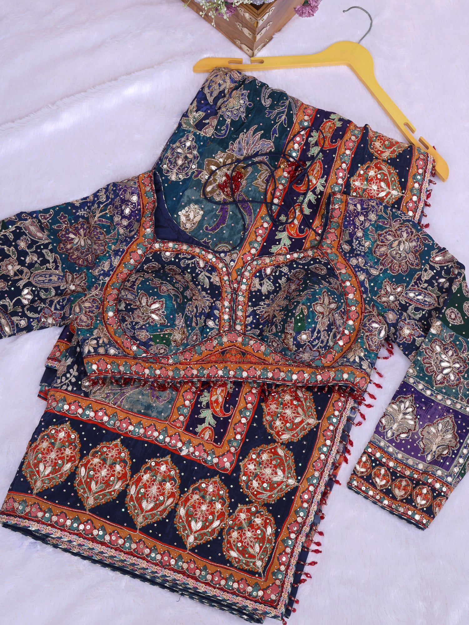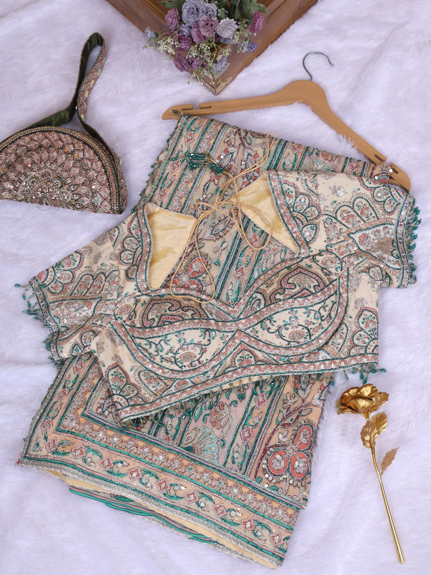 Royal Multi-Color Organza Lehenga With Jarkan & Bead