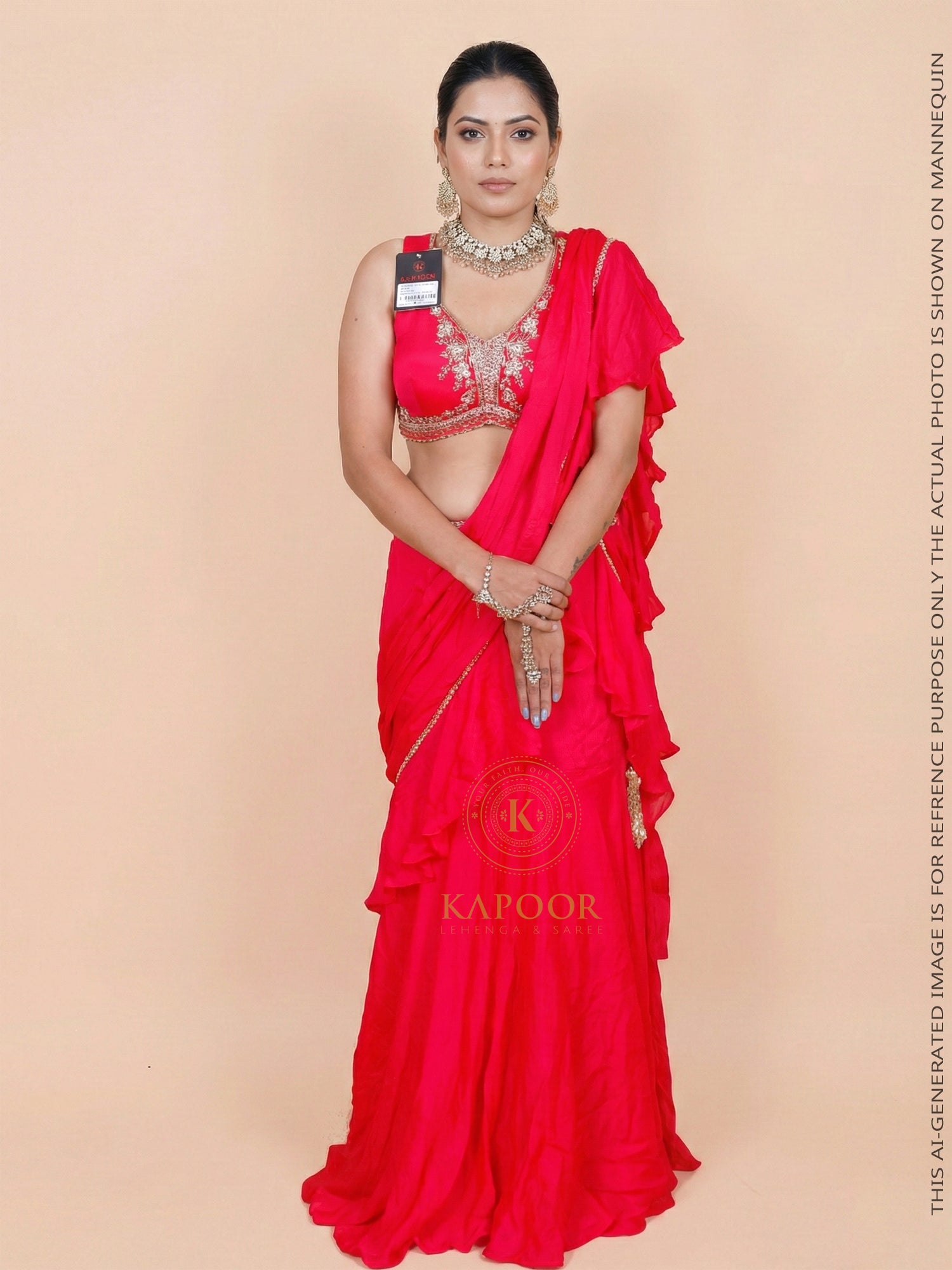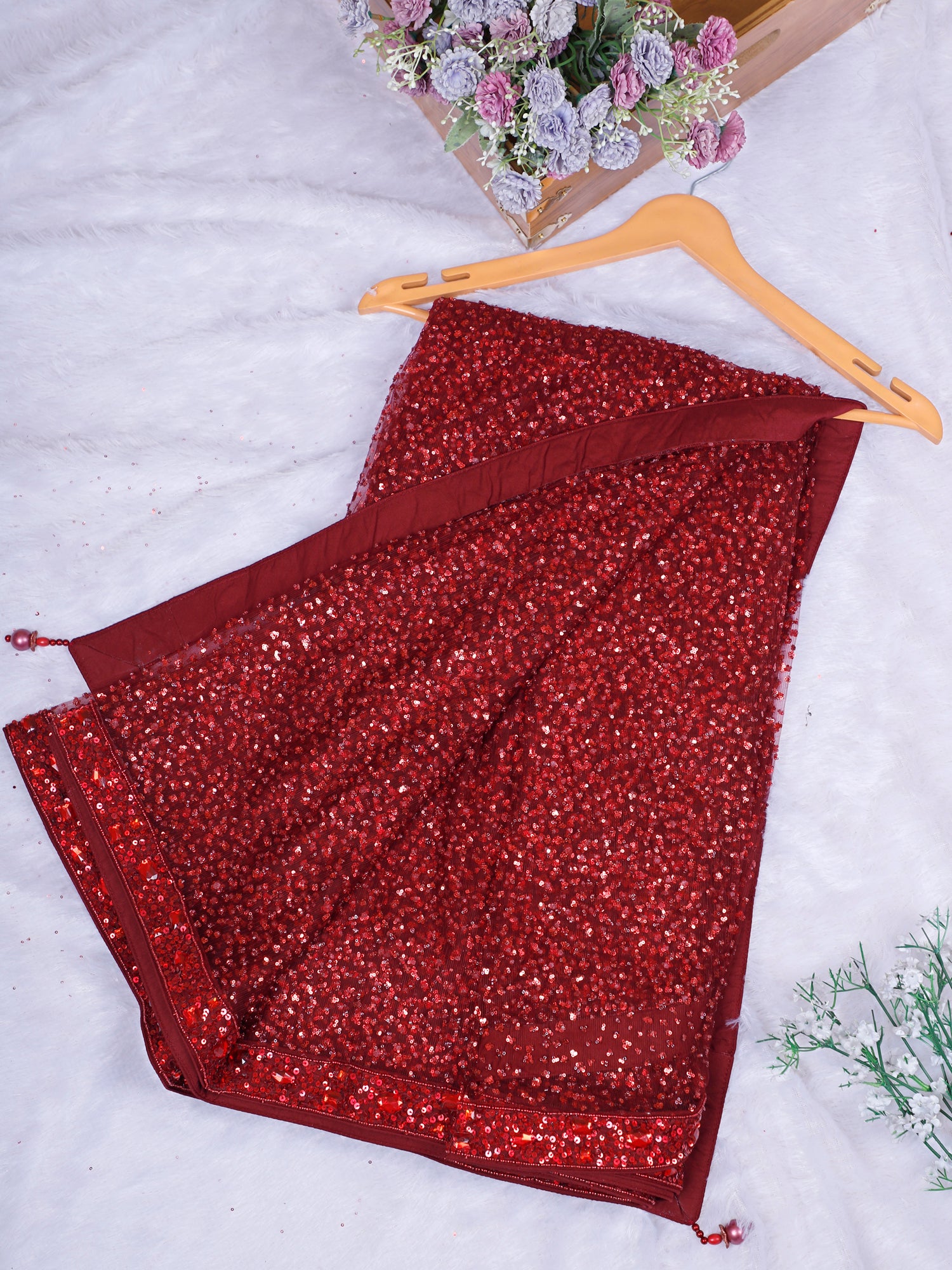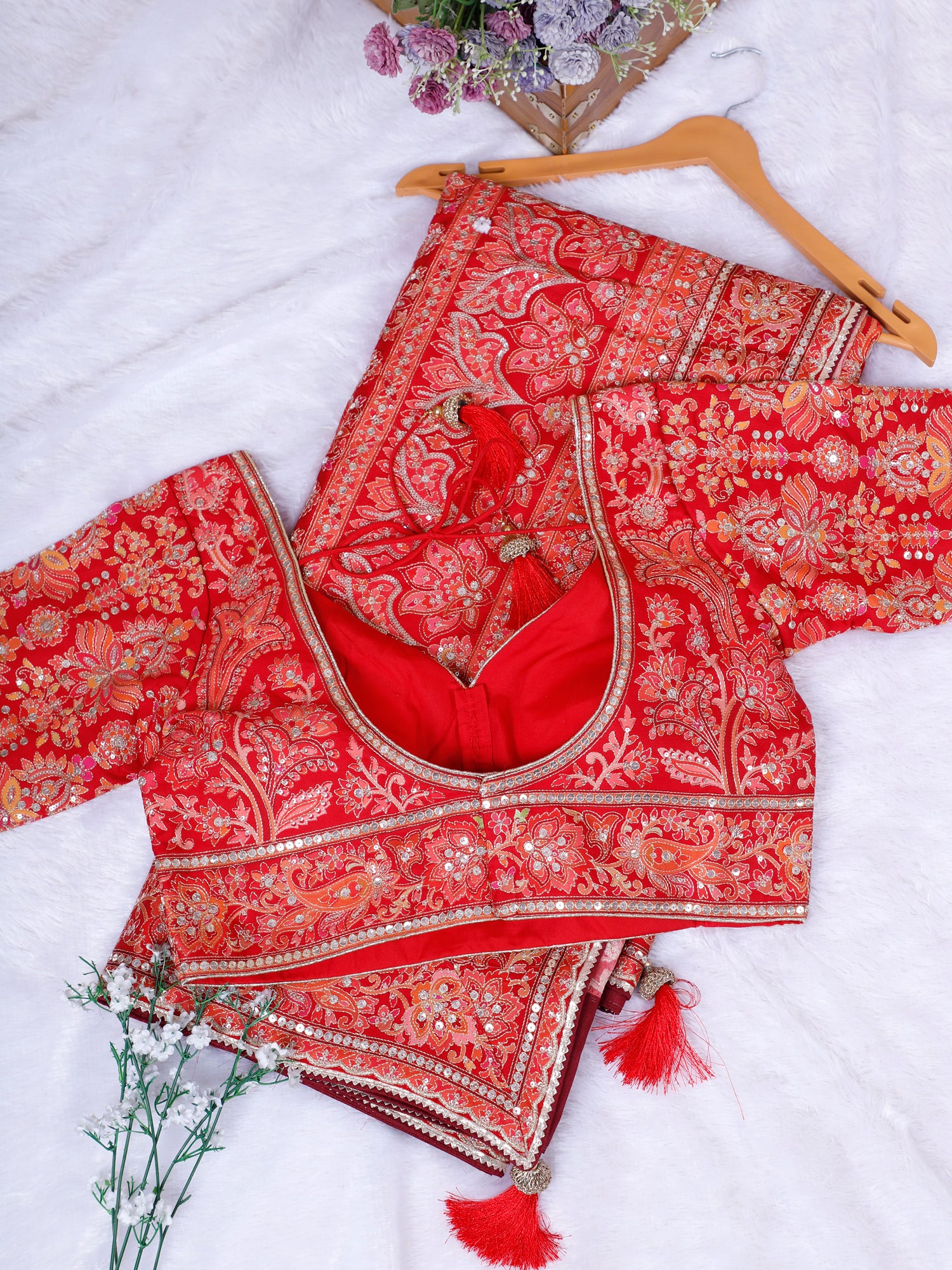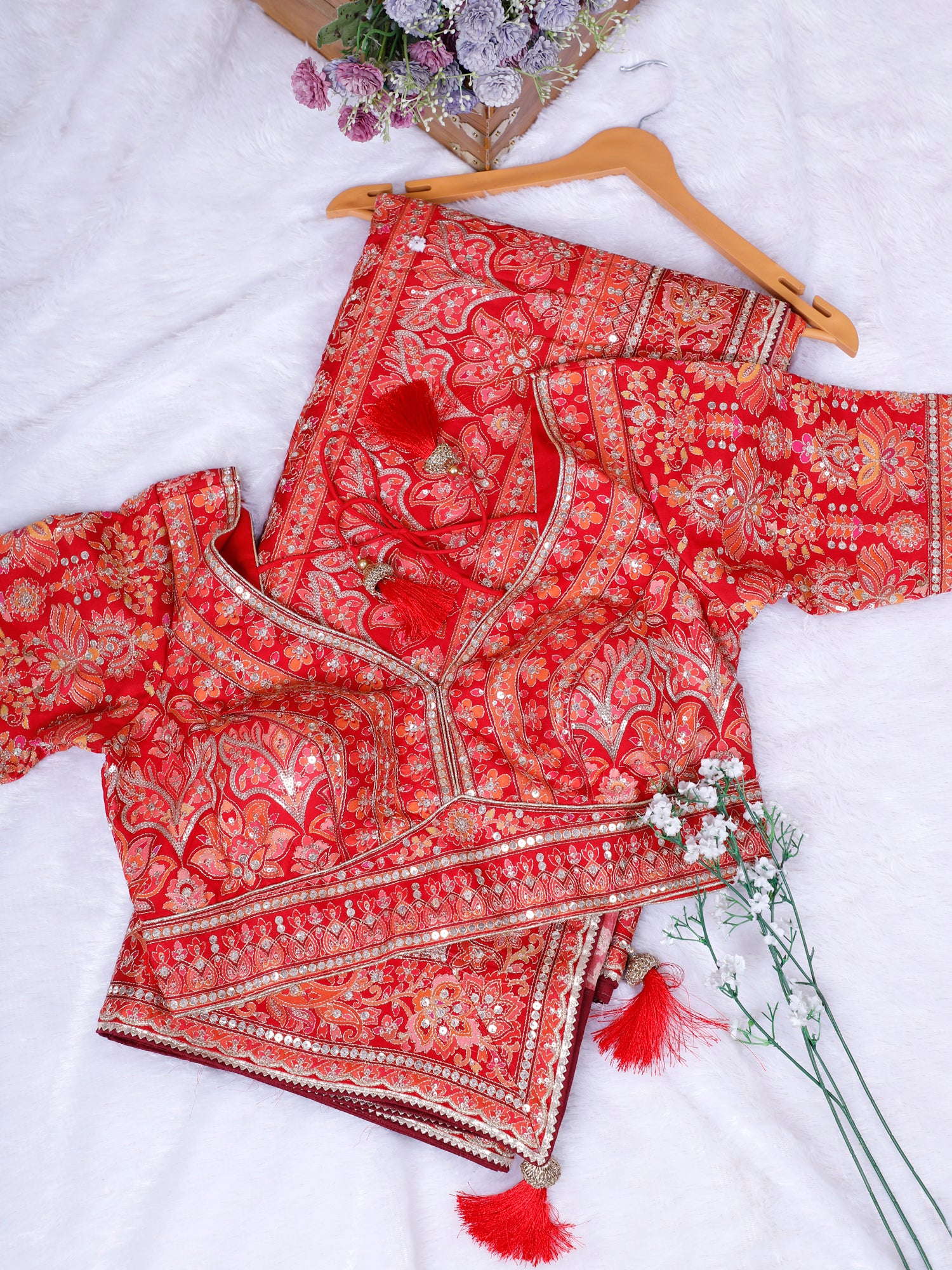 Red Sequin Thread Embroidered Readymade Blouse Saree