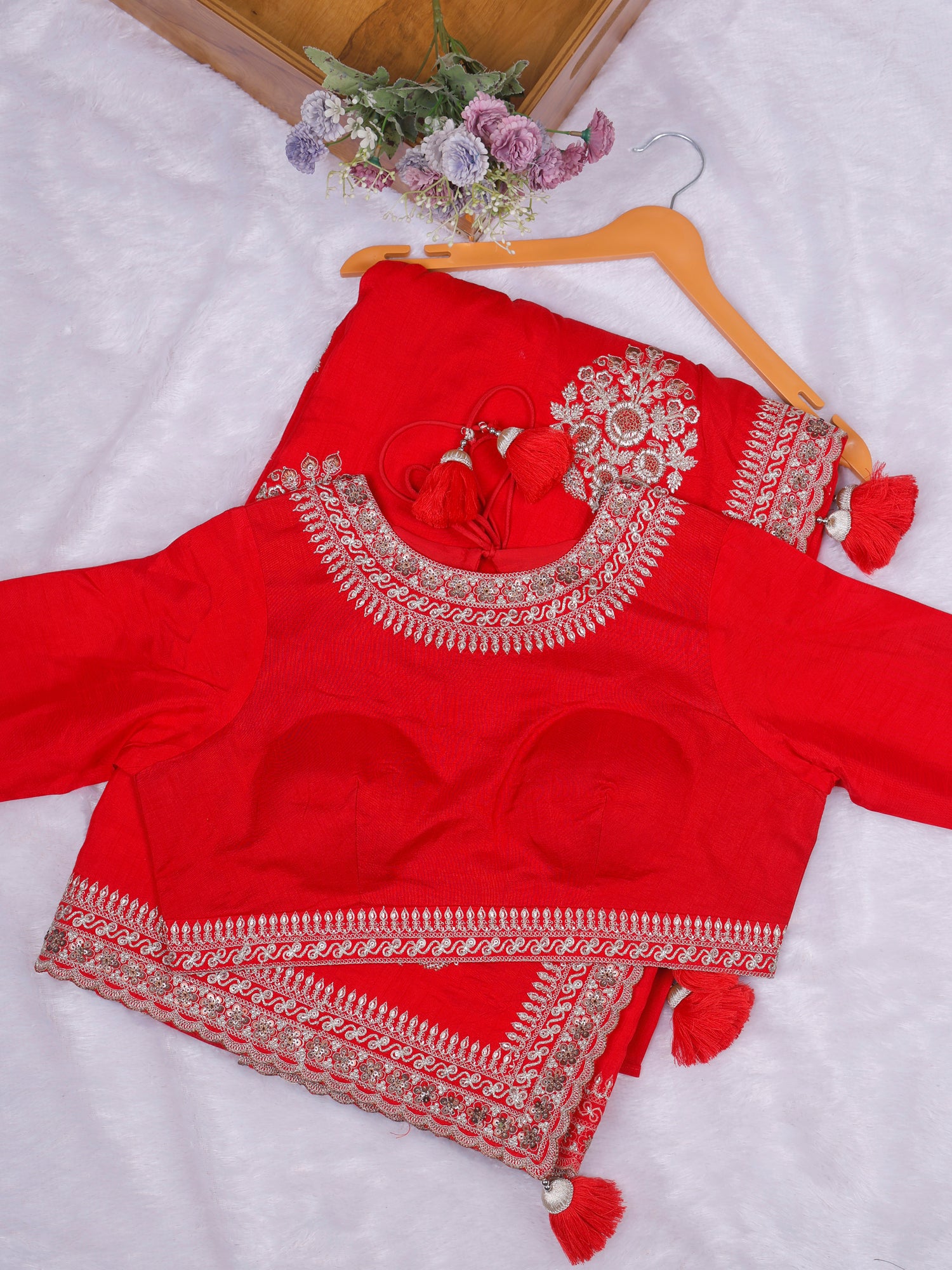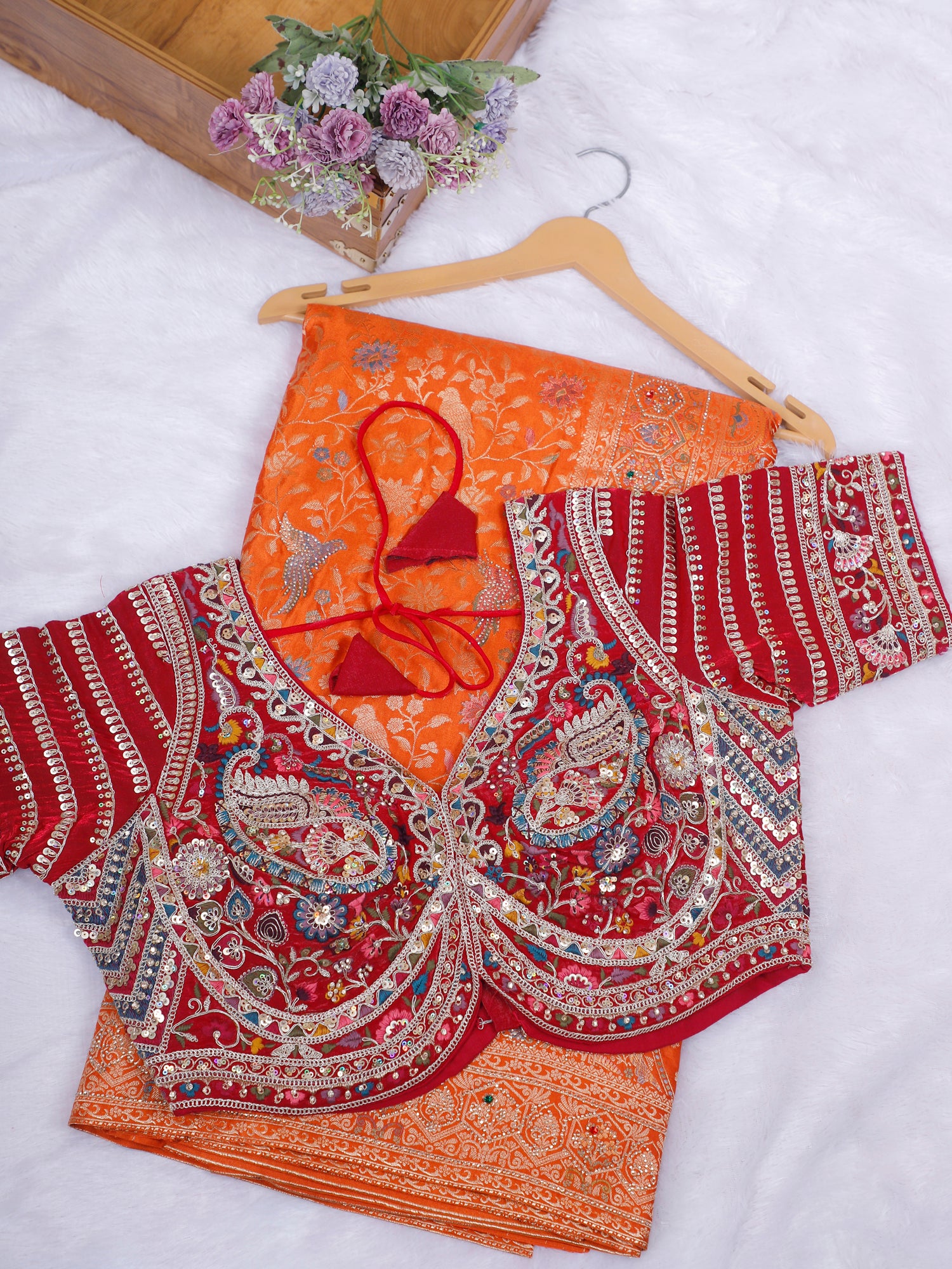 Red-Orange Agni Shimmer Silk-Mousse Saree