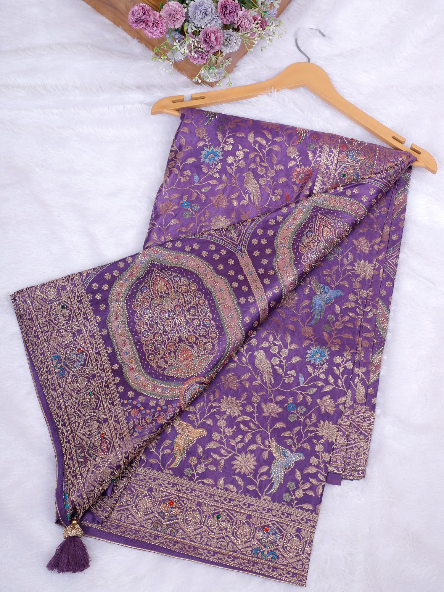Berry Royale Purple Pink Silk Unstitched Saree with Artistic Handwork