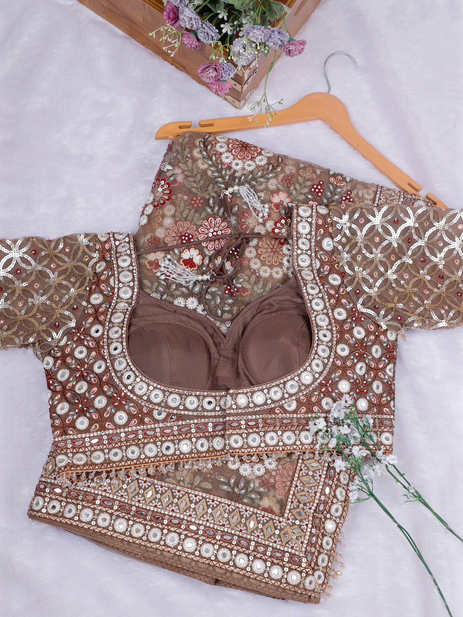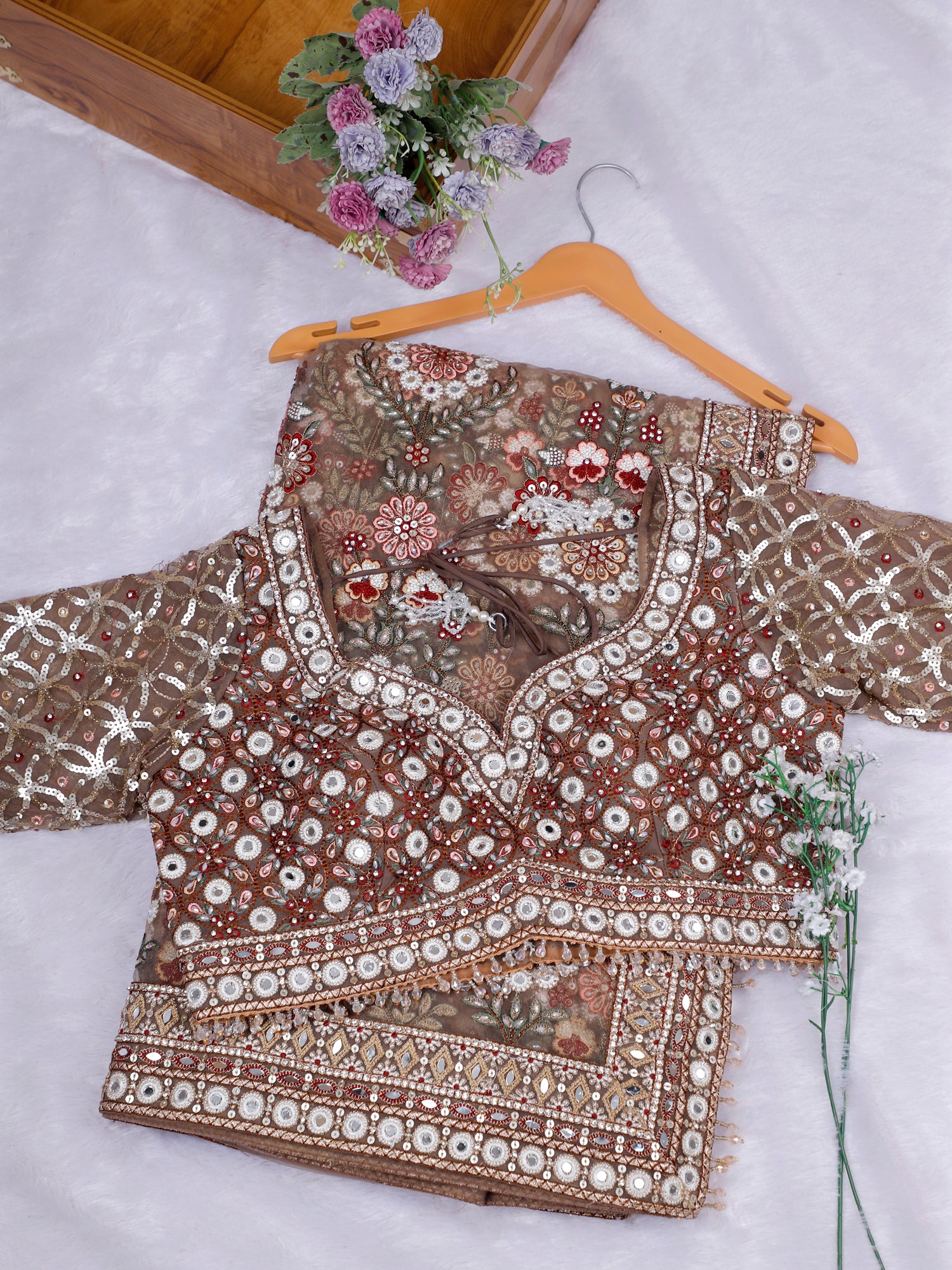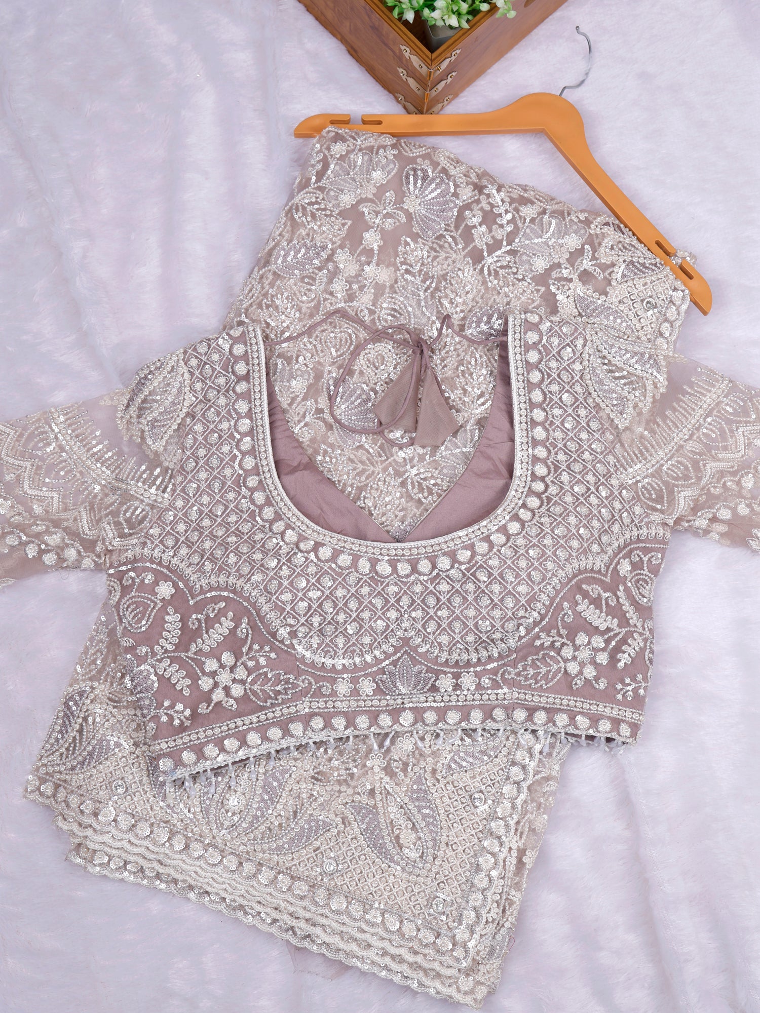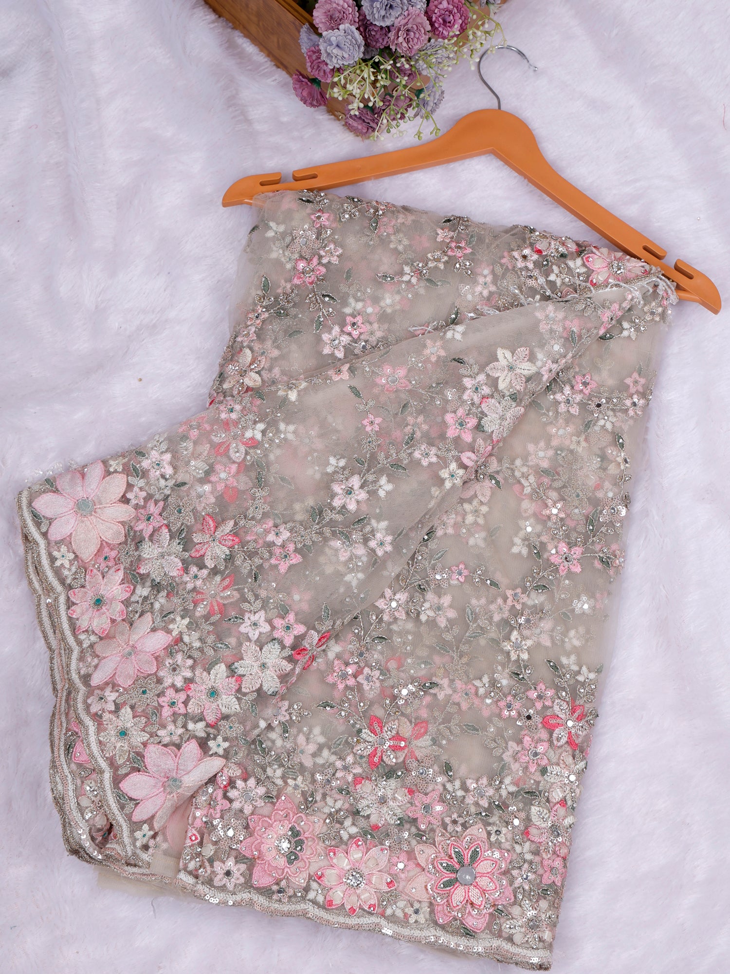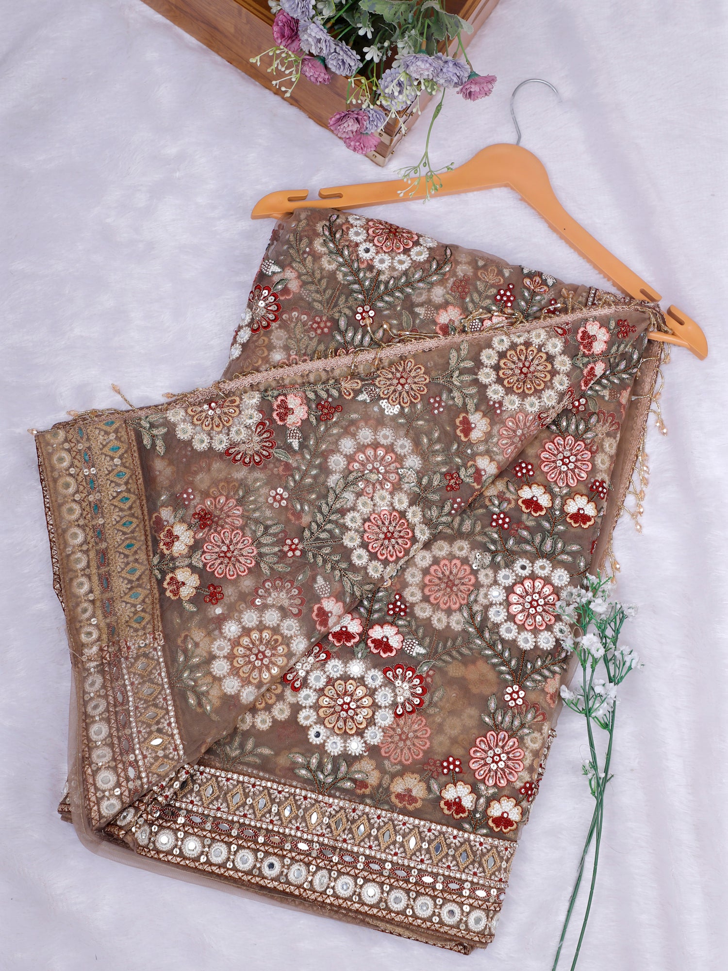 Regal Mocha Noor Mirror-Diamond Net Saree