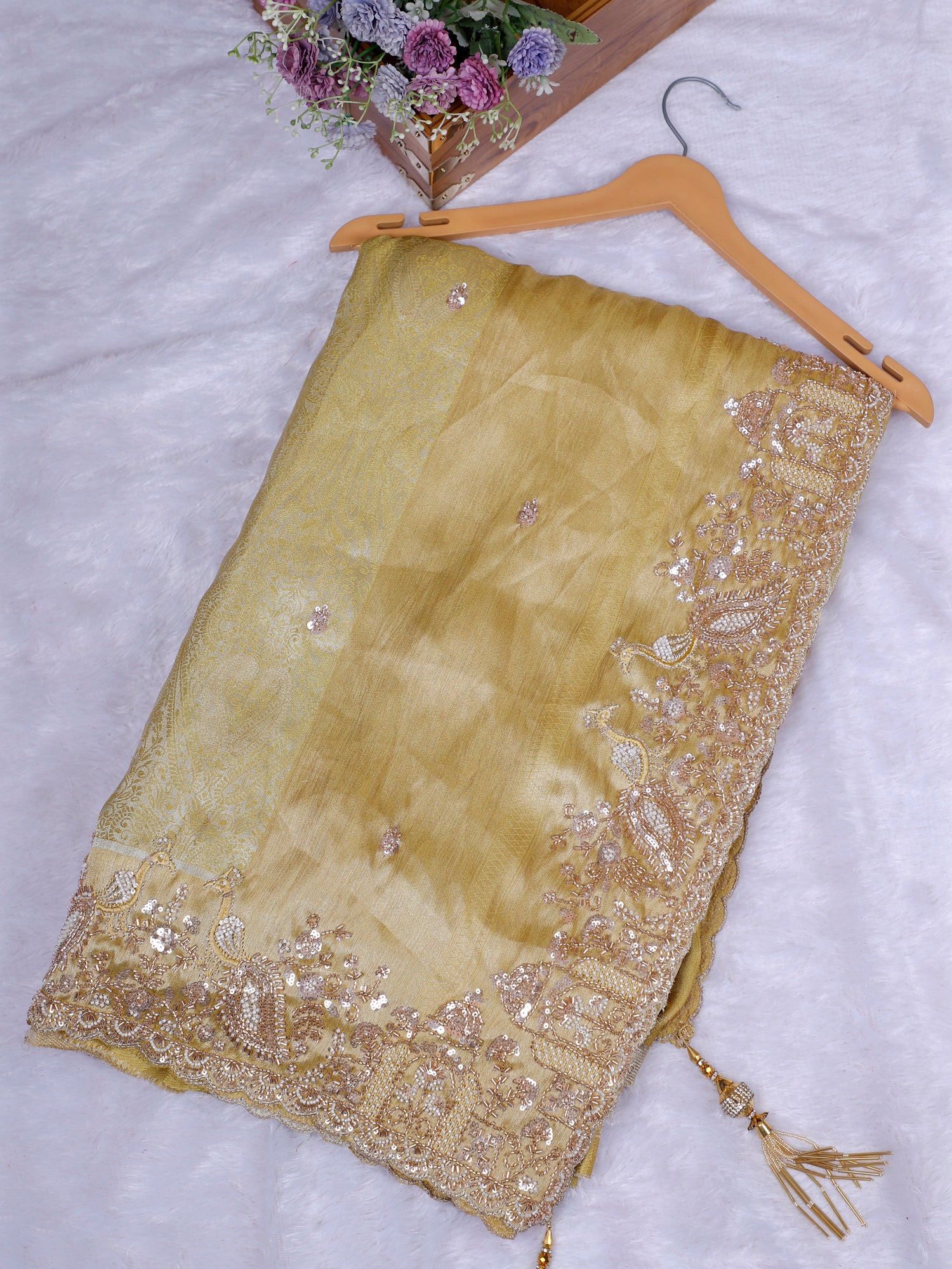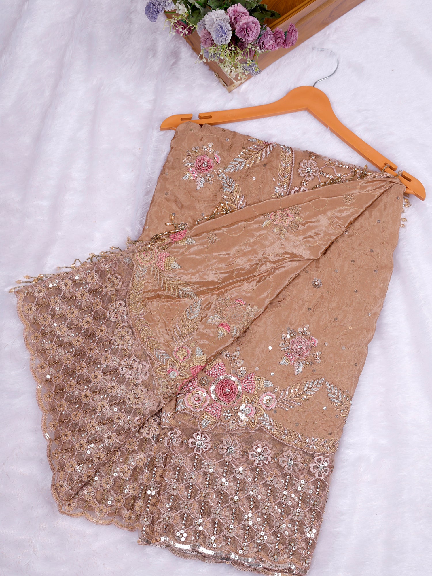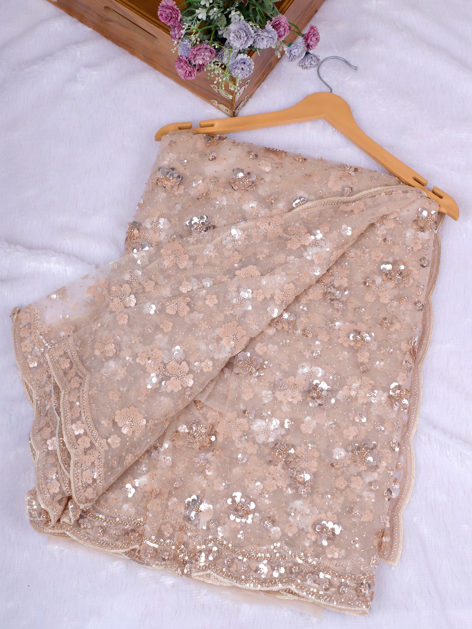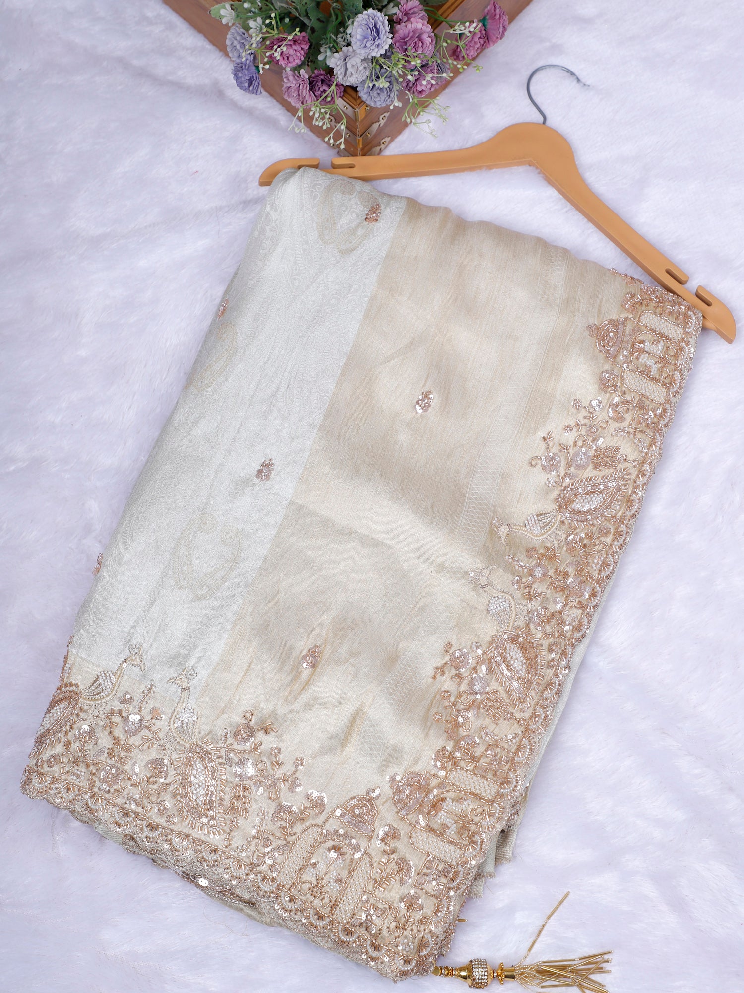 Biscuit Champagne Glow Designer Saree