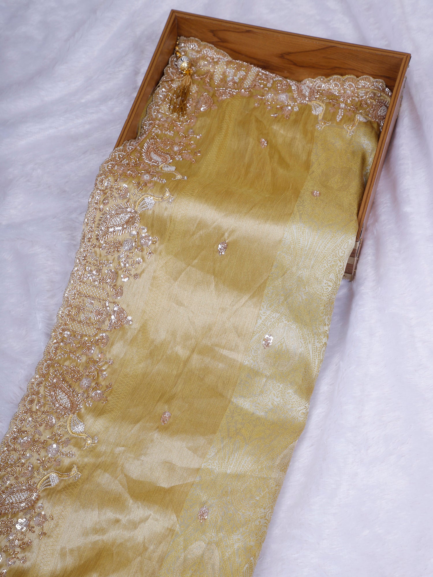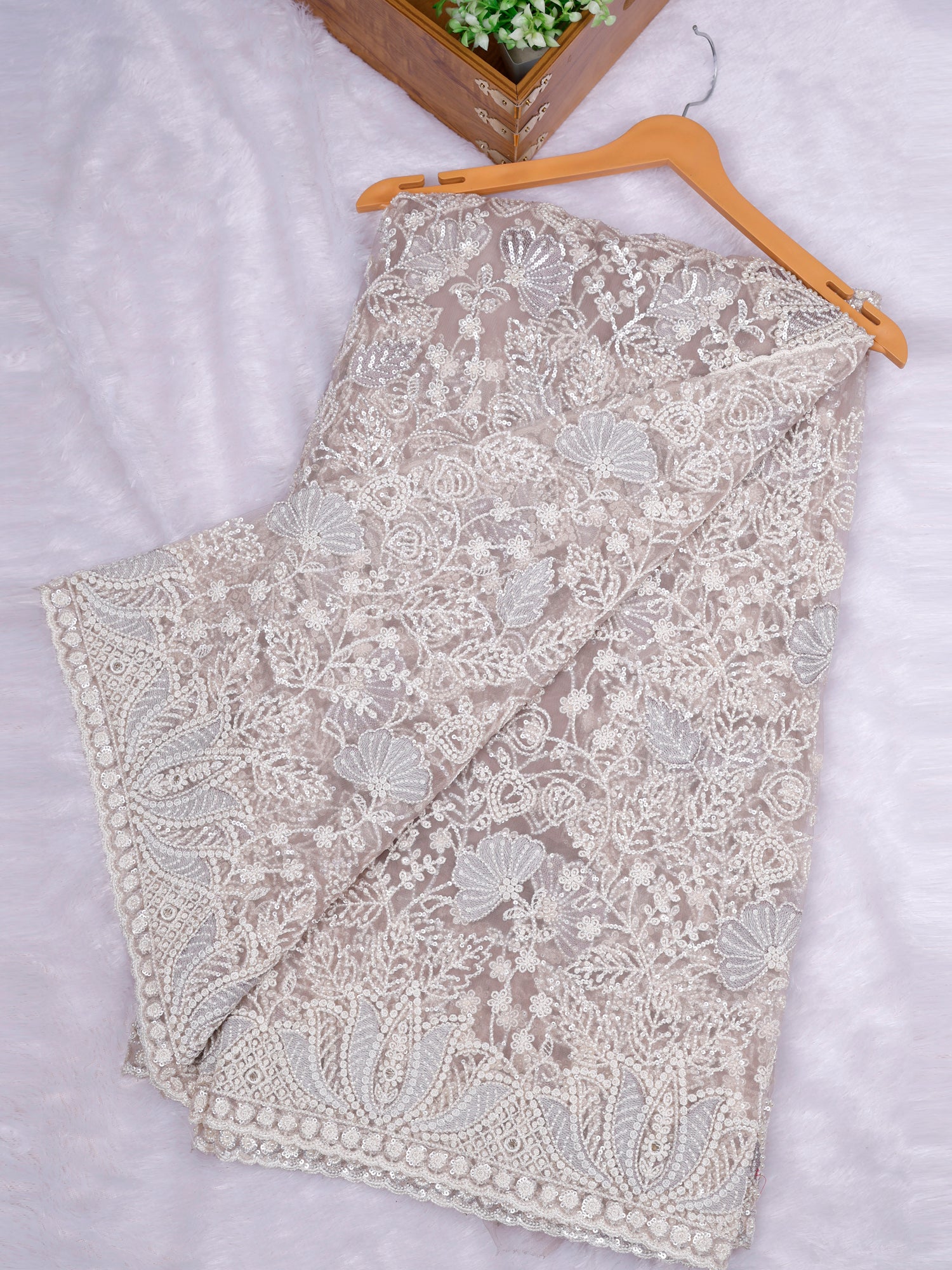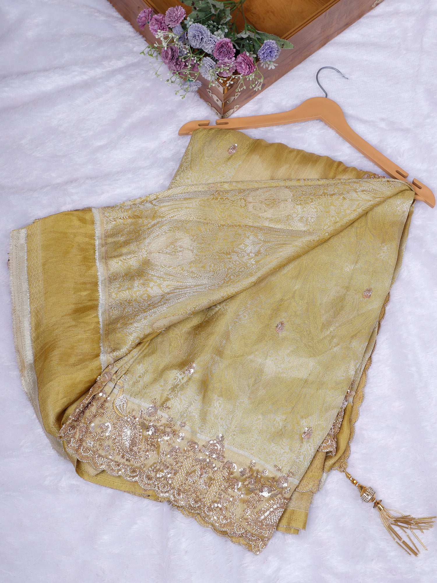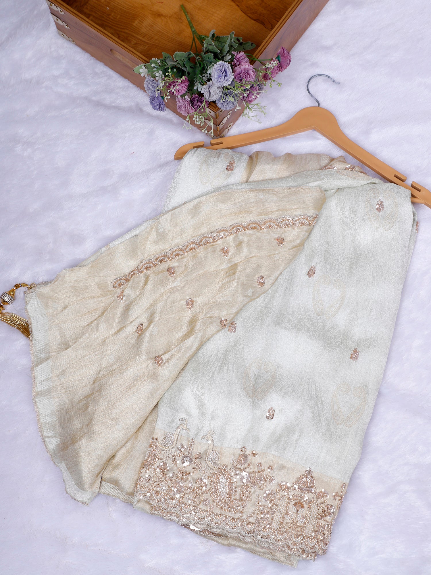 Biscuit Champagne Glow Designer Saree