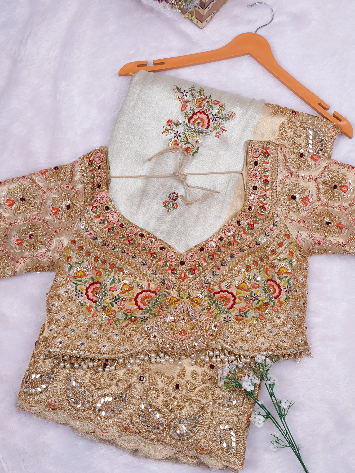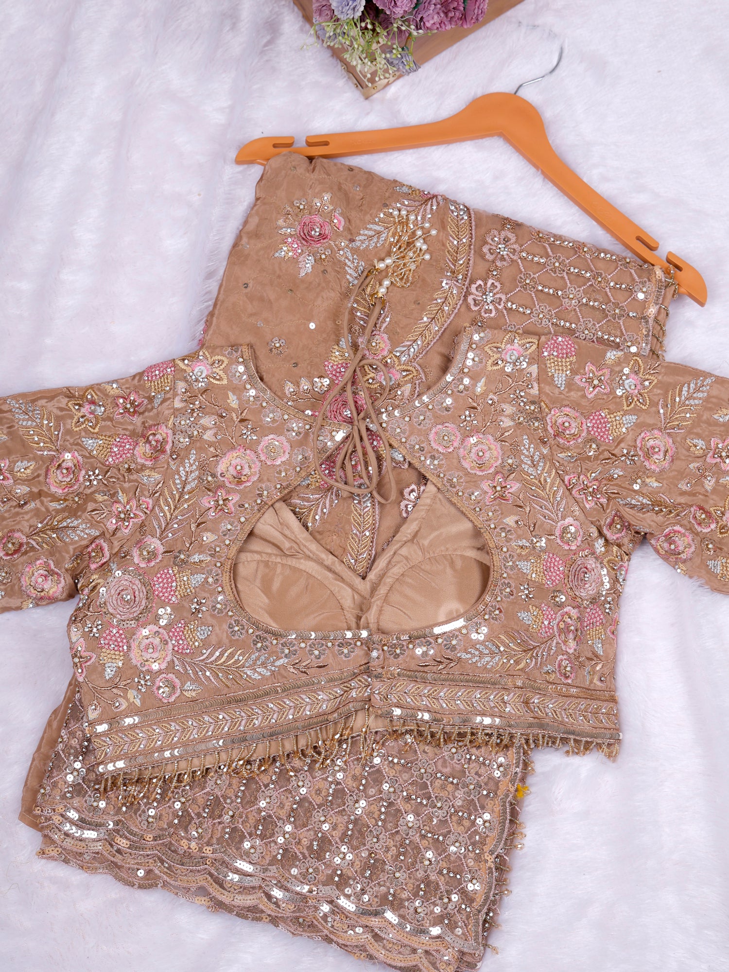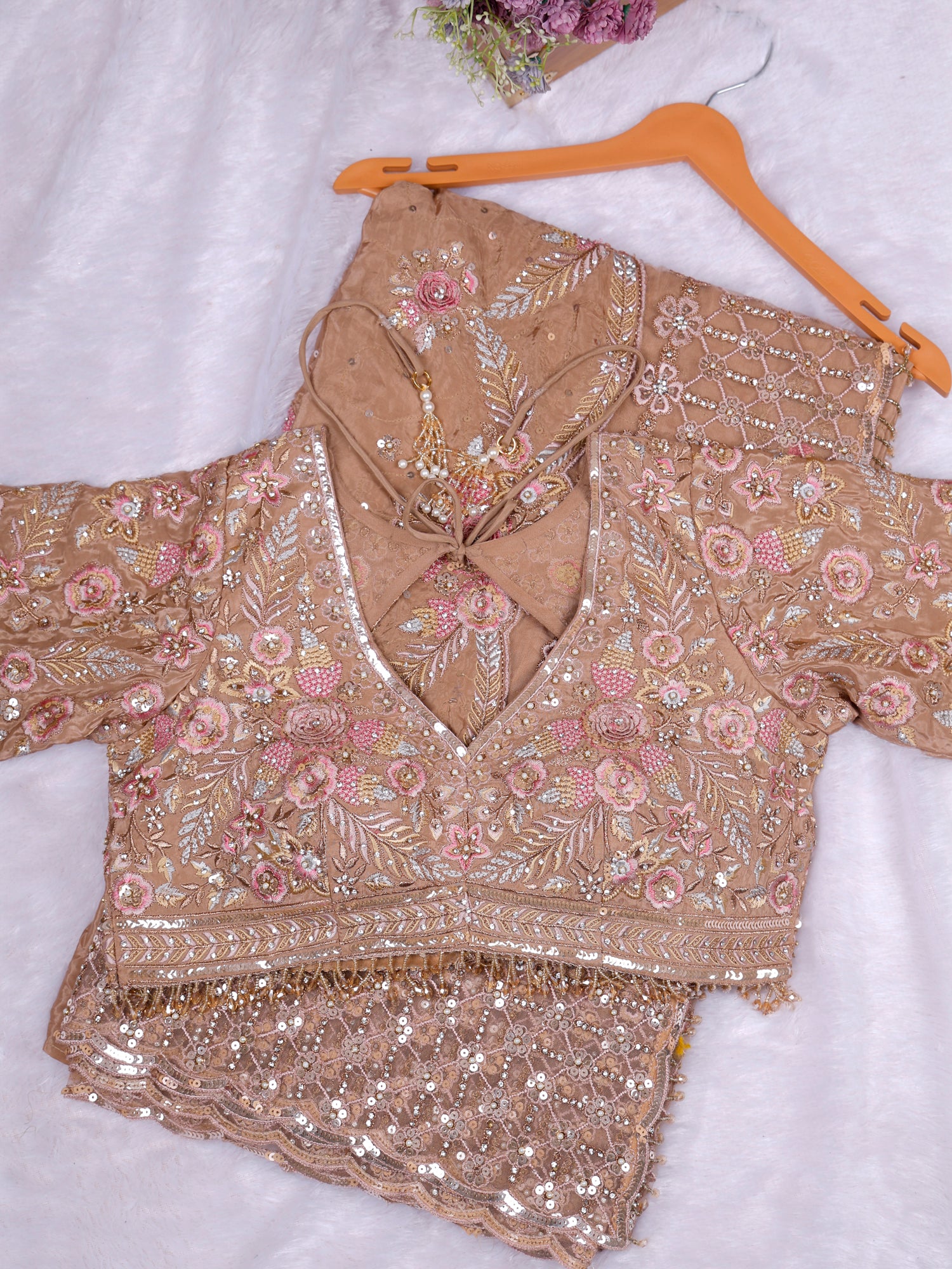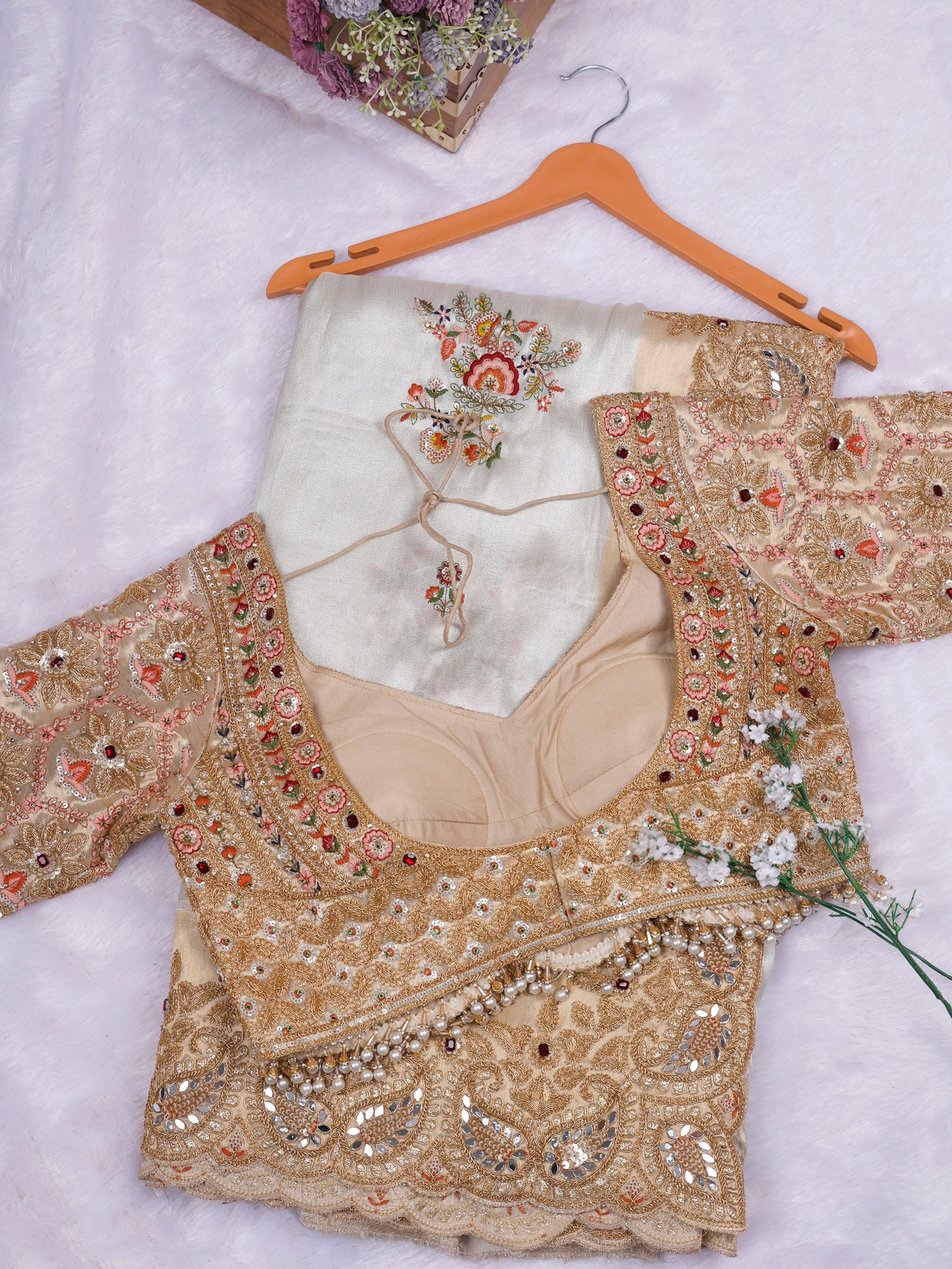 Biscuit Champagne Glow Designer Saree