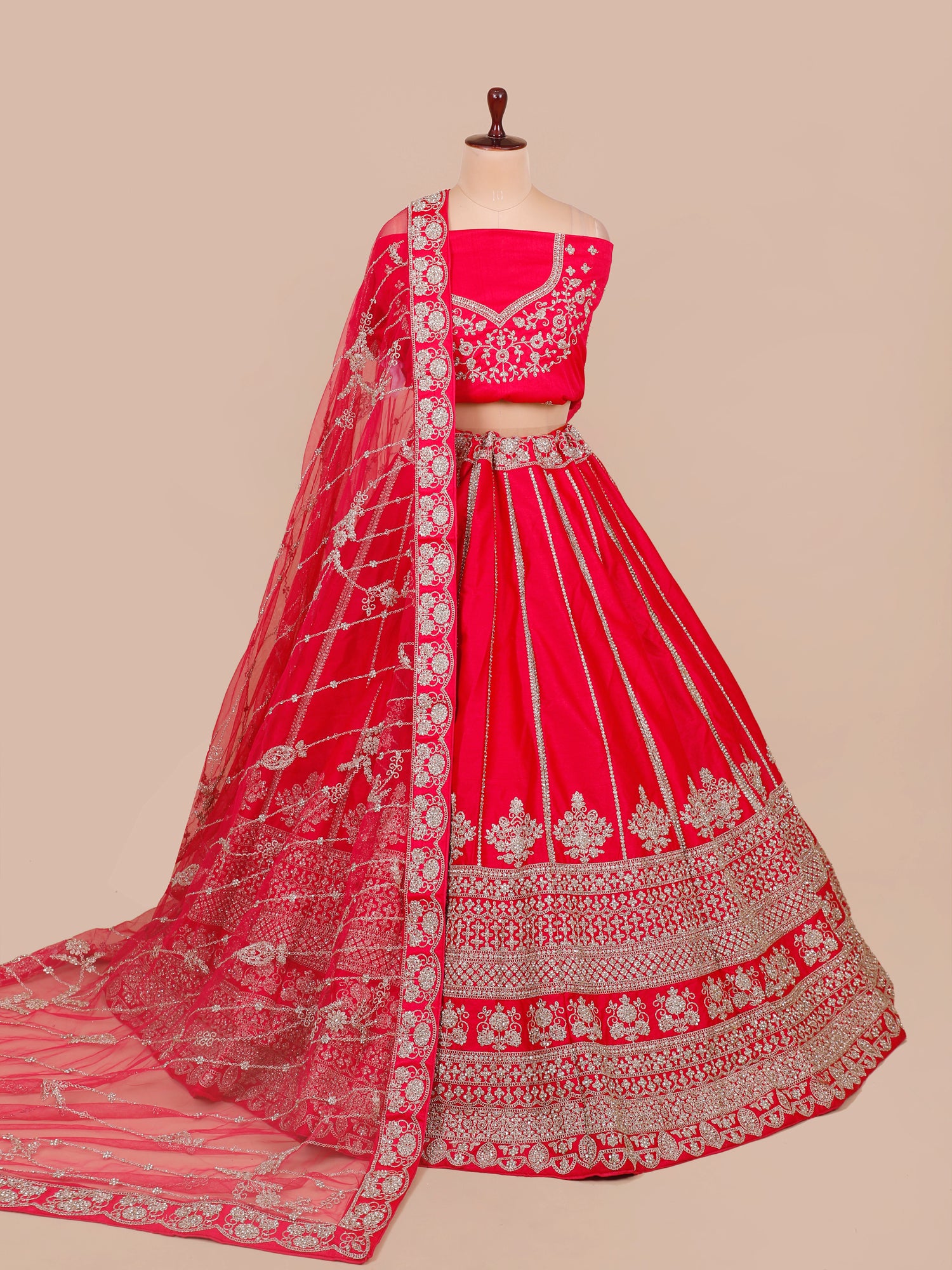 Rani Sultana Luxe Raw Silk Wedding Lehenga with Heavy Diamond Zarkan Embroidery