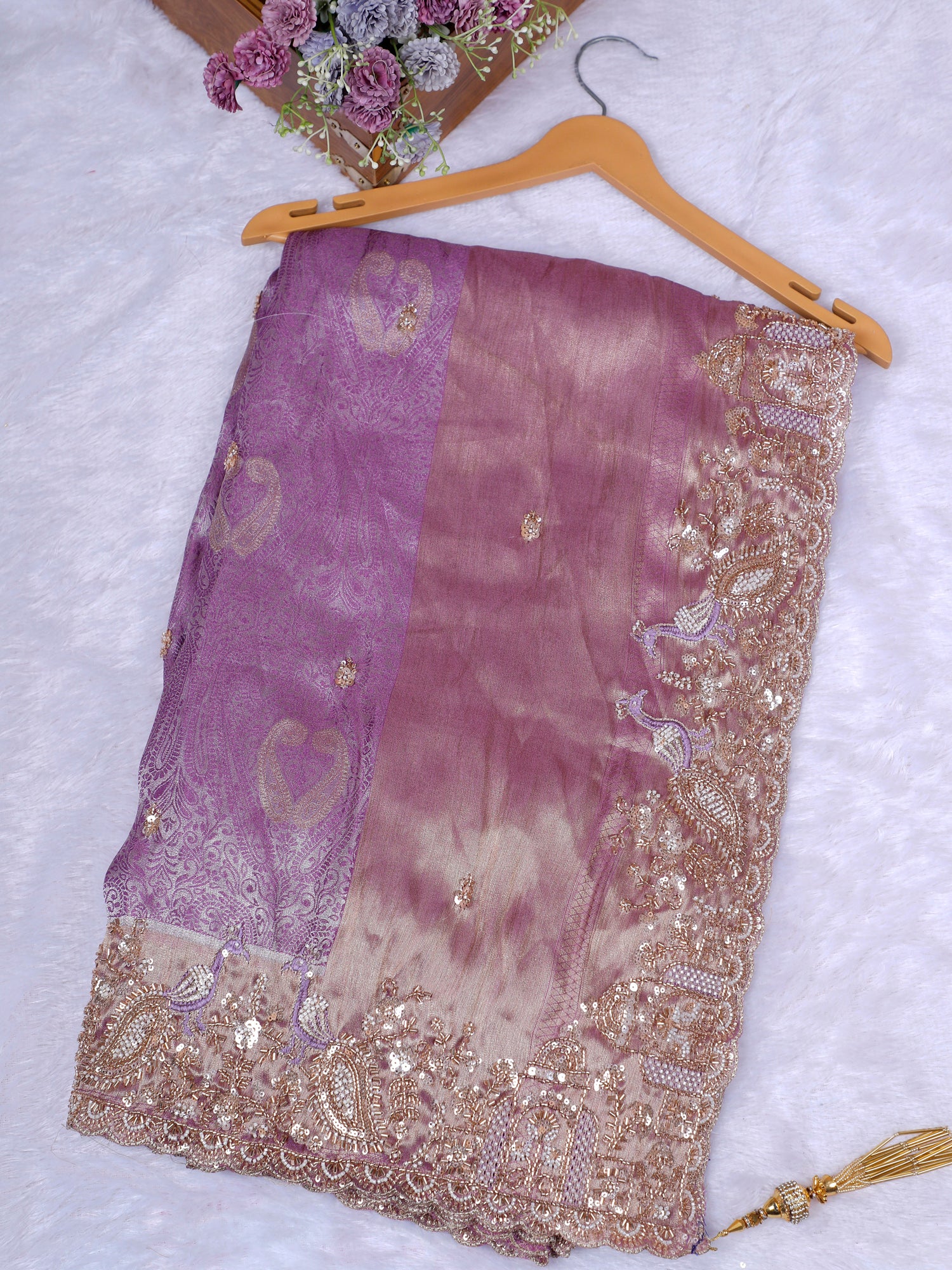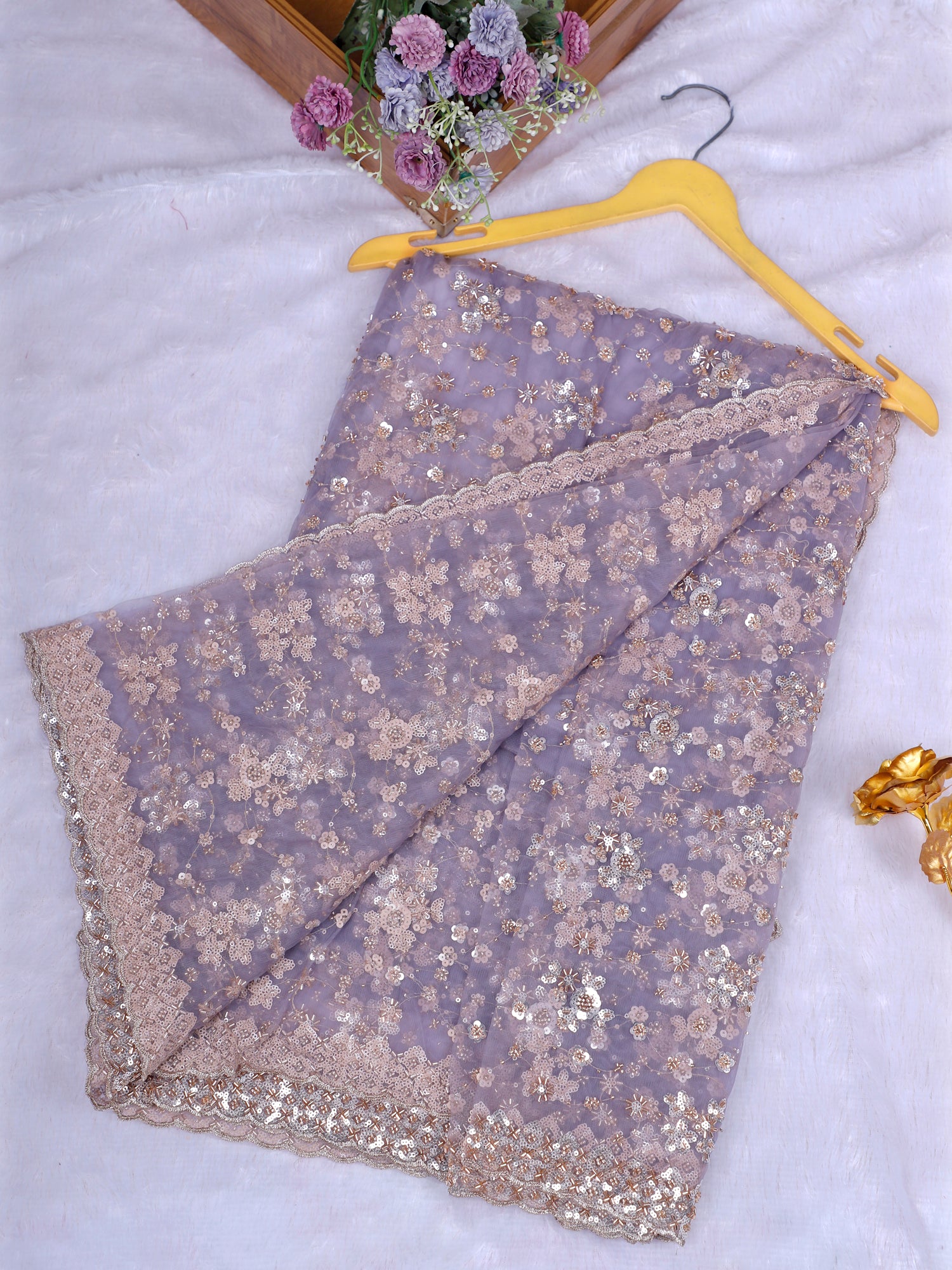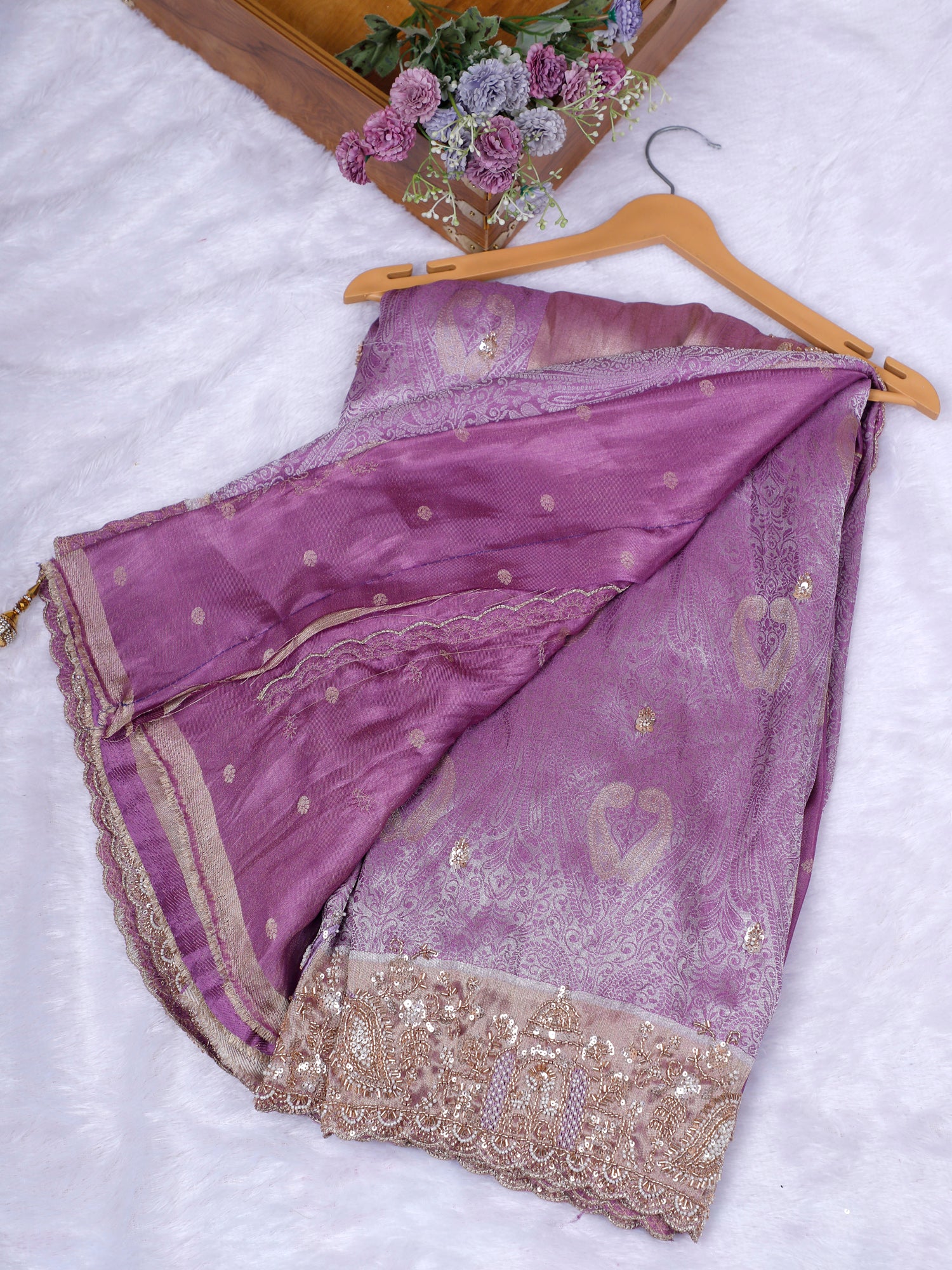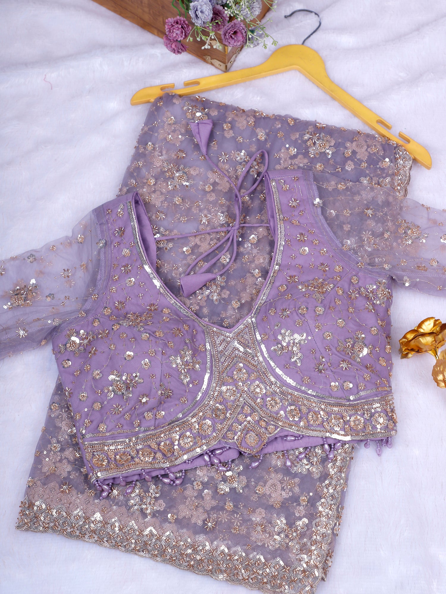 Serene Lavender Diamond Veil Saree