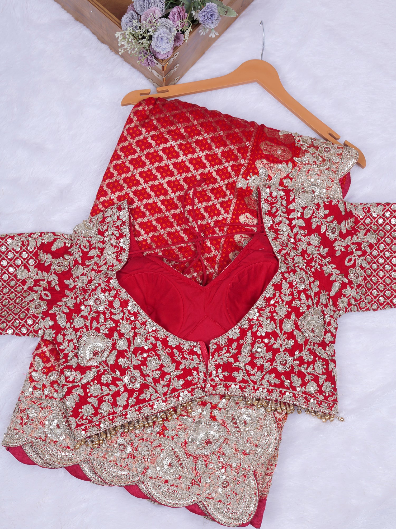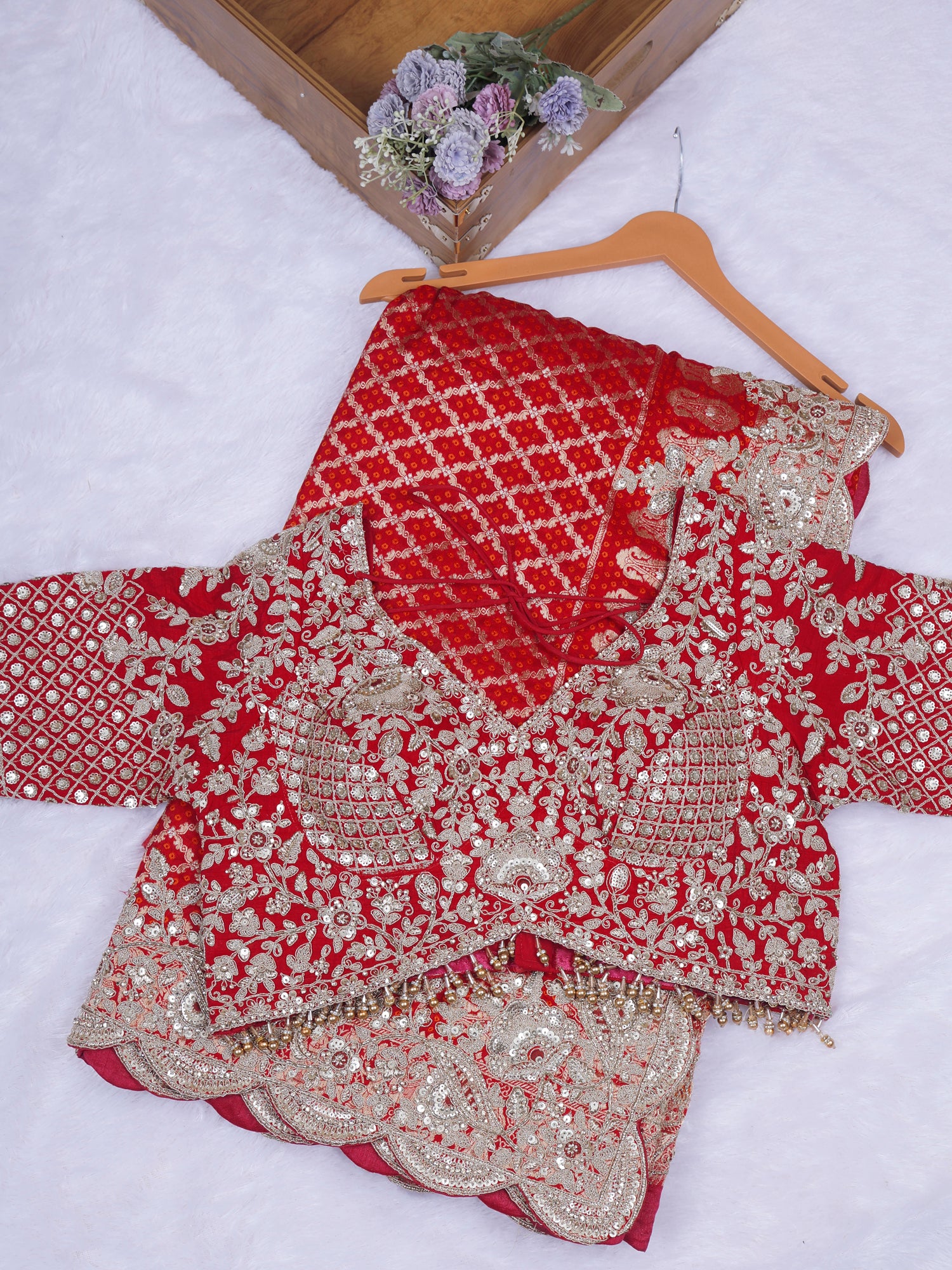 Red Noor-E-Ruby Chinon Lehenga