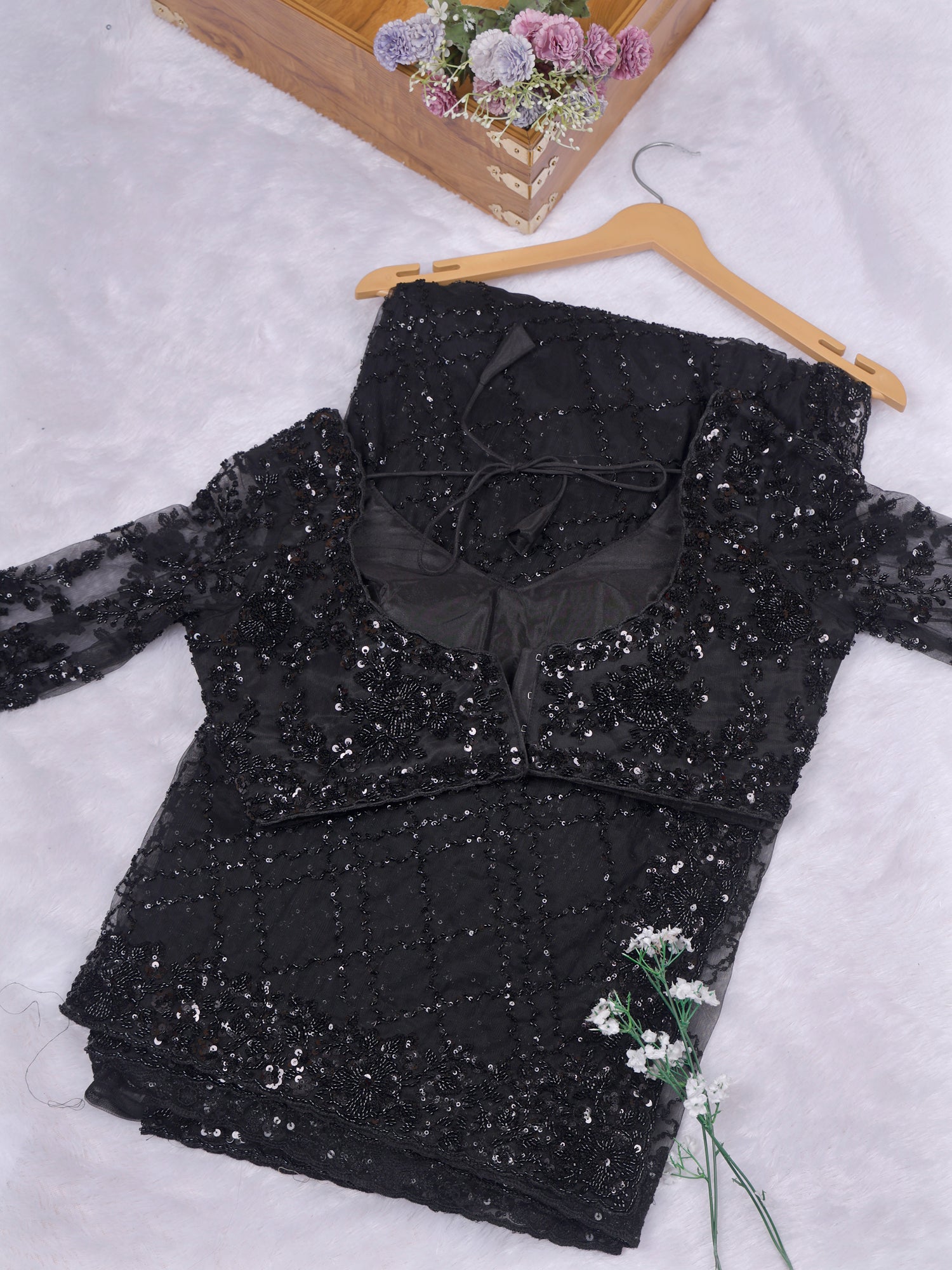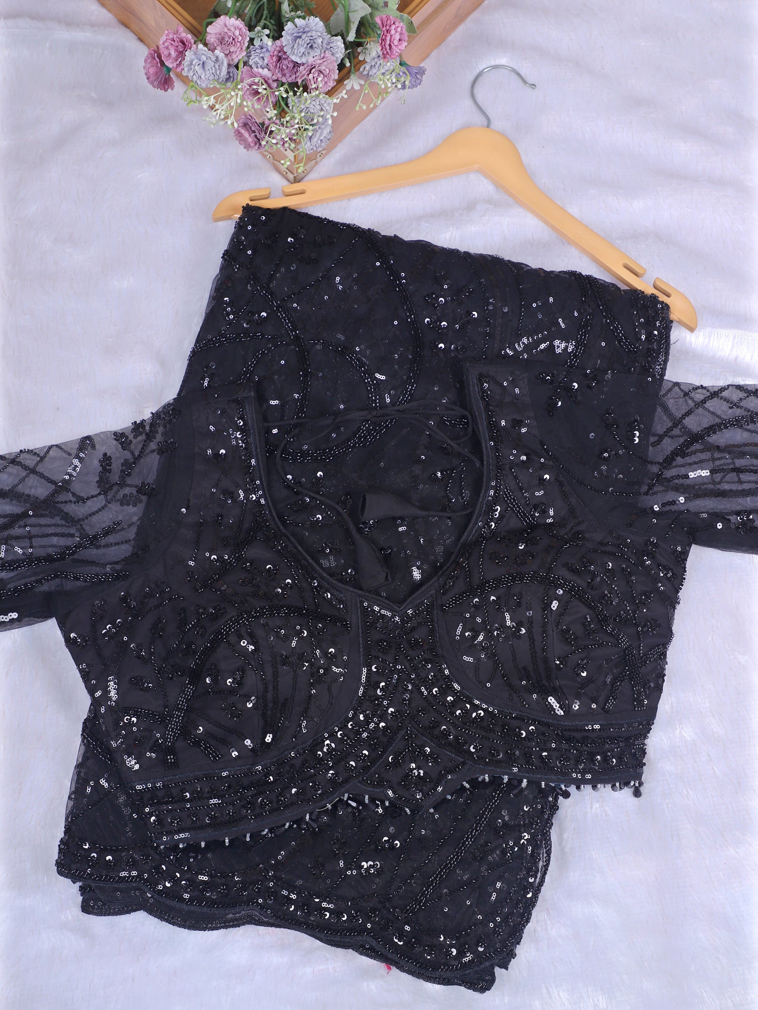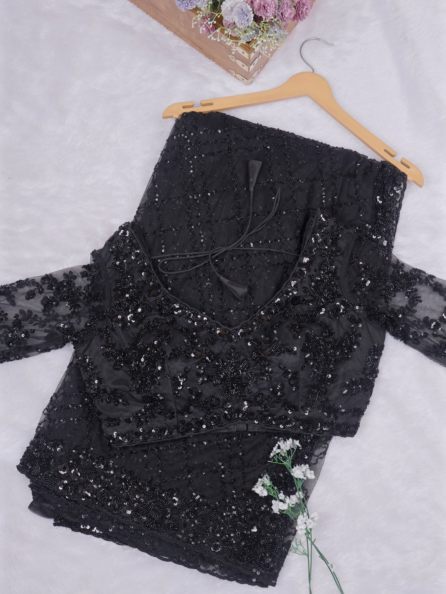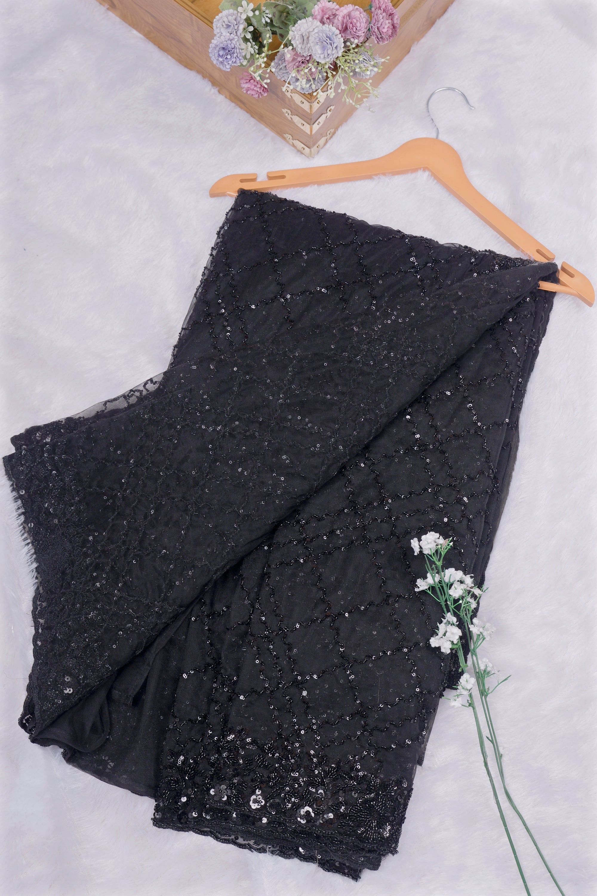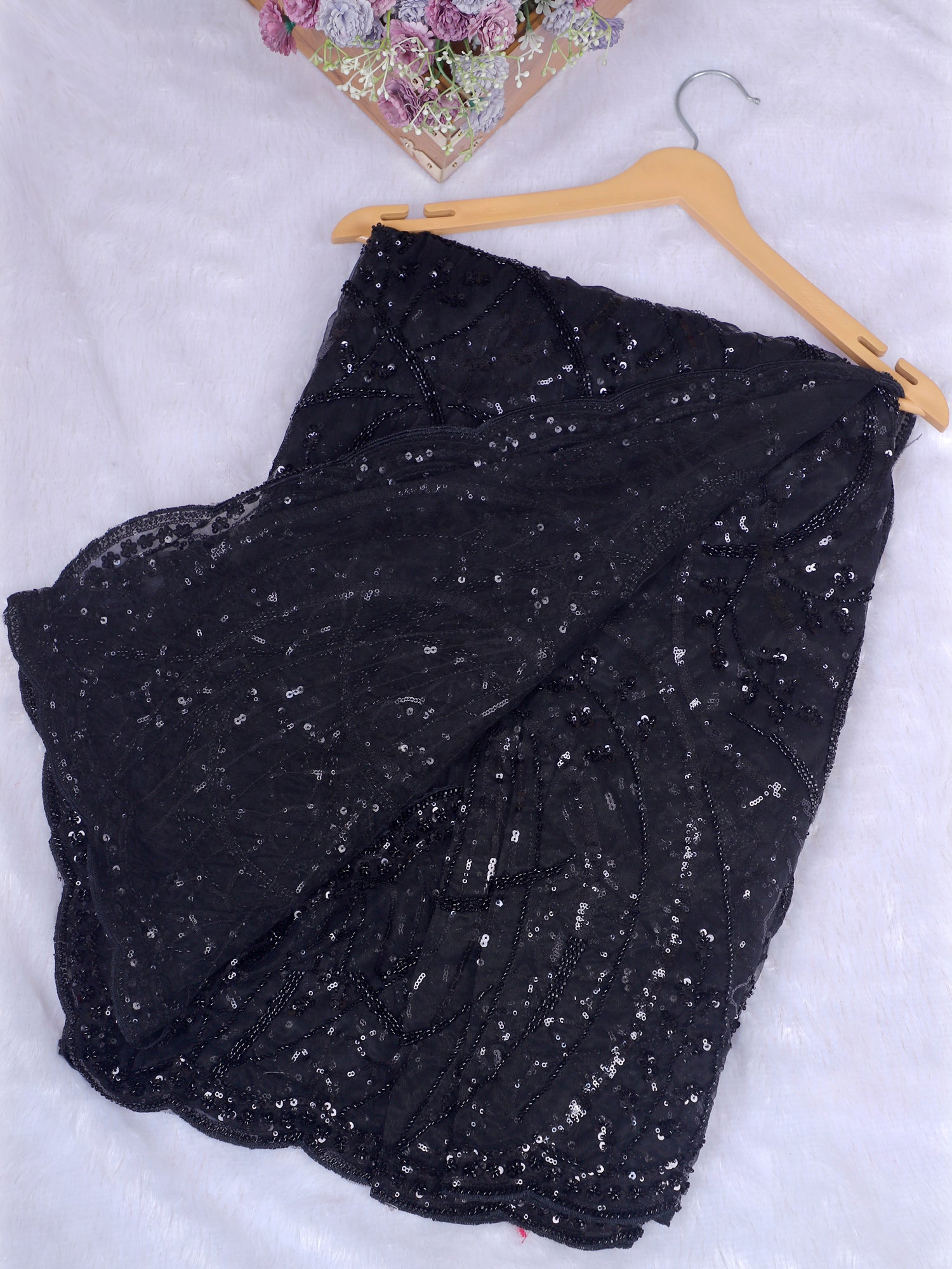 Siyah Jahanara Sequin Embellished Net Saree