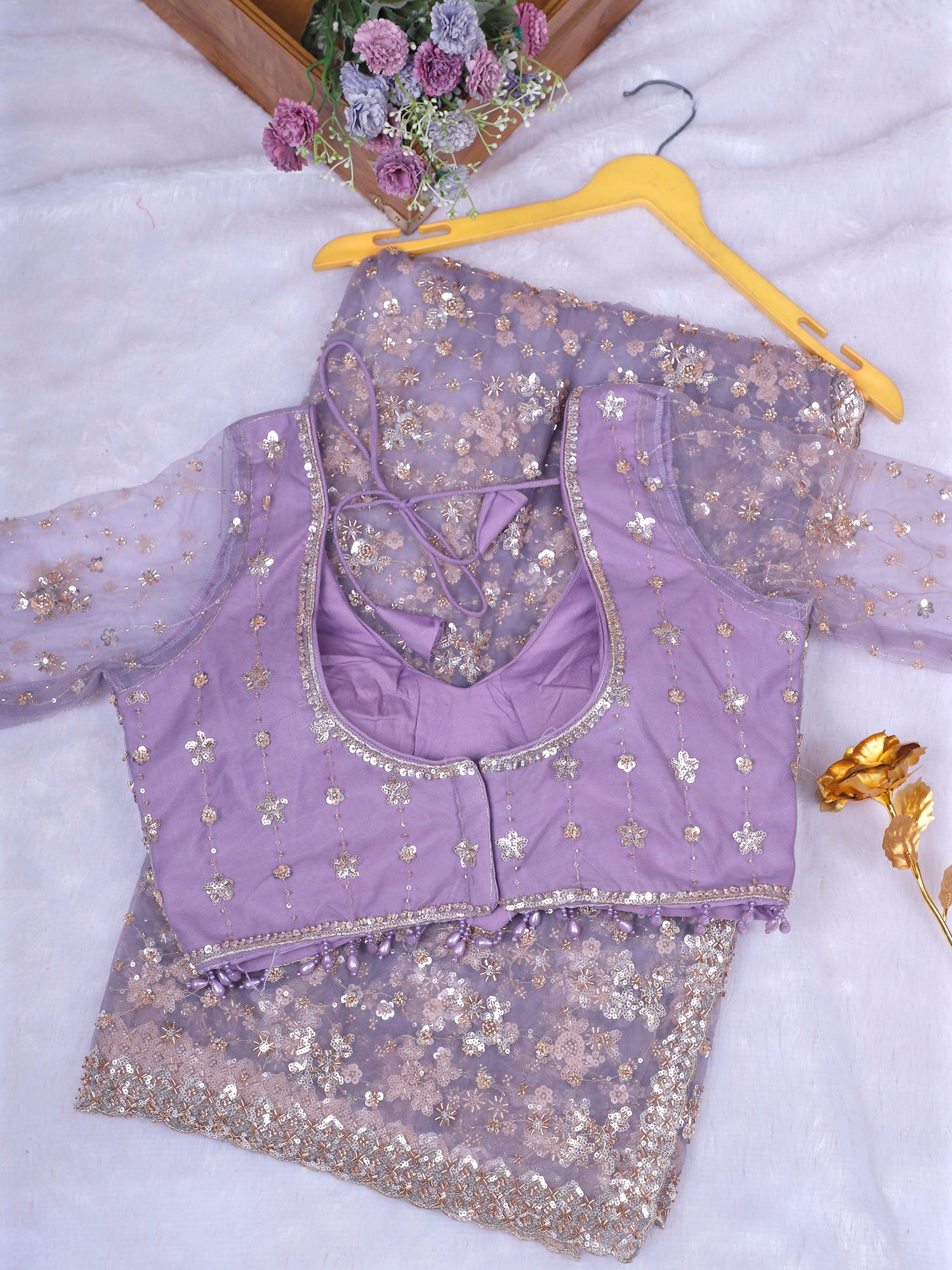 Royal Orchid Glow Net Lehenga with Beads