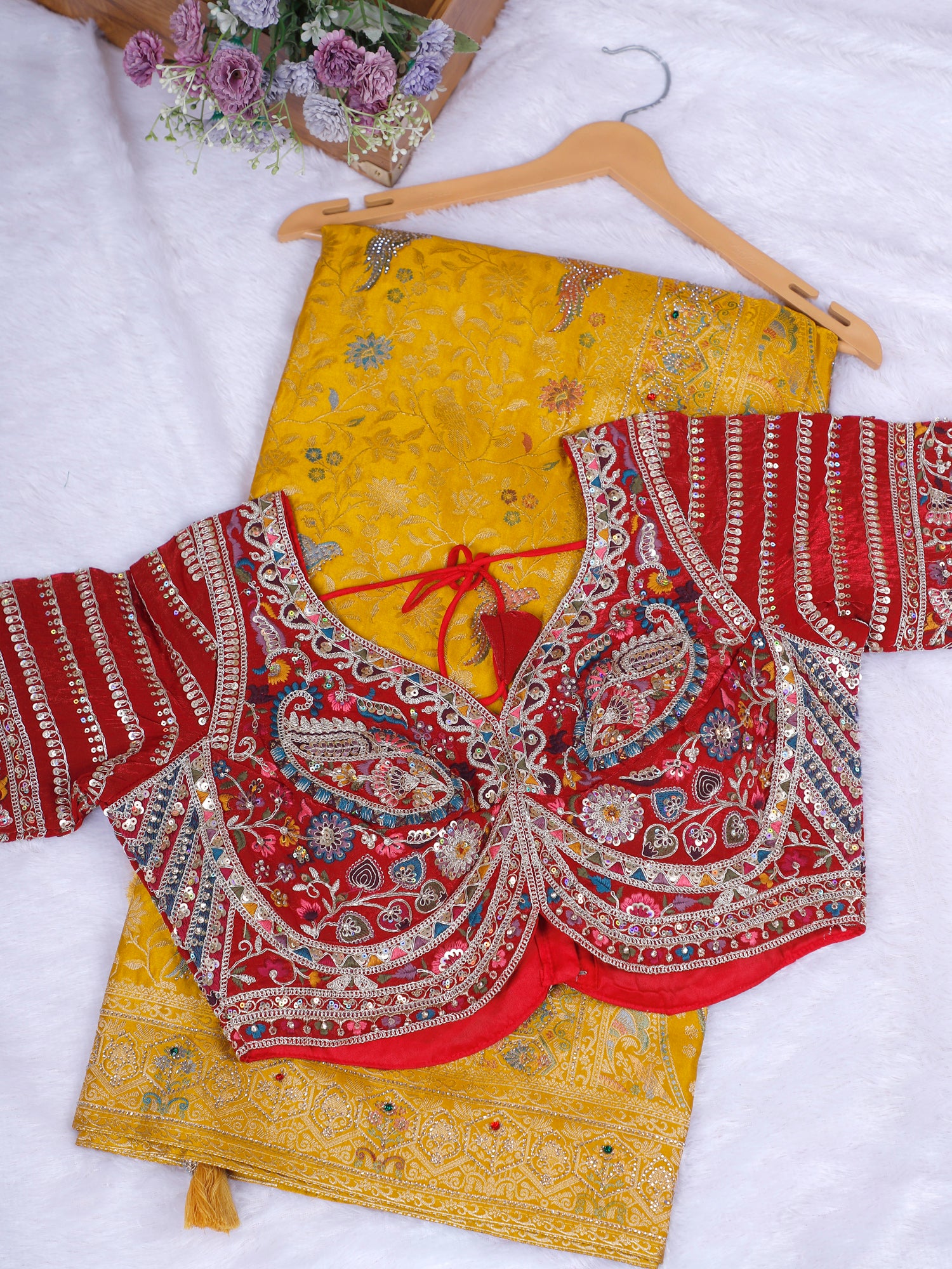 Celestial Bloom Luxury Double Shade Unstitched Silk Saree
