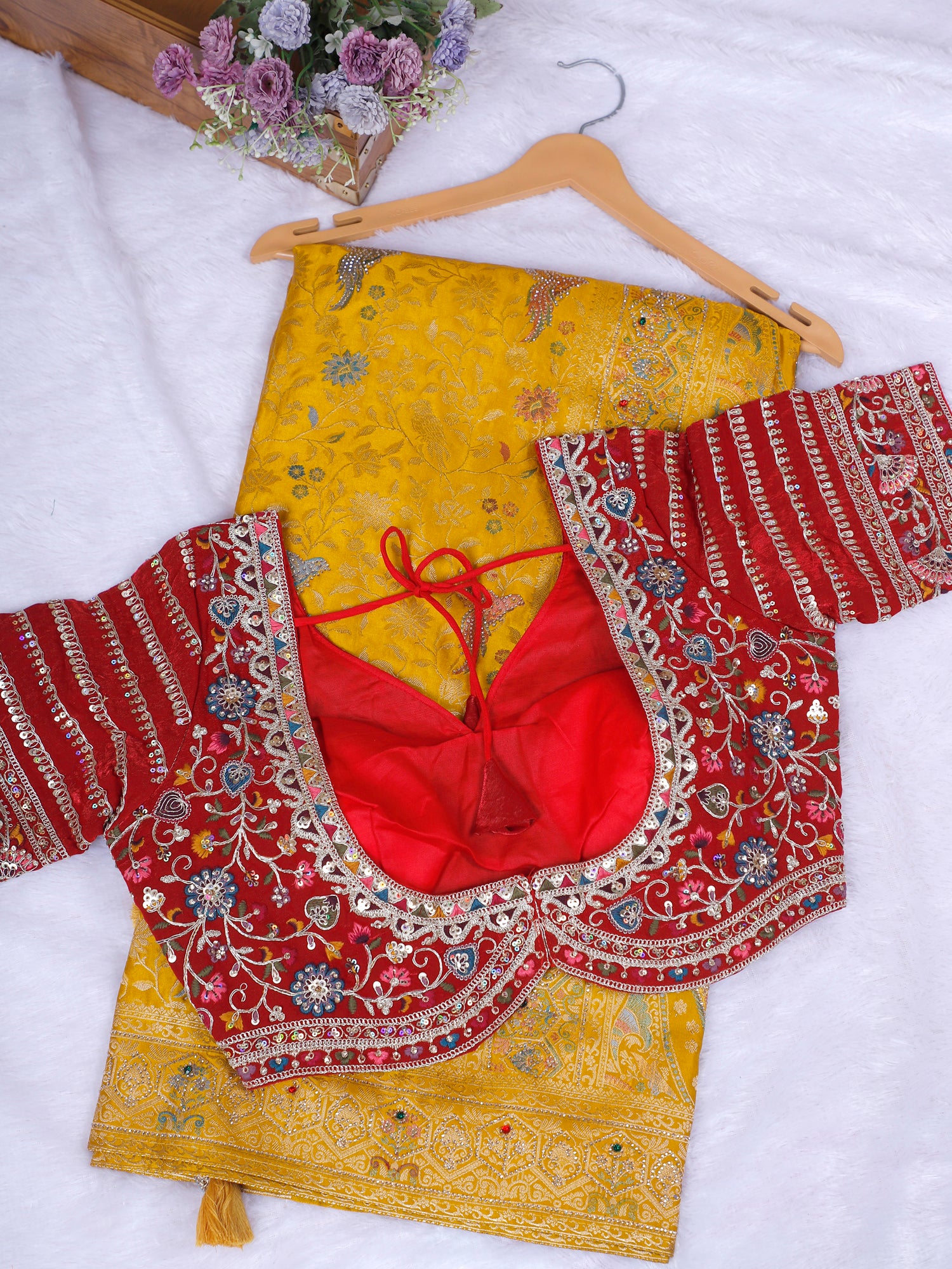 Red-Yellow Surya Jyoti Silk-Mousse Saree