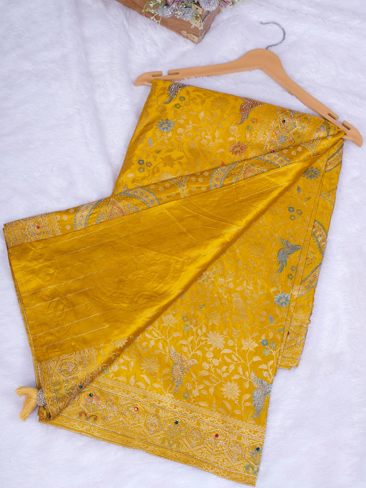 Saffron Royale Designer Mustard Silk Unstitched Saree