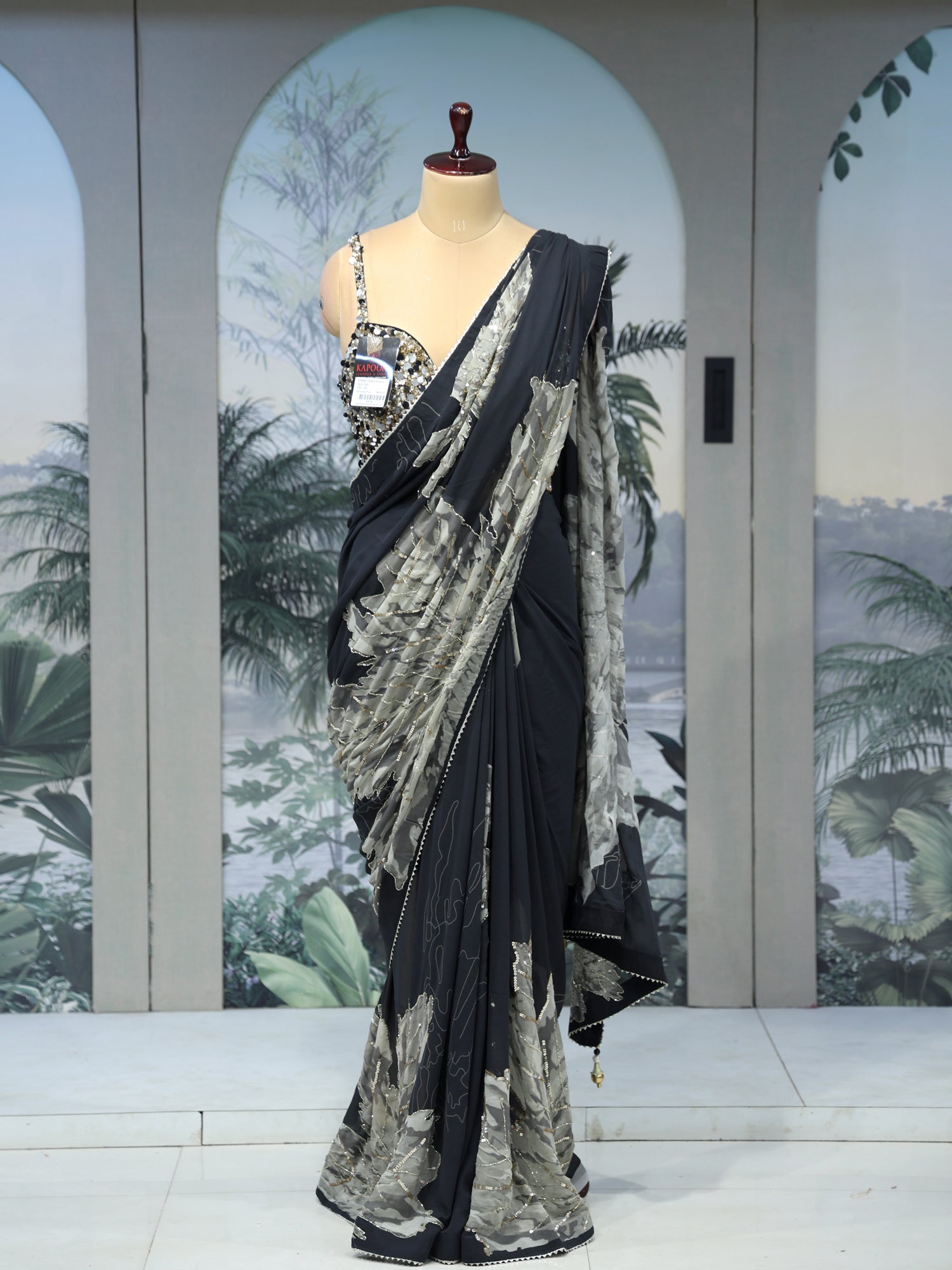 Black Diamond Twilight Sequin Edge Luxury Saree