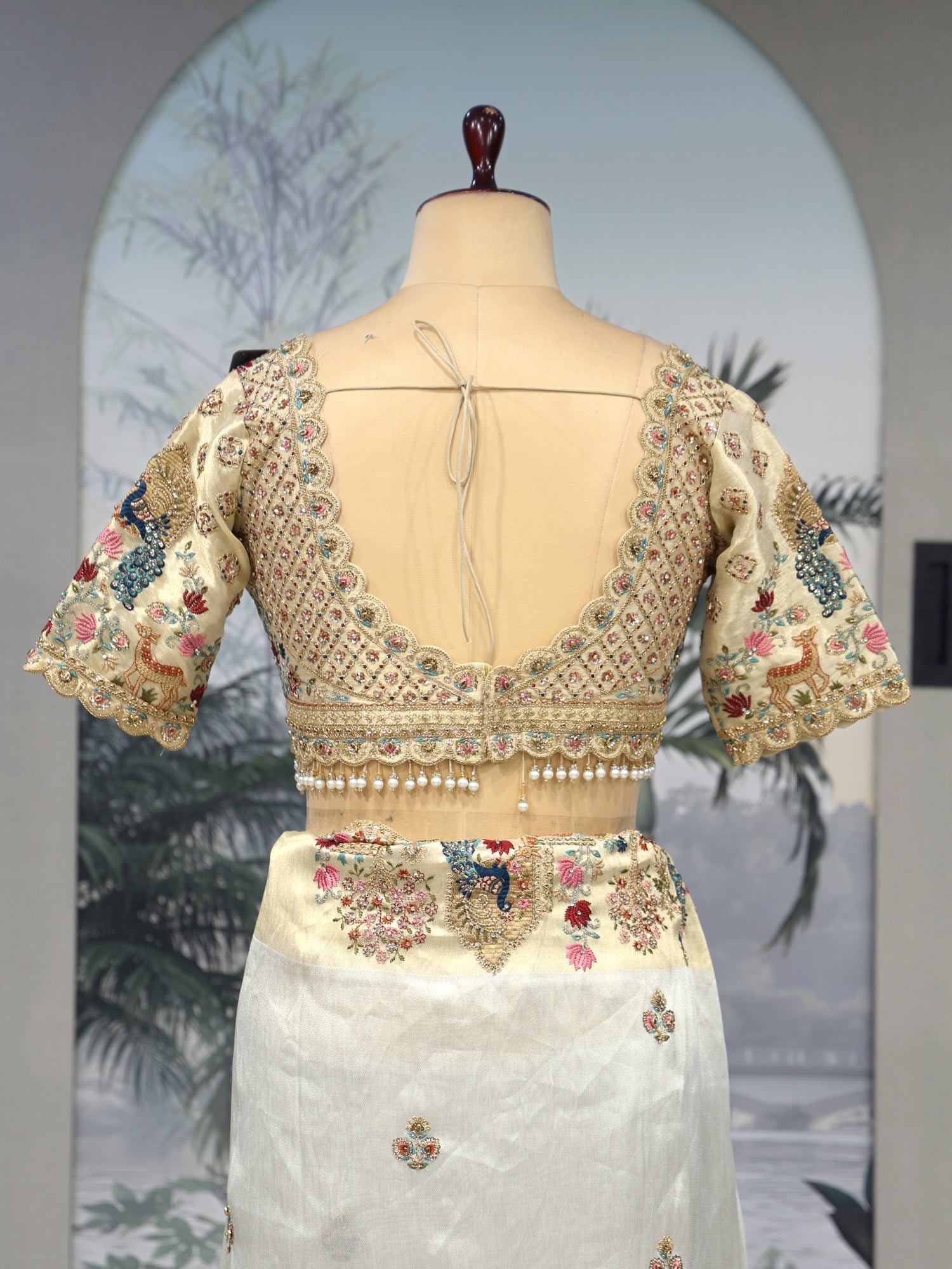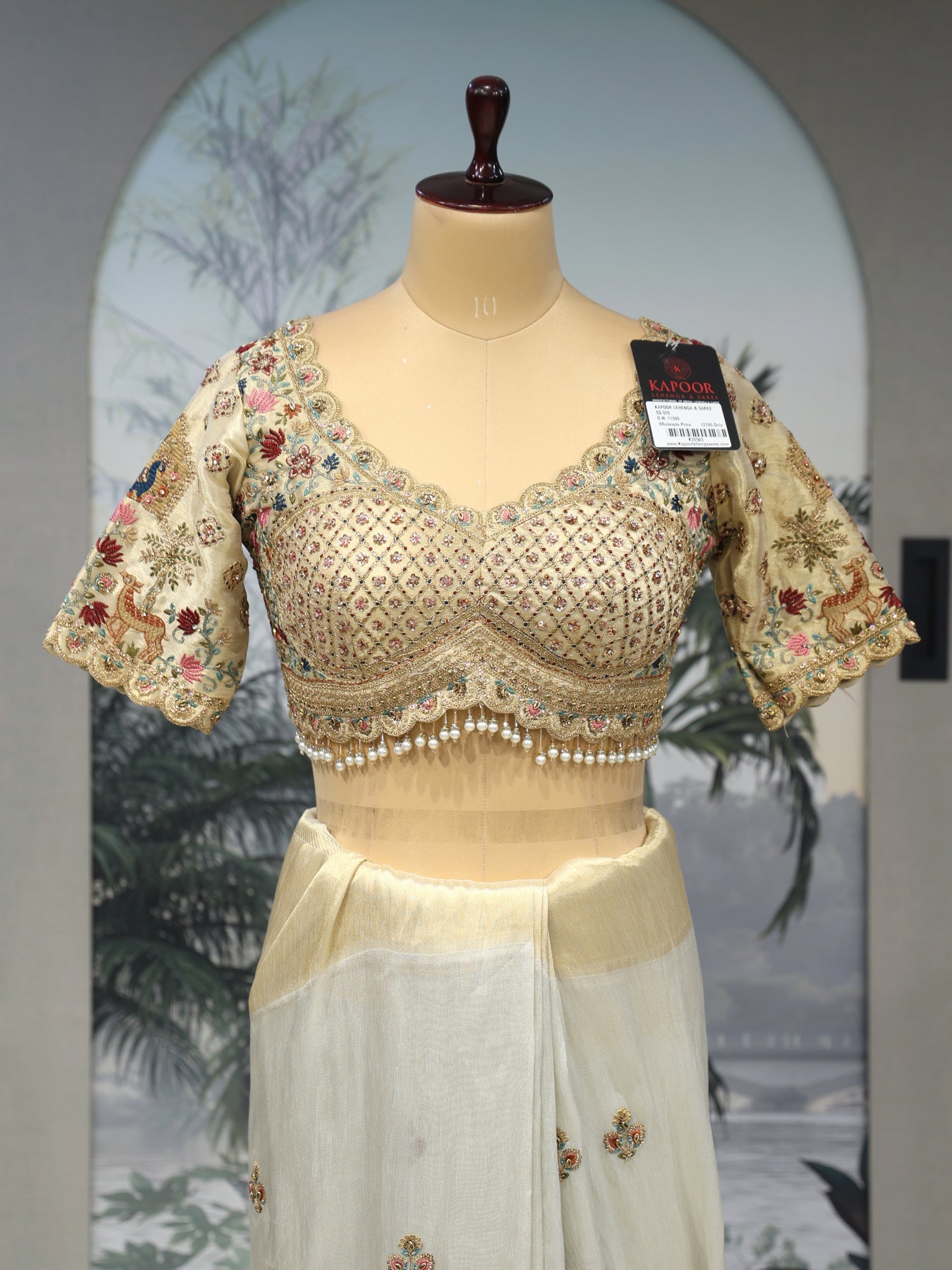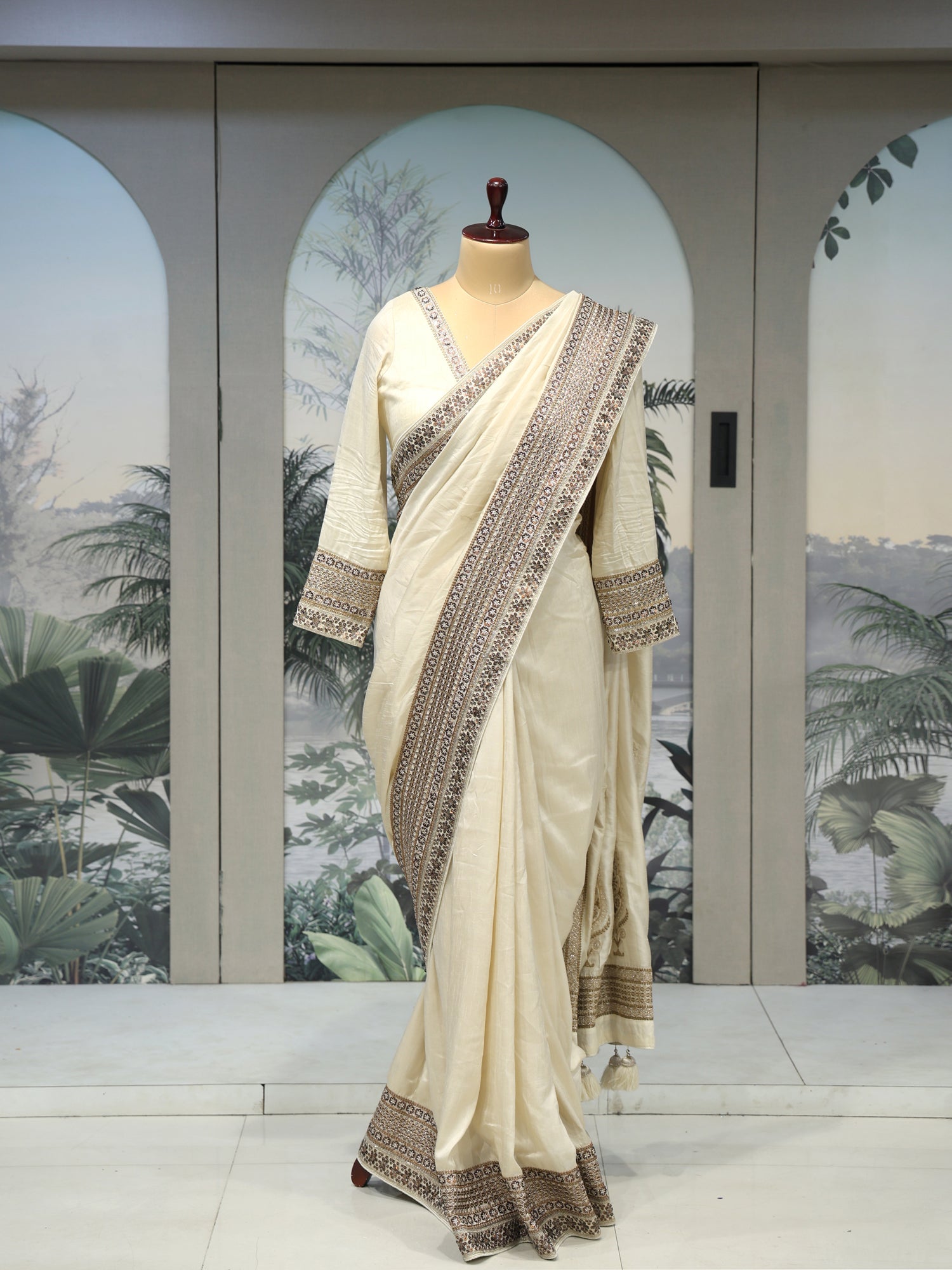 Beige Imperial Glow Jarkan Threadwork Luxury Saree