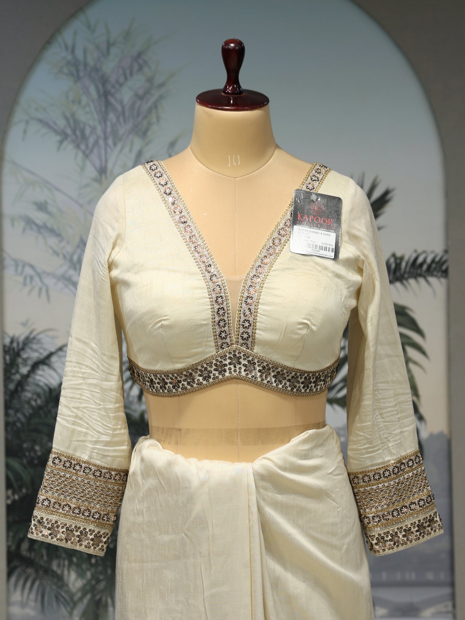 Pearl Whisper Hand-Threaded Machine Work Saree