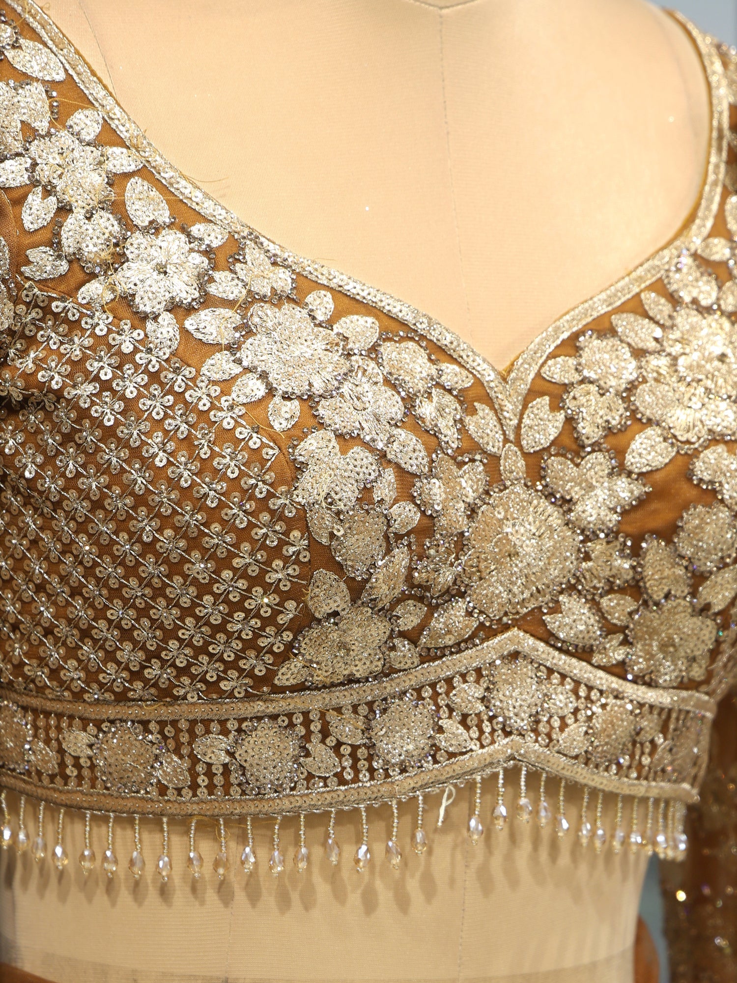 Mustard Royale Net Lehenga with Jarkan Diamond