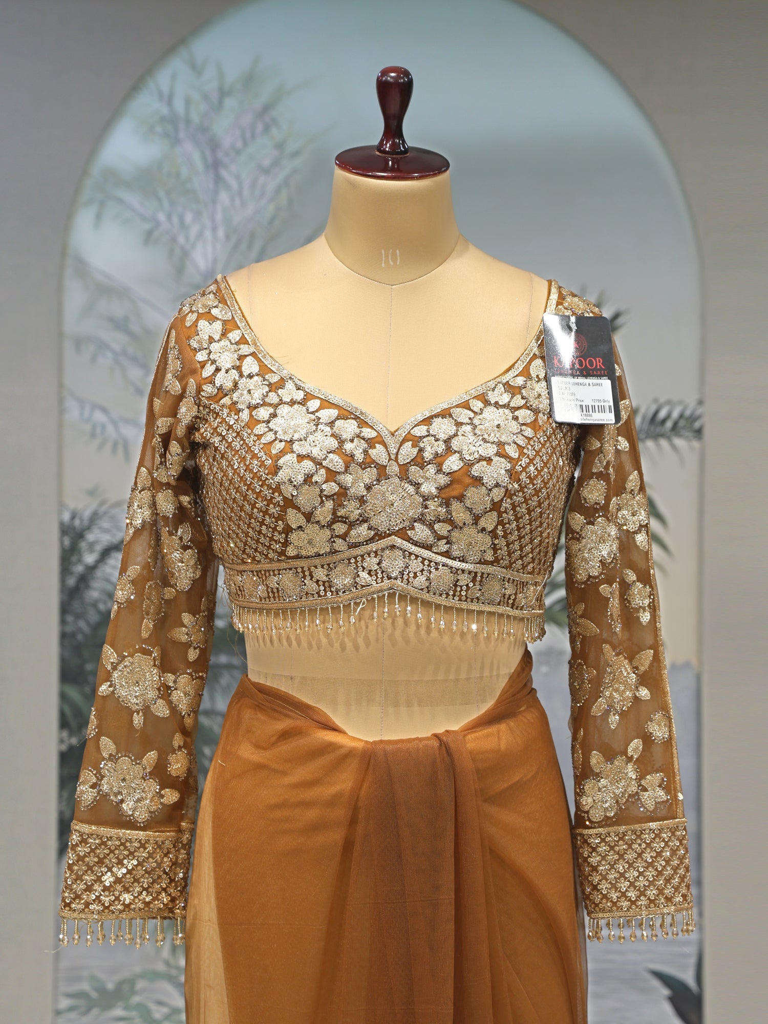 Rust Brown Luxury Net Saree with Sequence & Diamond Work