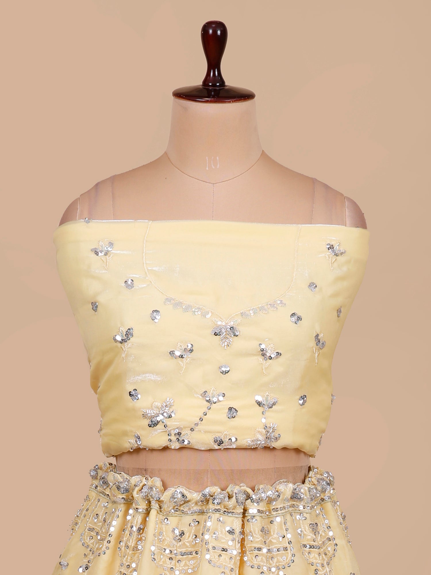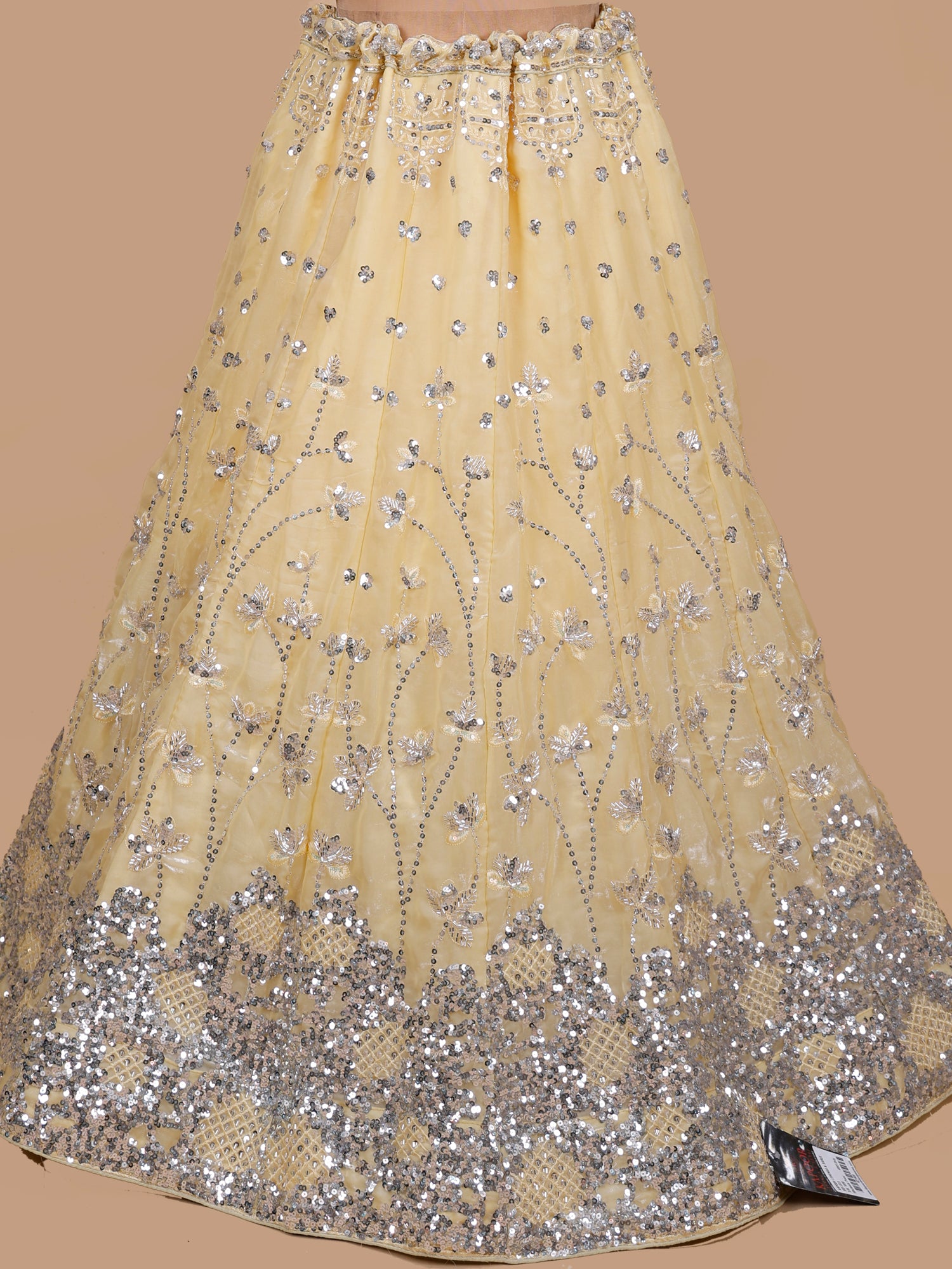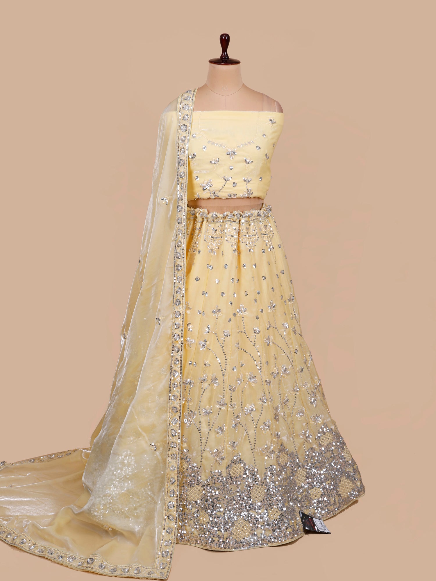 Yellow Shimmer Beads Handwork Designer Lehenga