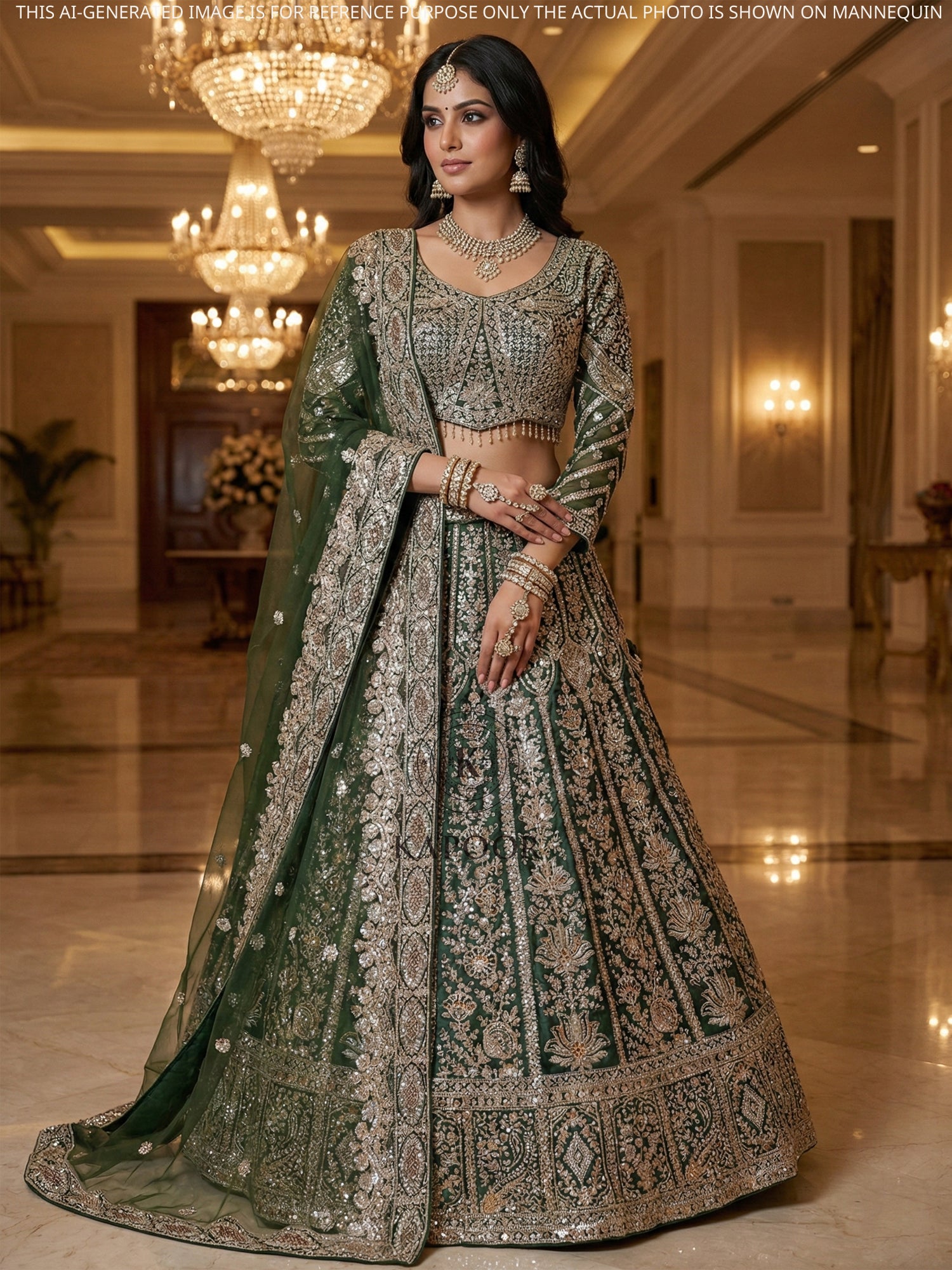 Peacock Jewel Lehenga with Sequence & Jarkan Diamond