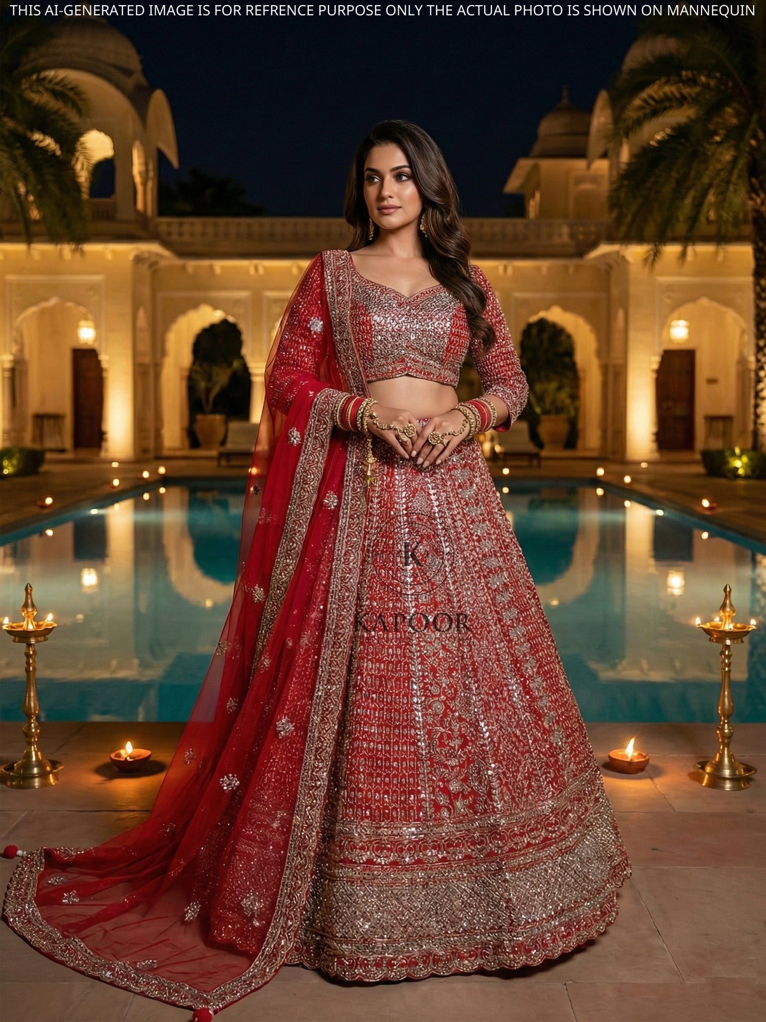RED Celestial Sparkle Premium Hand-Embroidered Lehenga