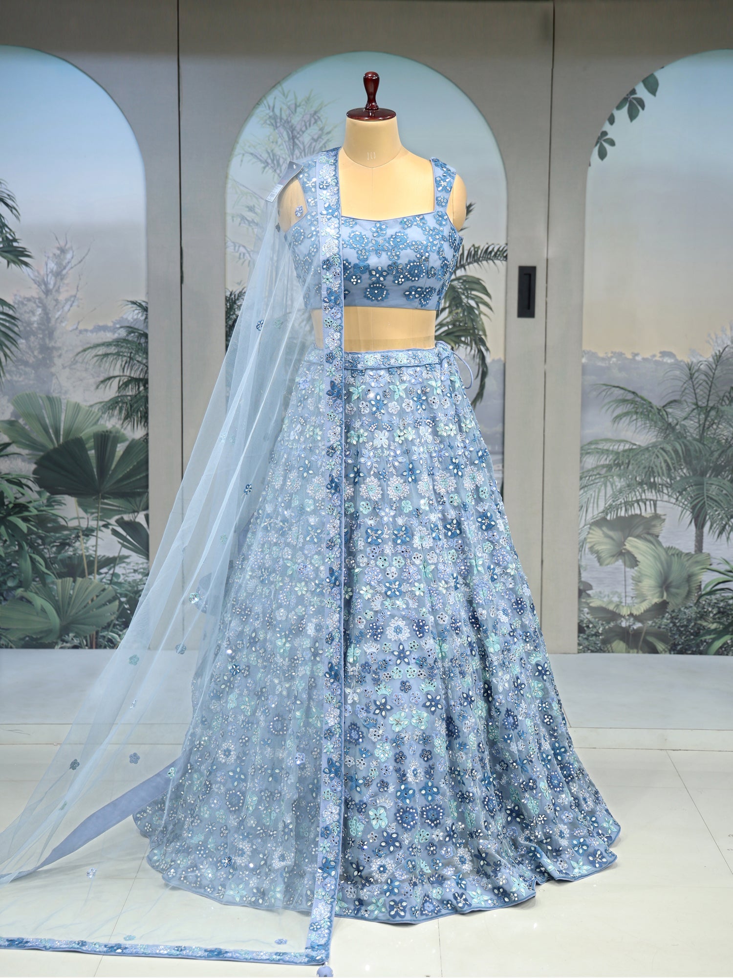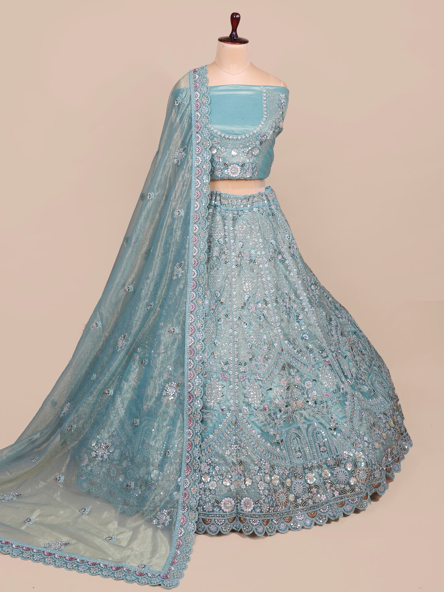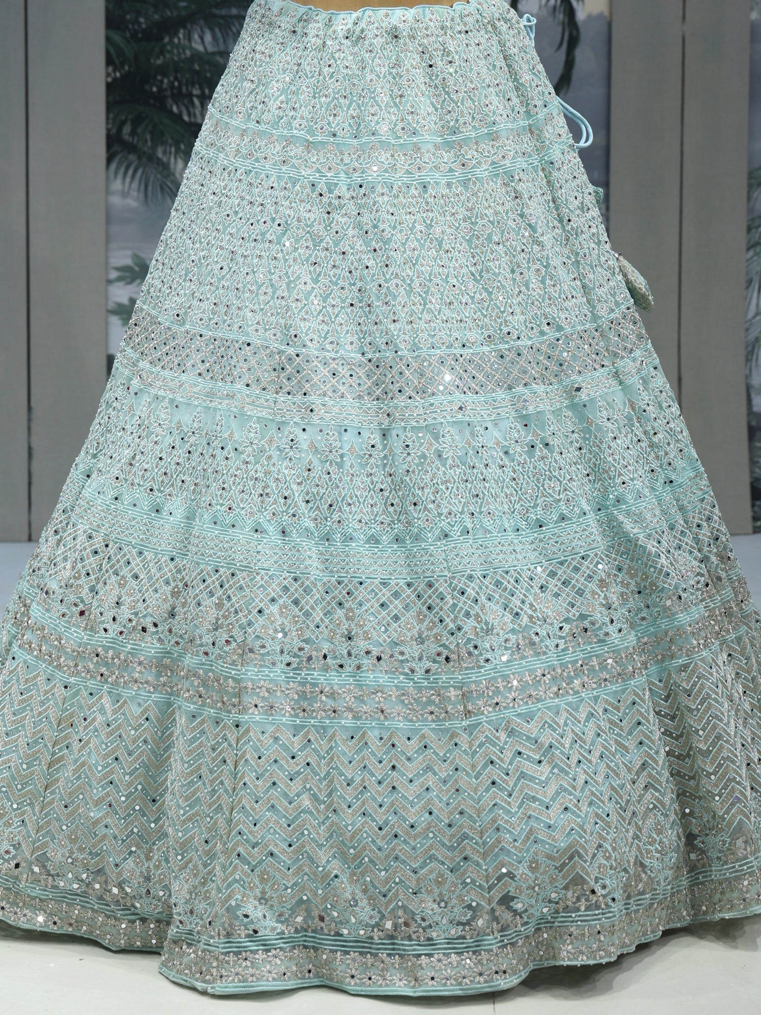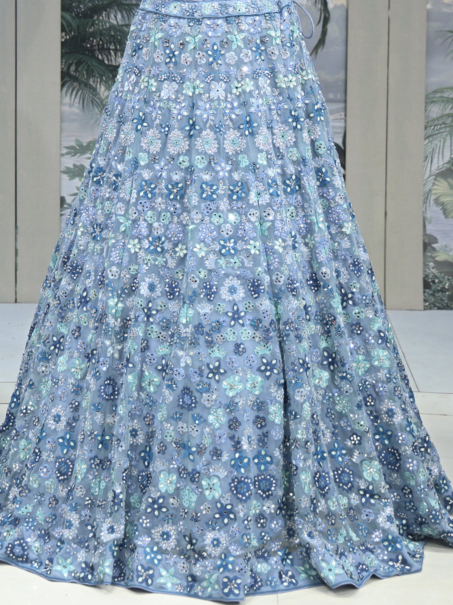 Ultimate Glam Look Sky Blue Sequin Mirror Lehenga