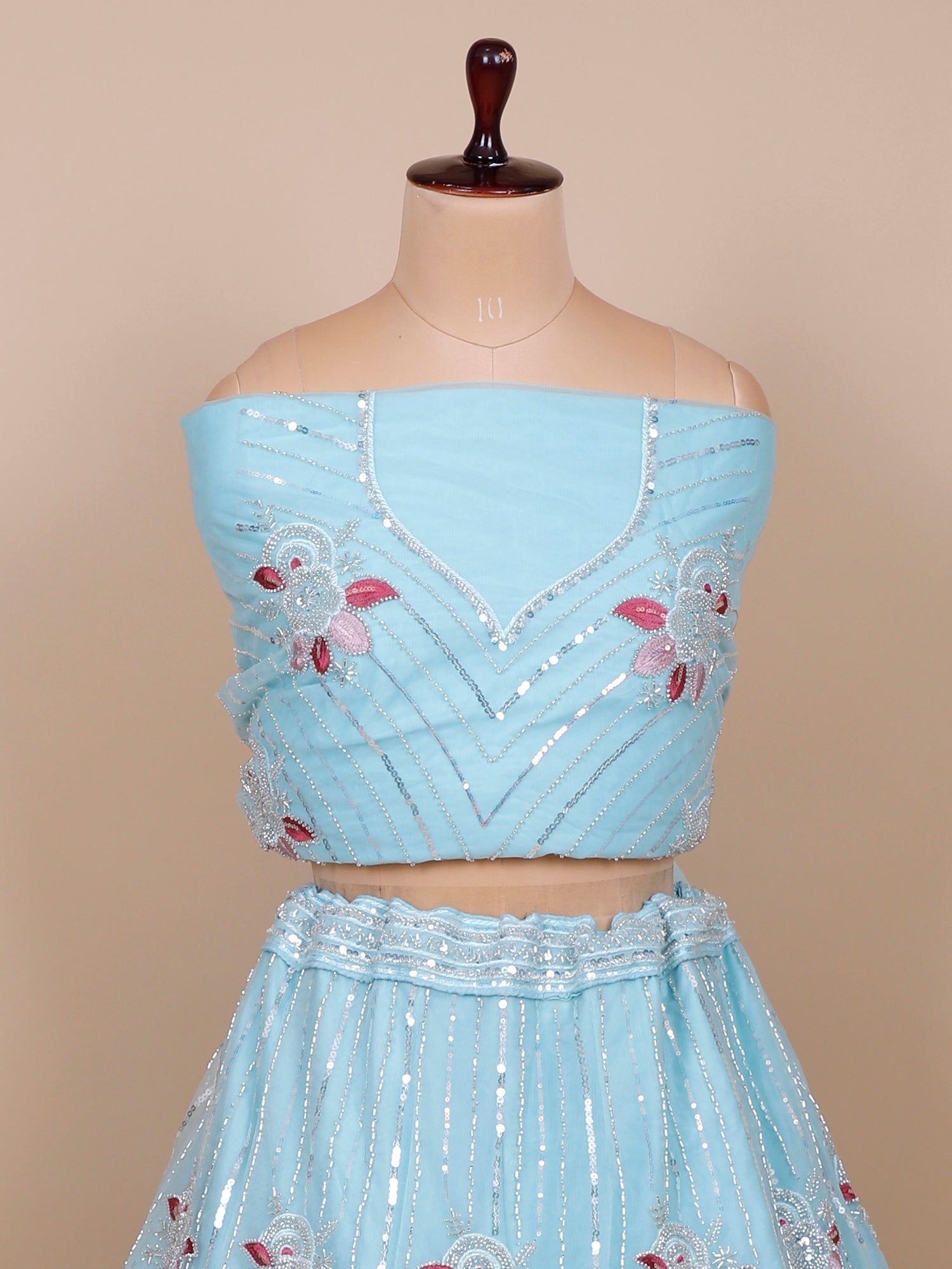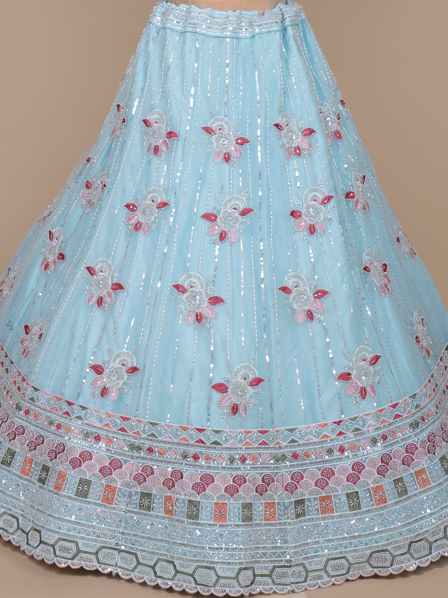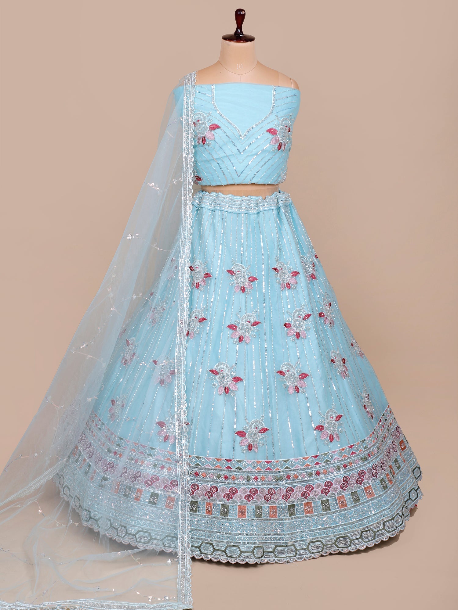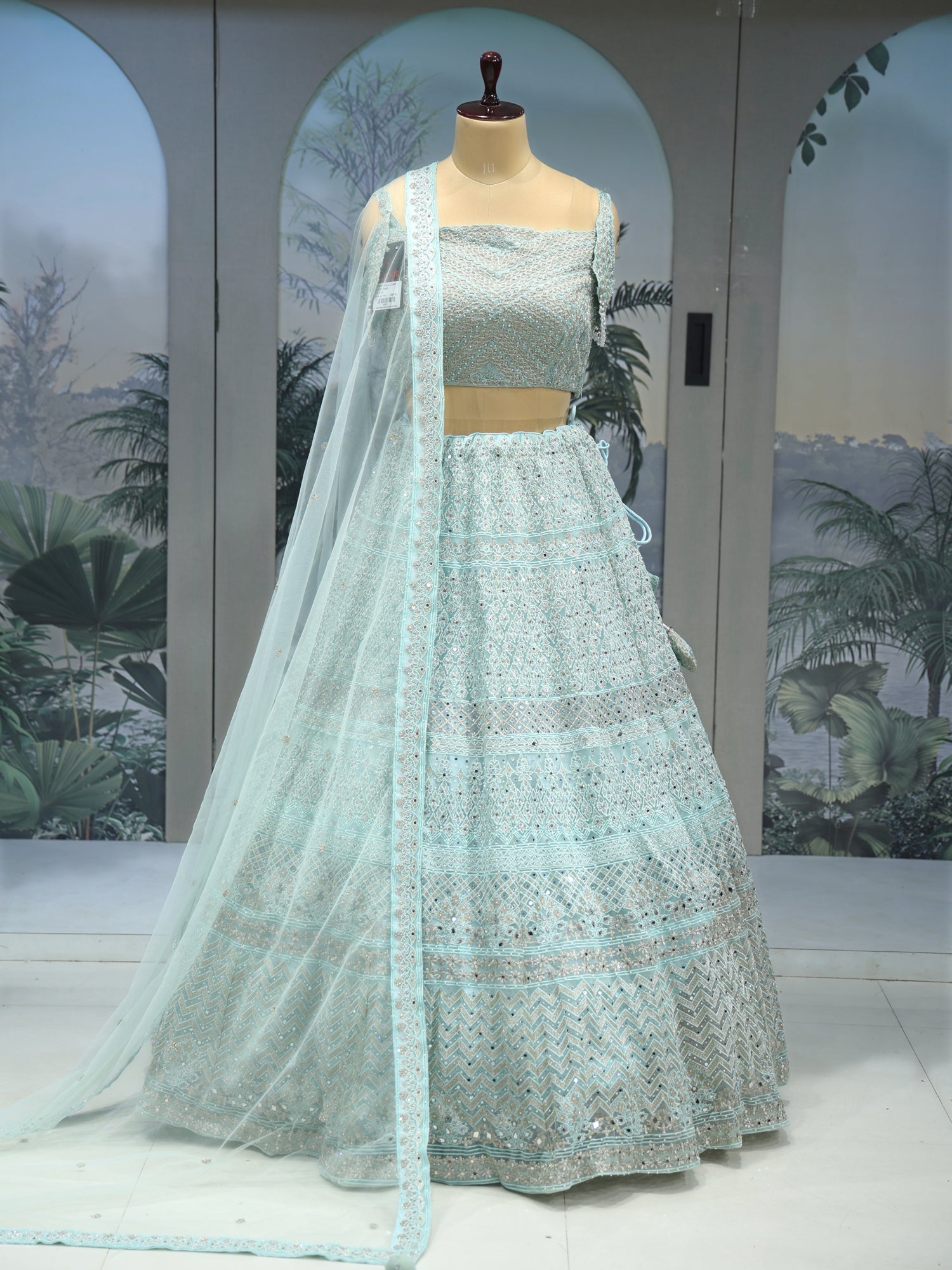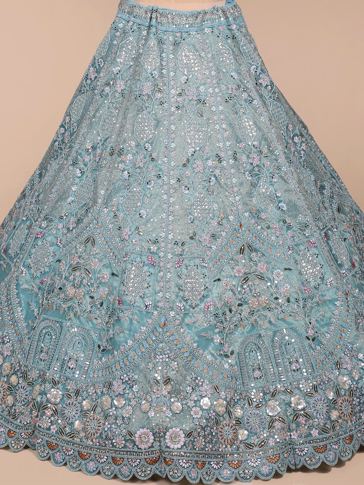 Ultimate Glam Look Sky Blue Sequin Mirror Lehenga