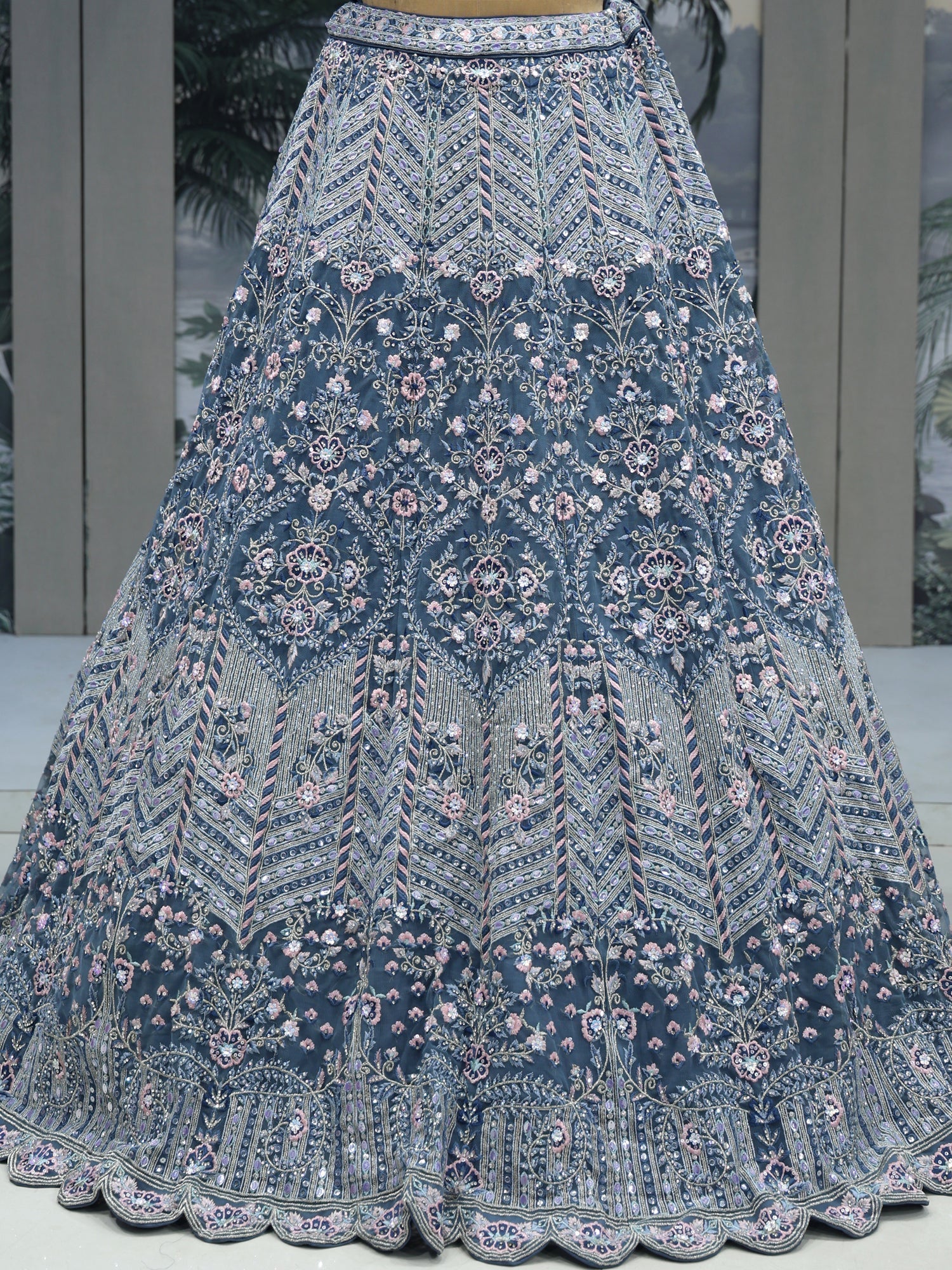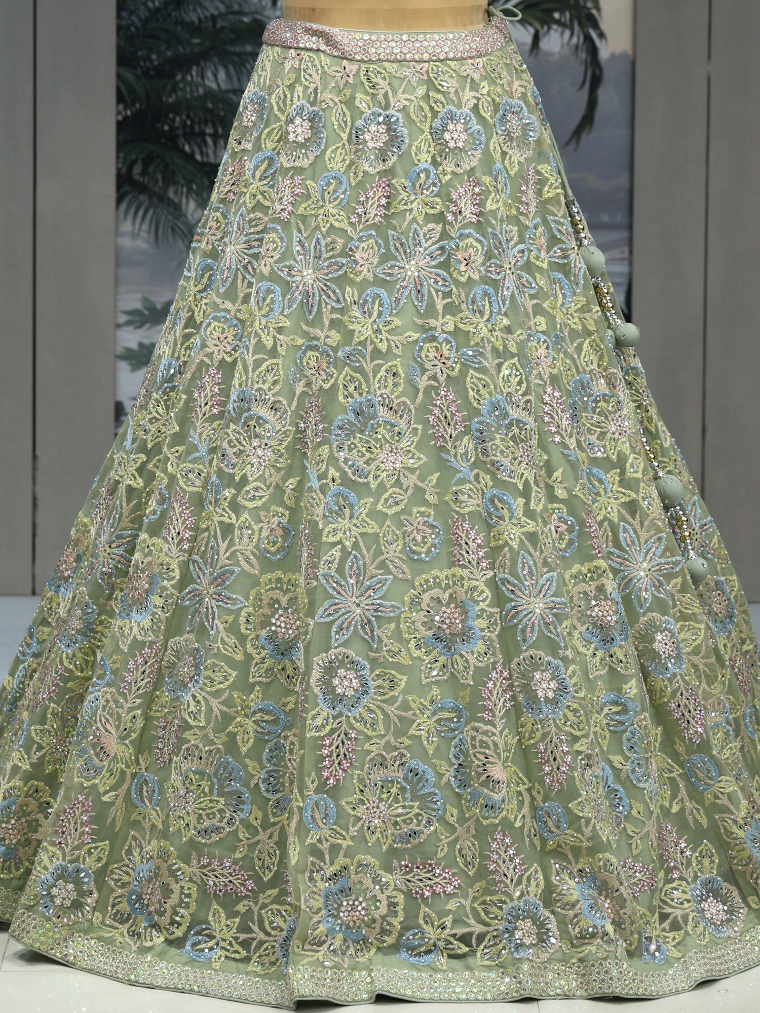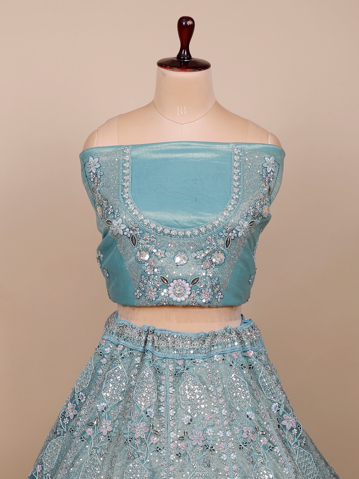 Crystal Aqua Lehenga Gentle and Grand Detailing