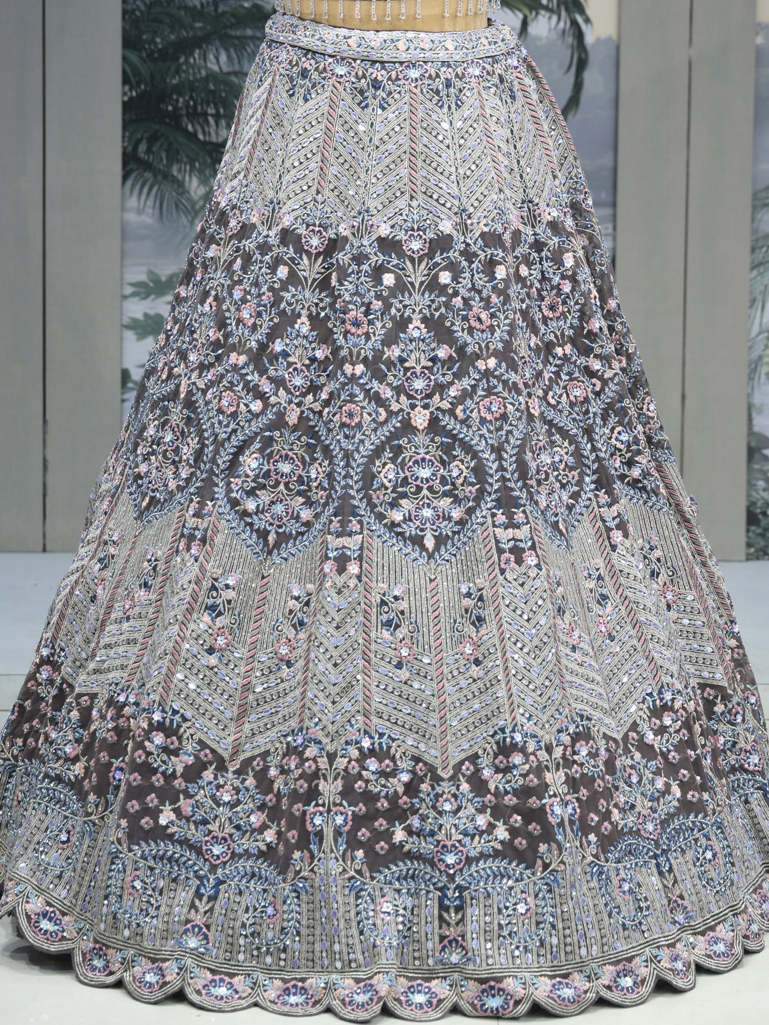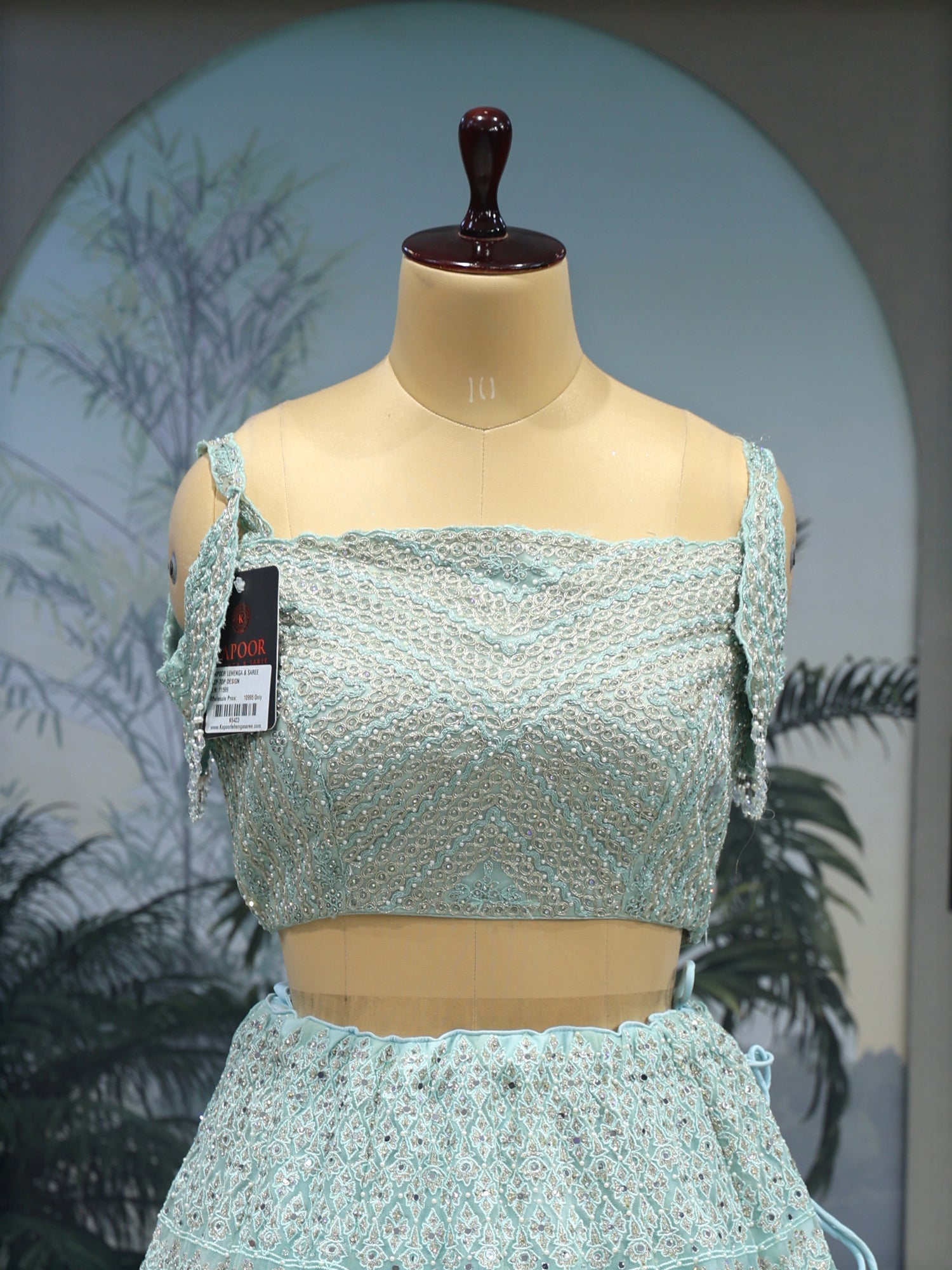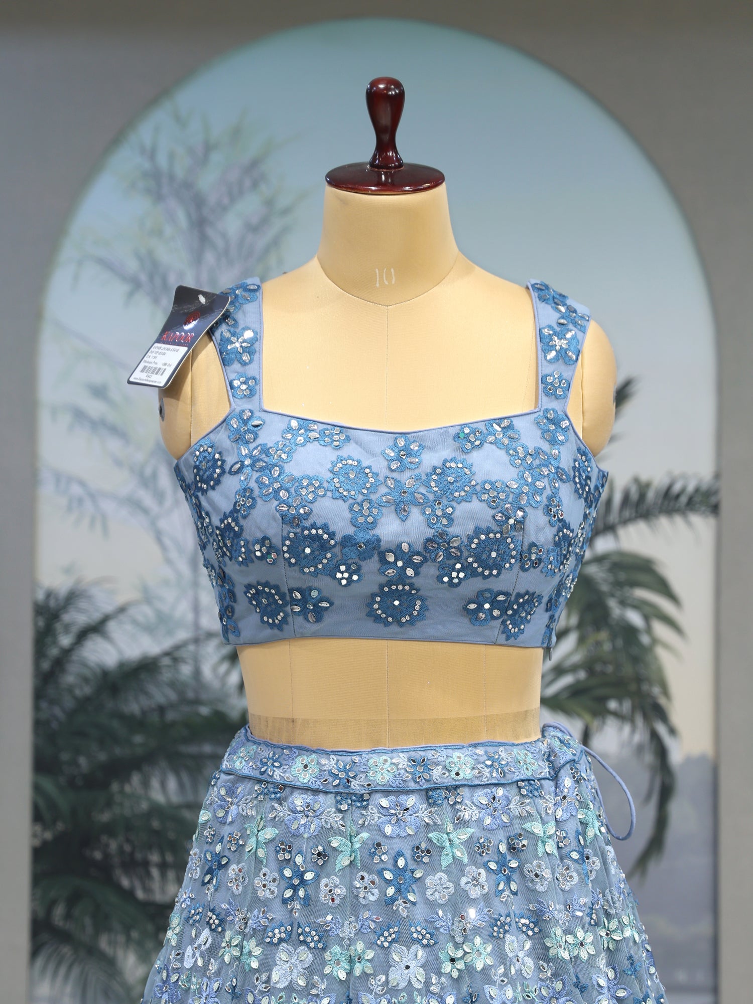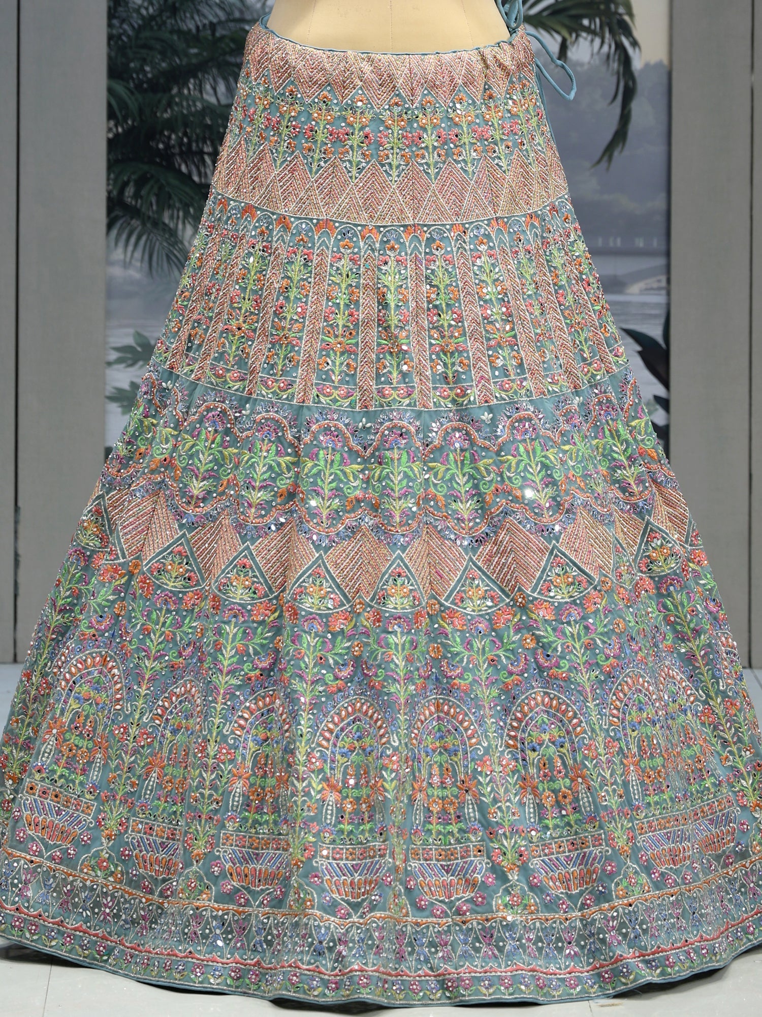 Crystal Aqua Lehenga Gentle and Grand Detailing