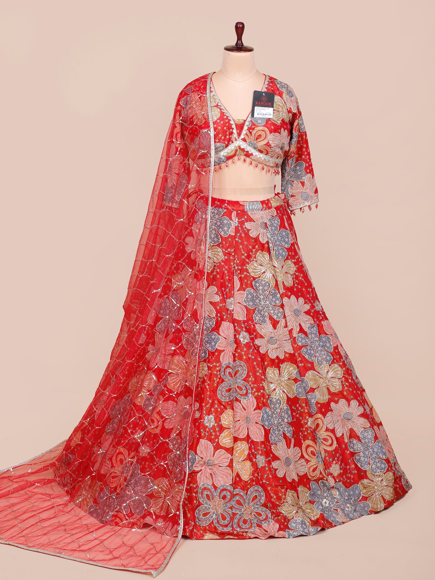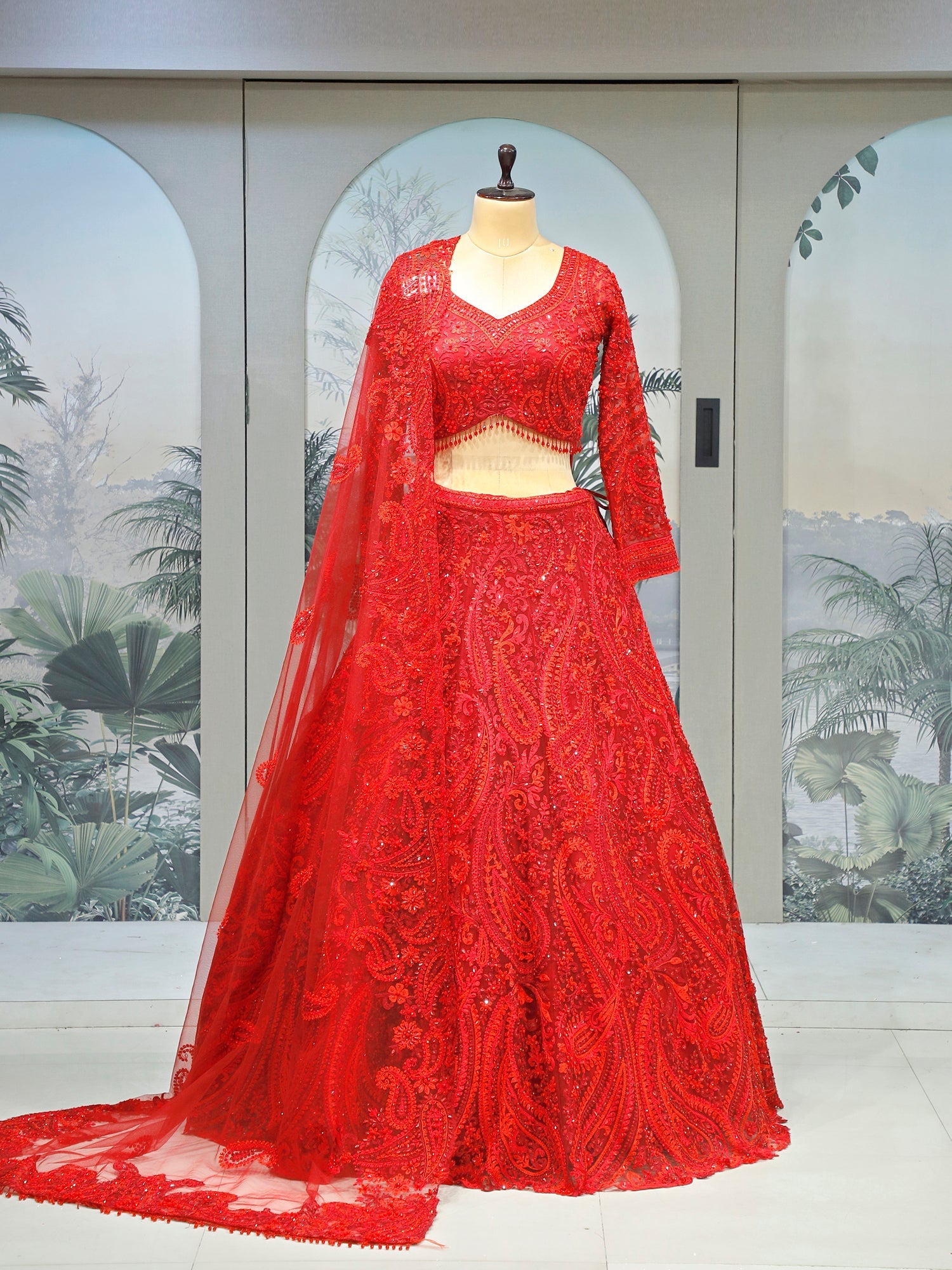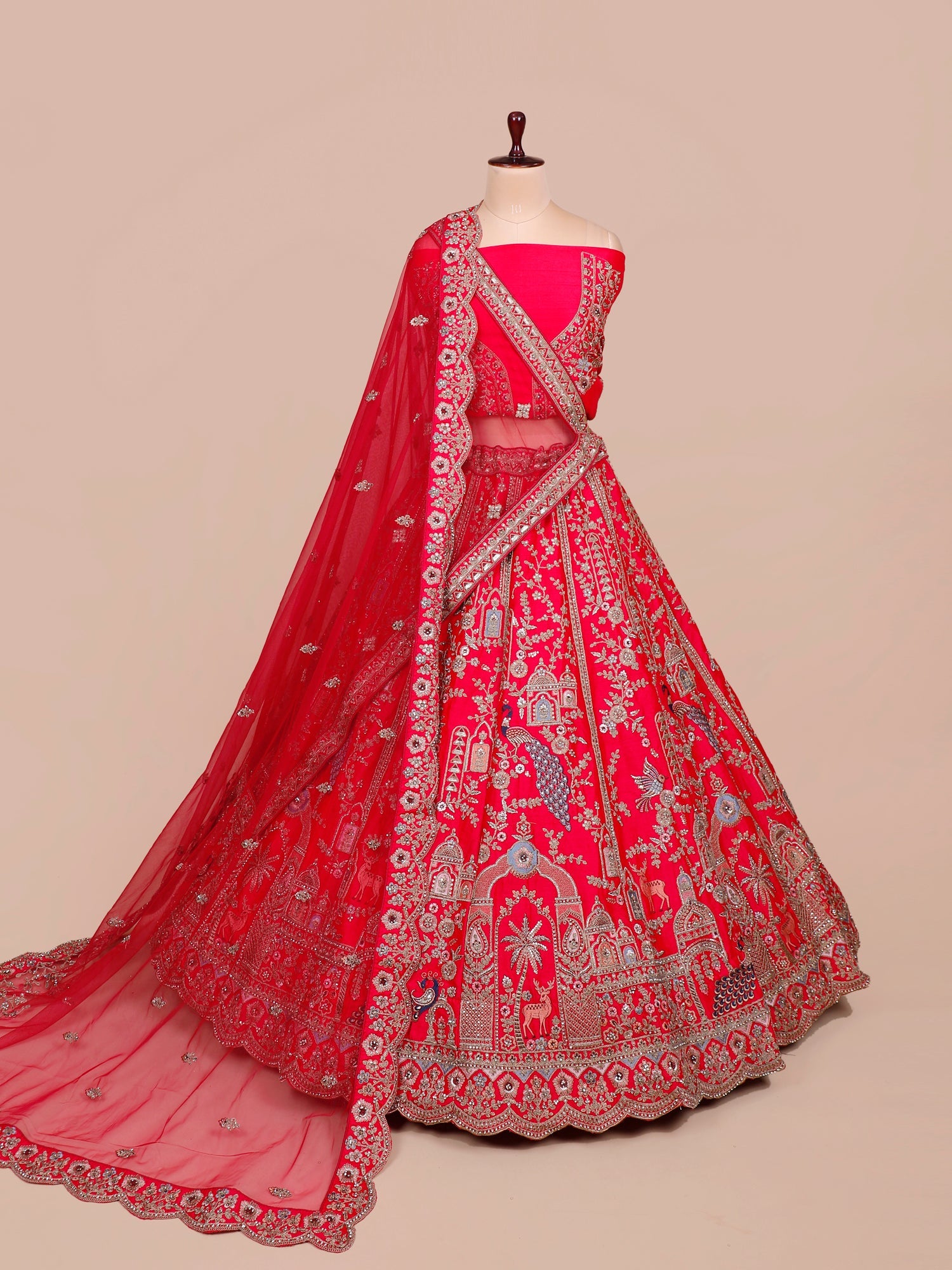 Red Royal Ember Silk sequence Lehenga