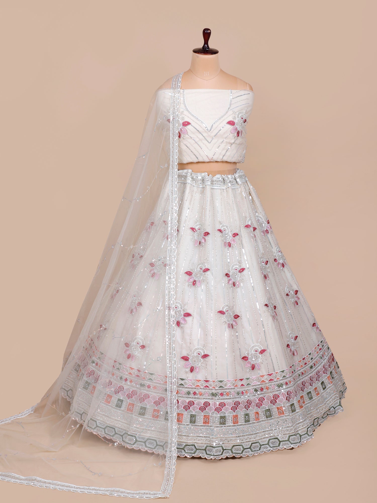 White Frosted Grace sequence Lehenga