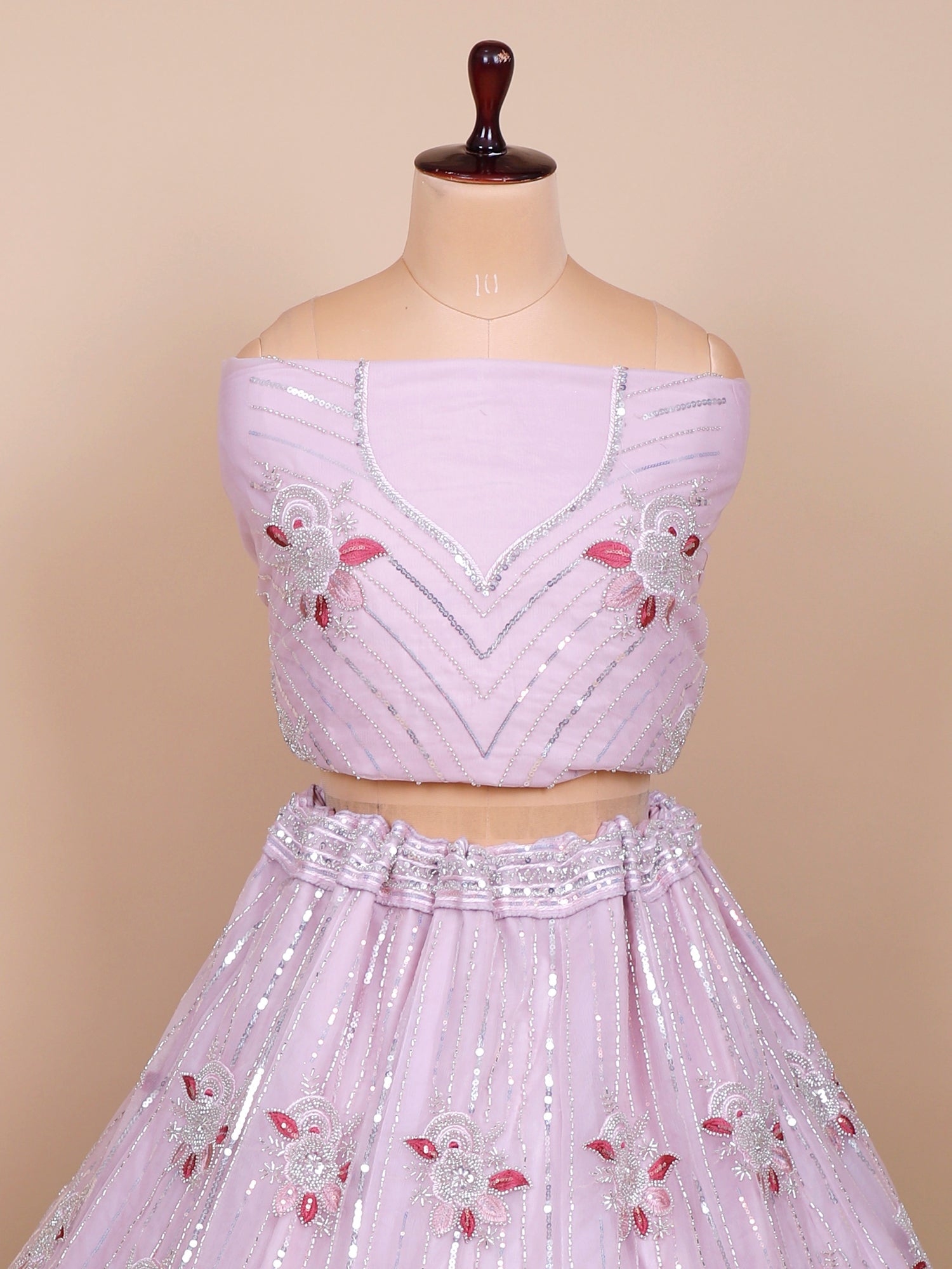 Lilac Organza Lehenga with Thread Embroidery