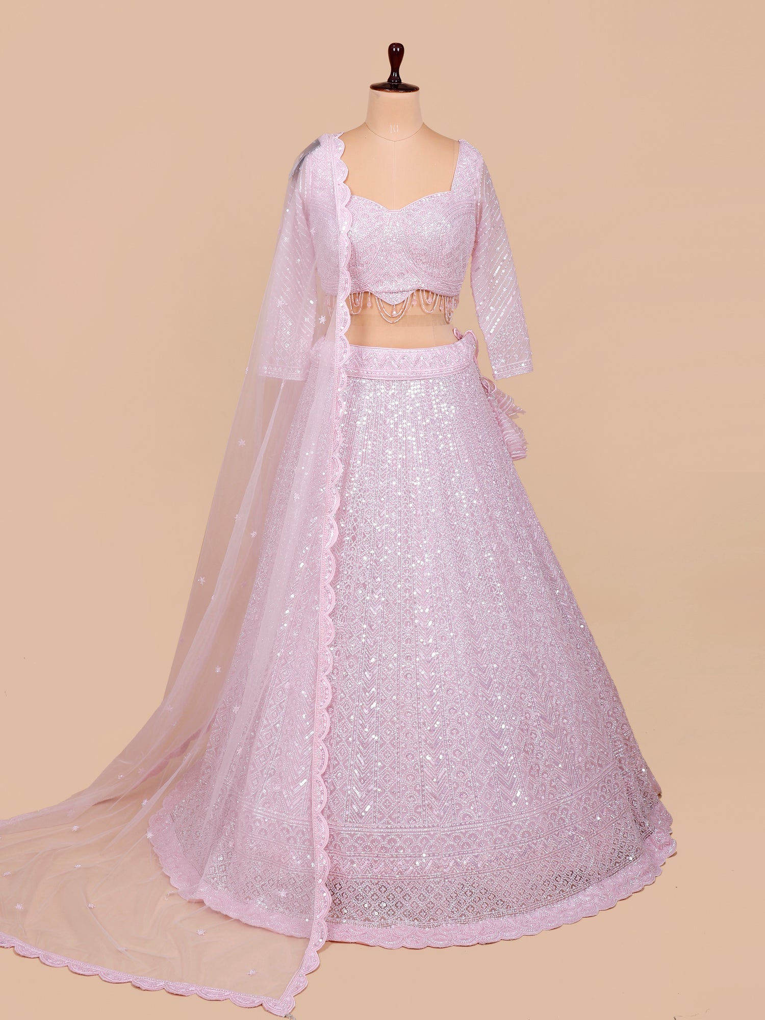 Baby Pink Stardust Shimmer jarkan Lehenga