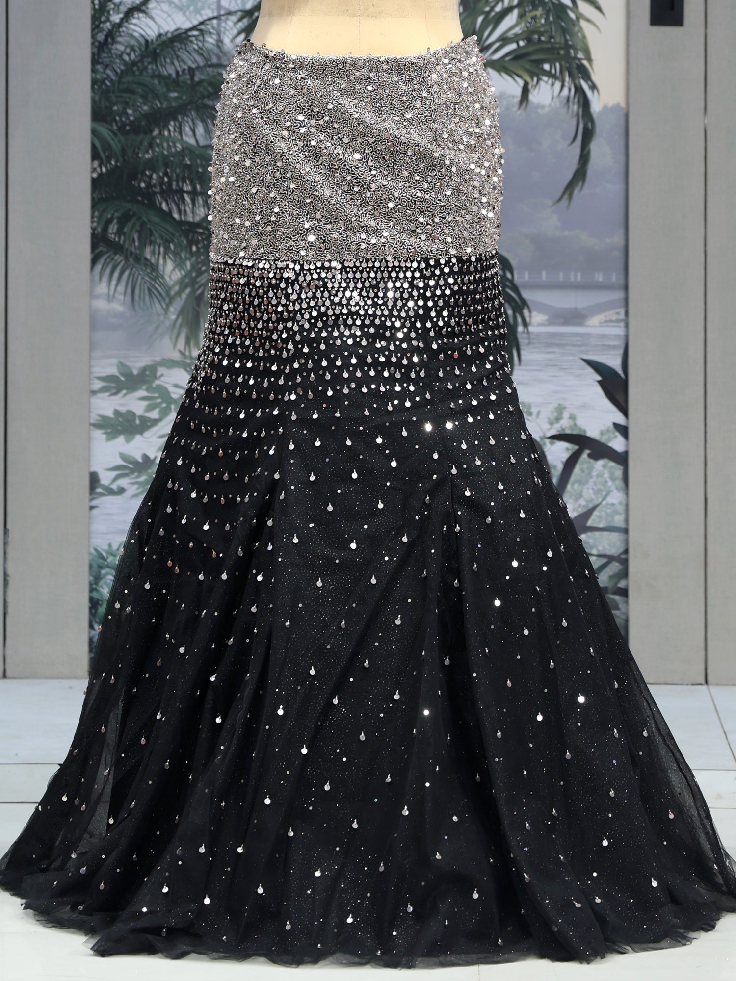 Celestial Charm Black Silver Lehenga with Sequence & Thread