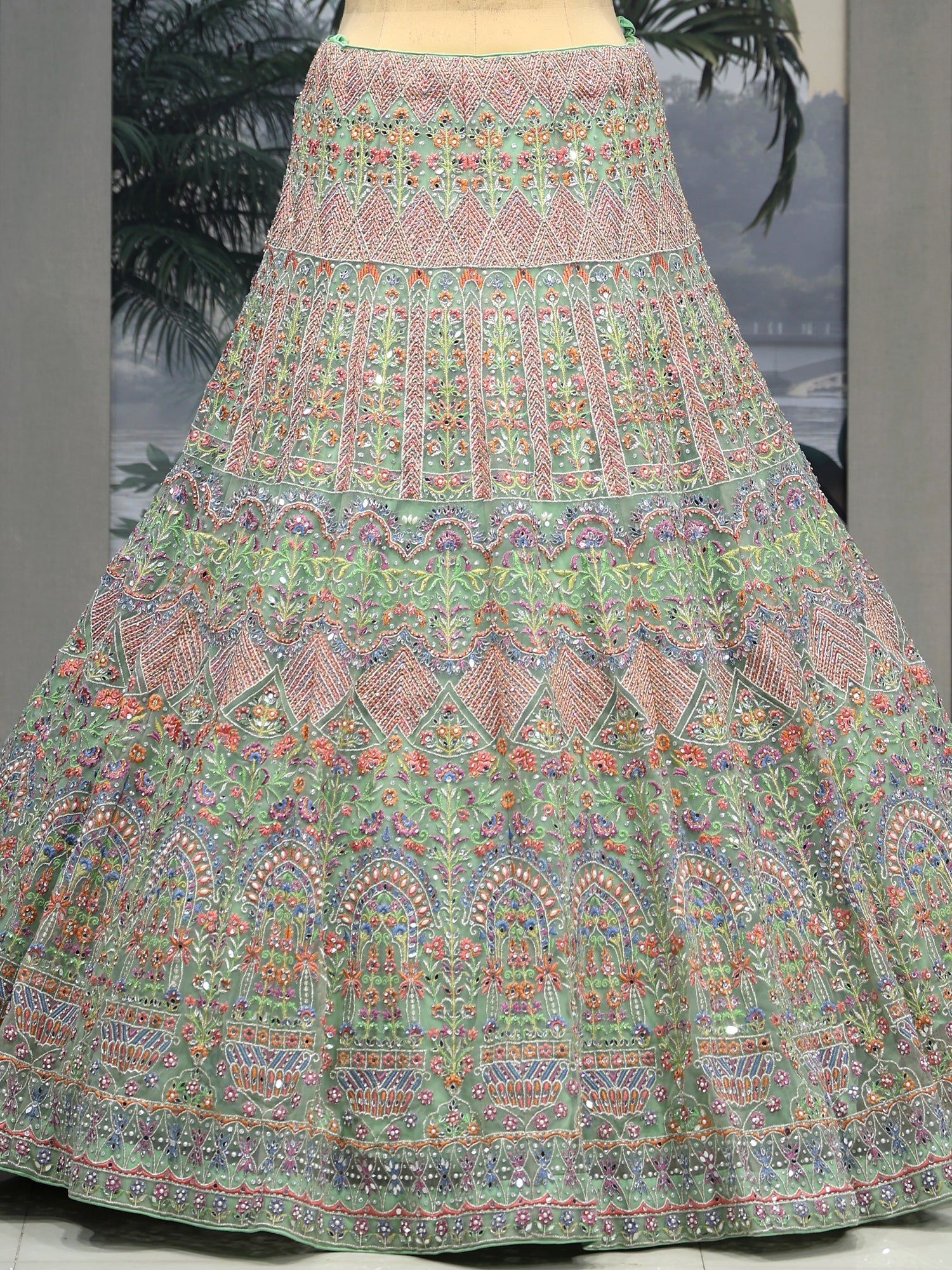 Aurora Dream Multi lehenga with Multi-Thread, Sequence & Mirror