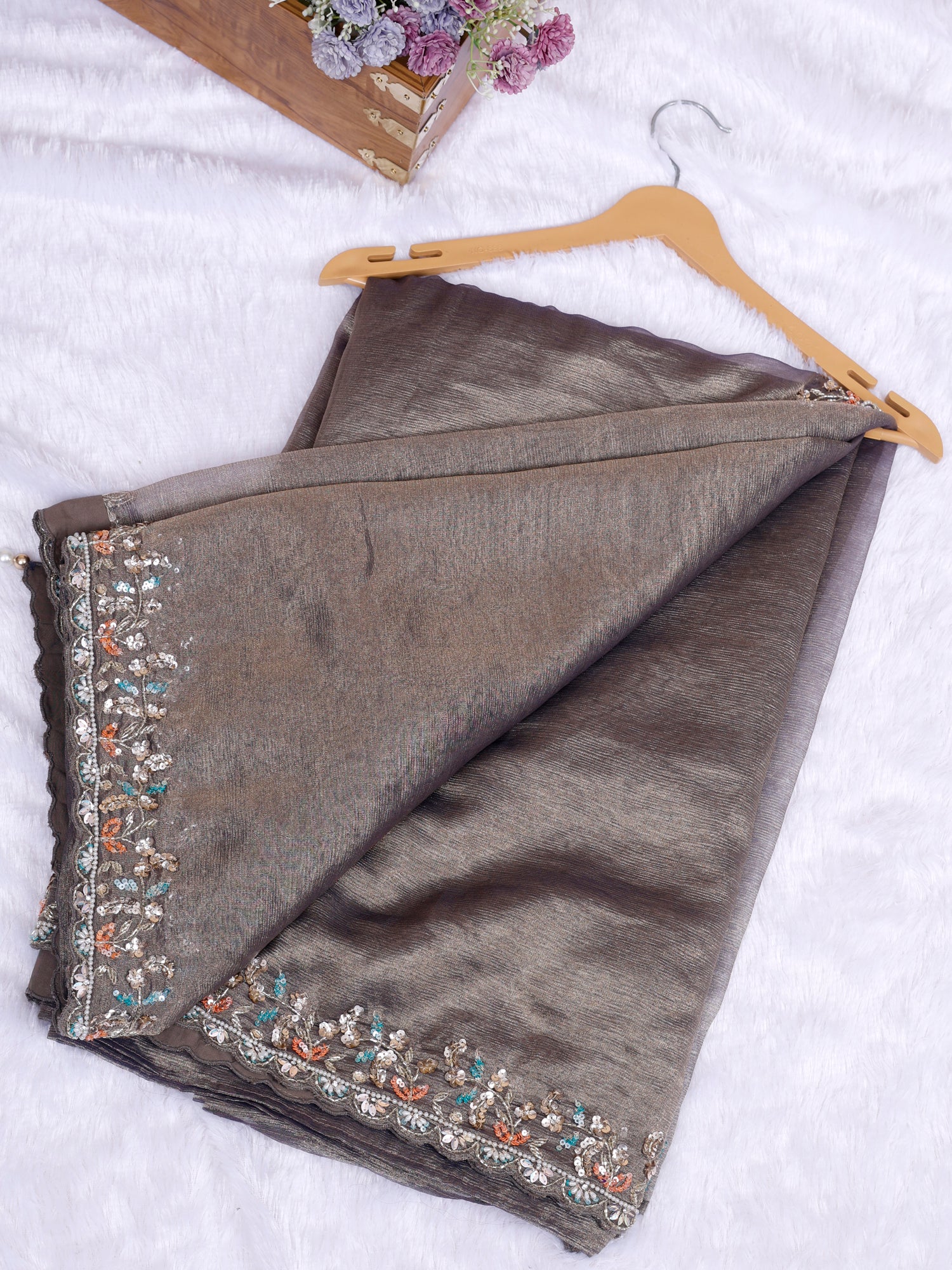 Grey Shimmer Saree with Zardosi Artistry & Sequins